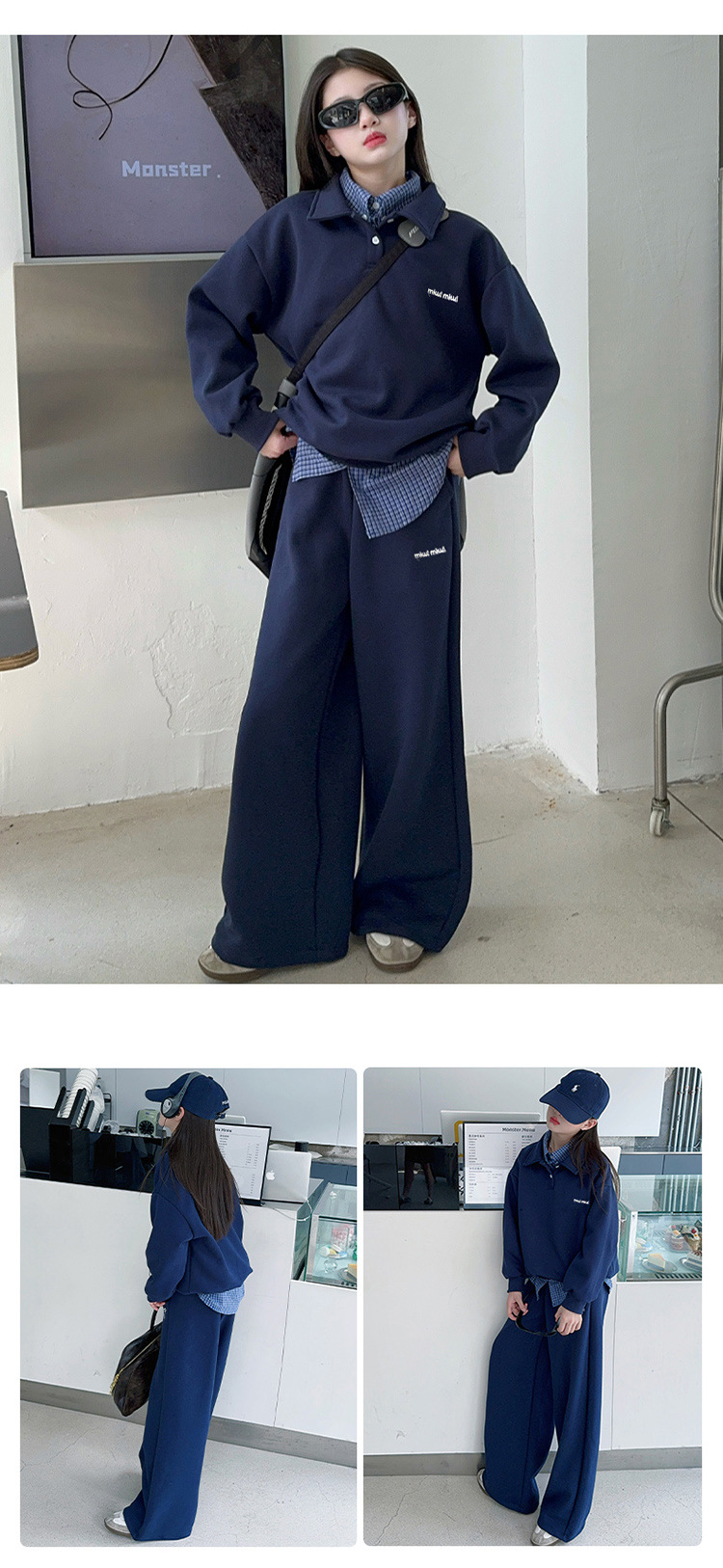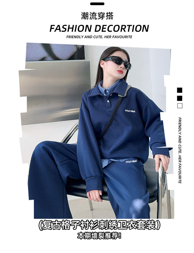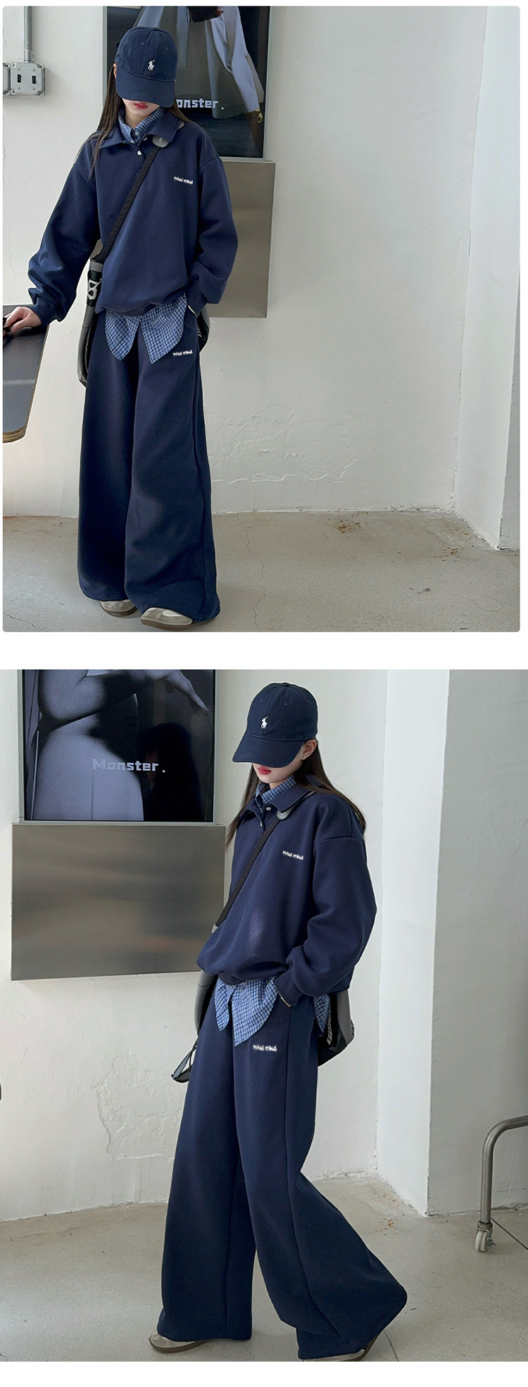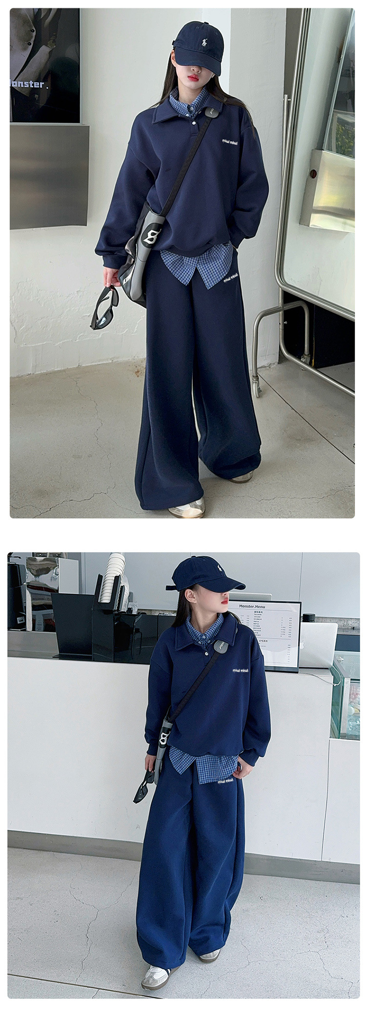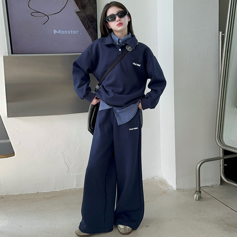 소녀의 봄과 가을 운동복 격자 무늬 셔츠 세트 중대형 어린이 가을 느슨한 넓은 다리 바지 캐주얼 3 피스 세트