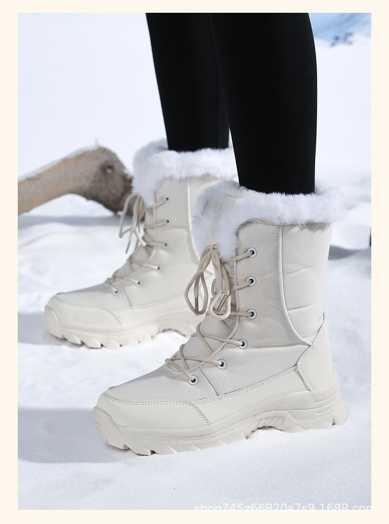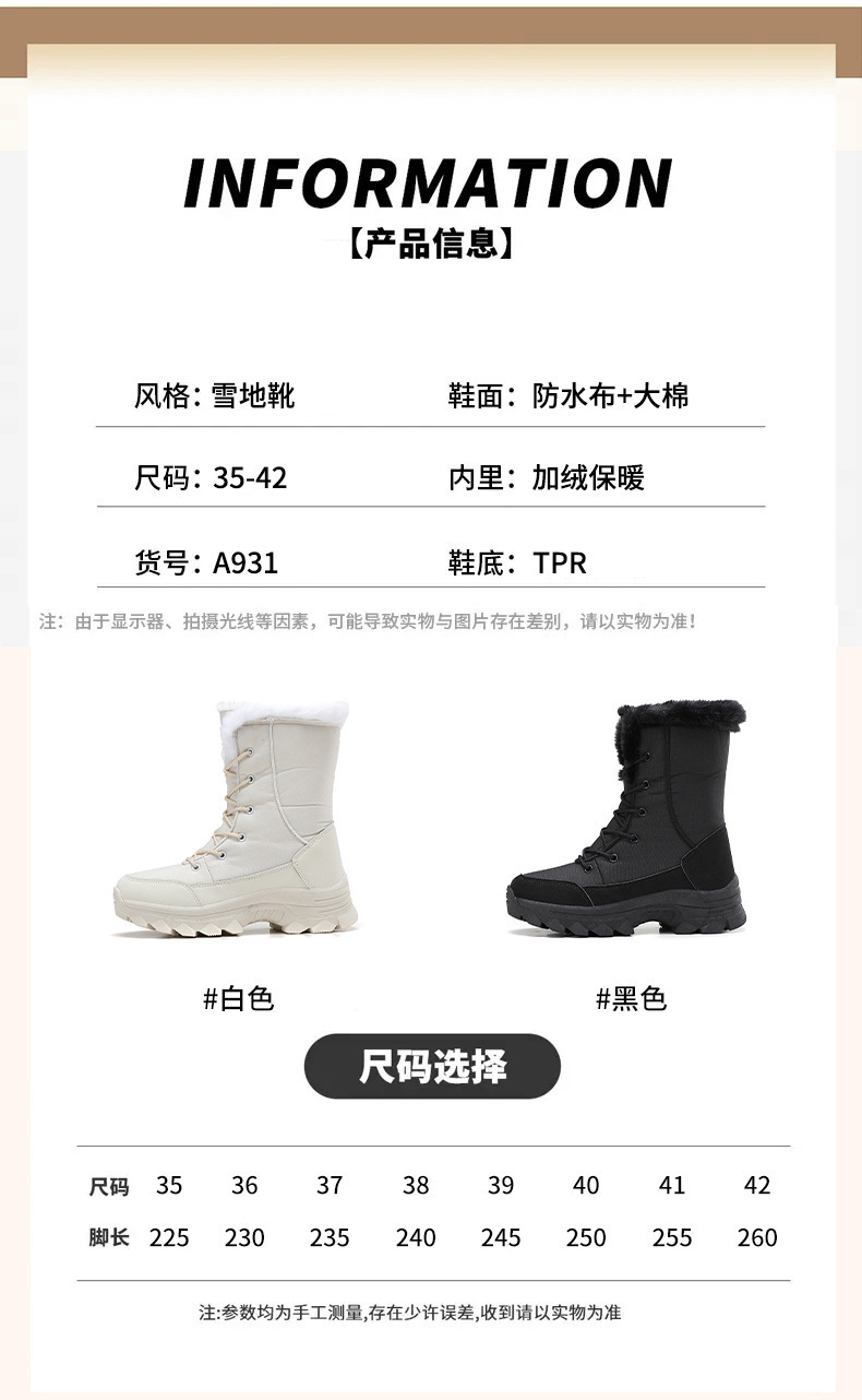 2024 겨울 기모 두꺼운 냉방성 스노우 부츠 여성용 따뜻한 다리 보호 하이탑 코튼 신발 올매치 대형면 미끄럼 방지 부츠스토어 가기