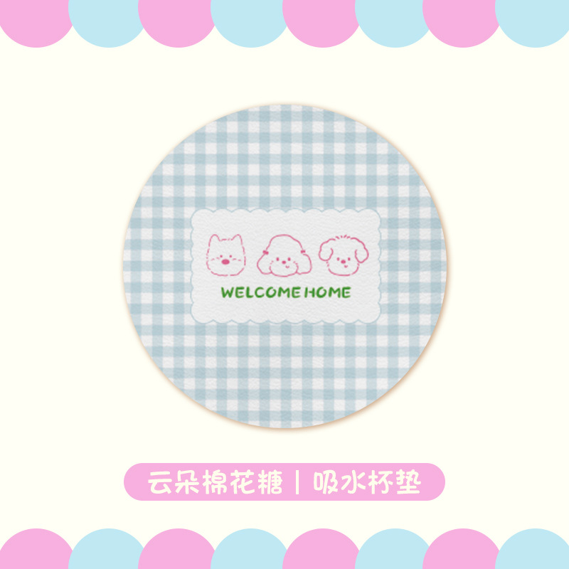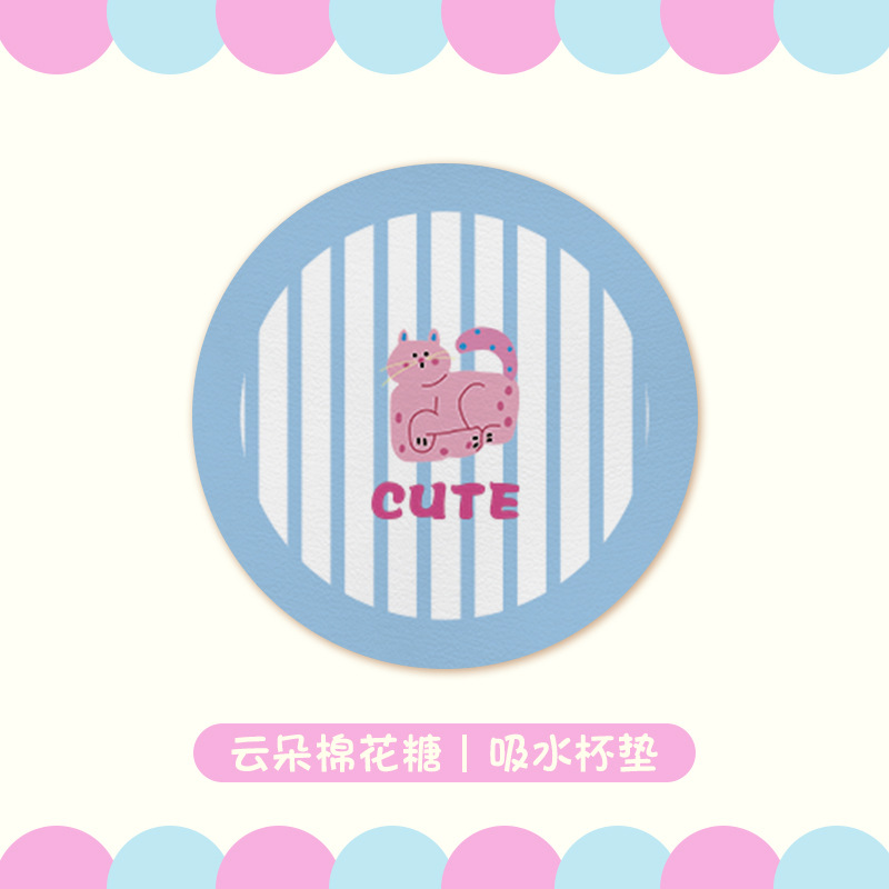 새로운 만화 재미 구름 코튼 캔디 코스터 라운드 가죽 플레이스 워시-무료 어린이 데스크 매트 컴퓨터 데스크 매트스토어 가기