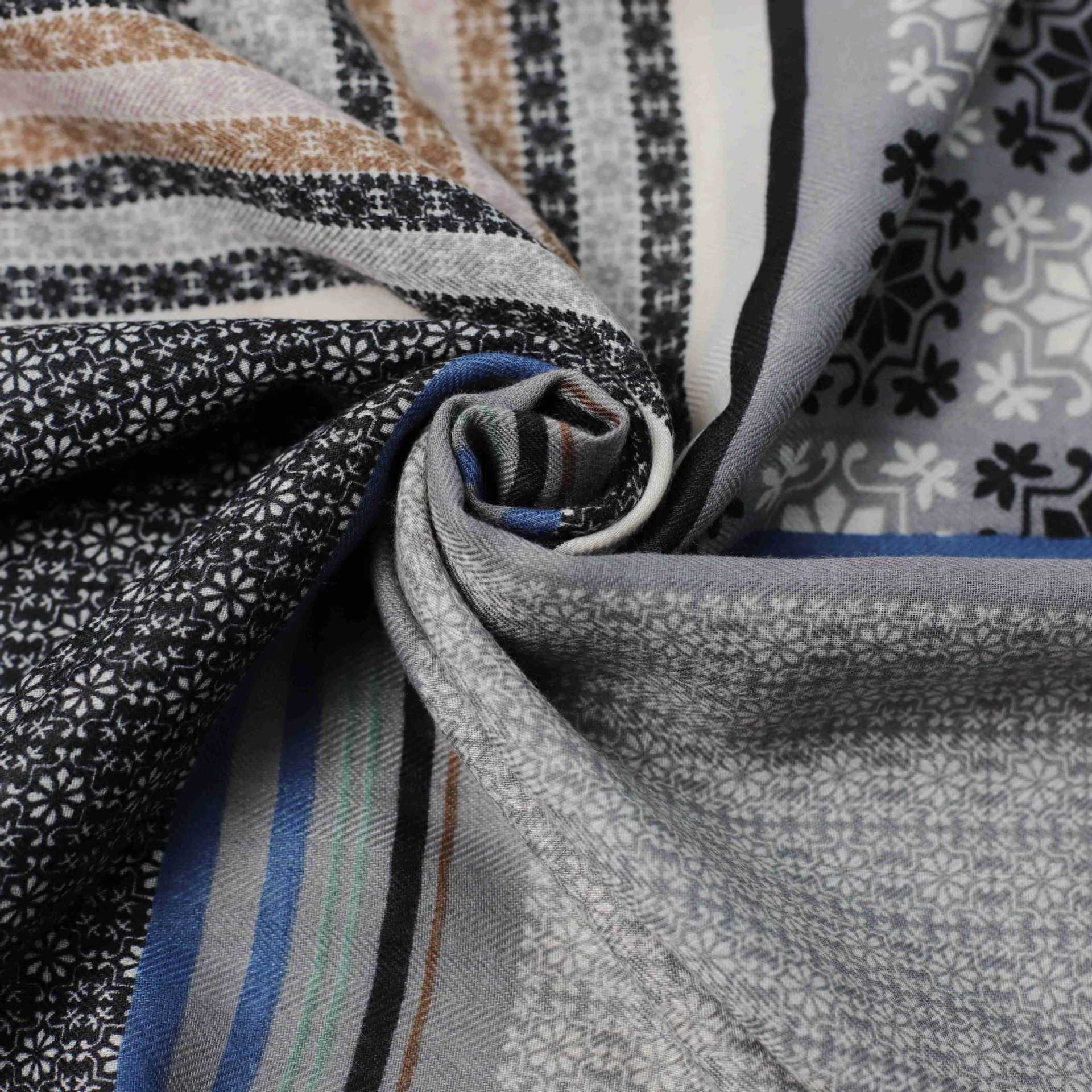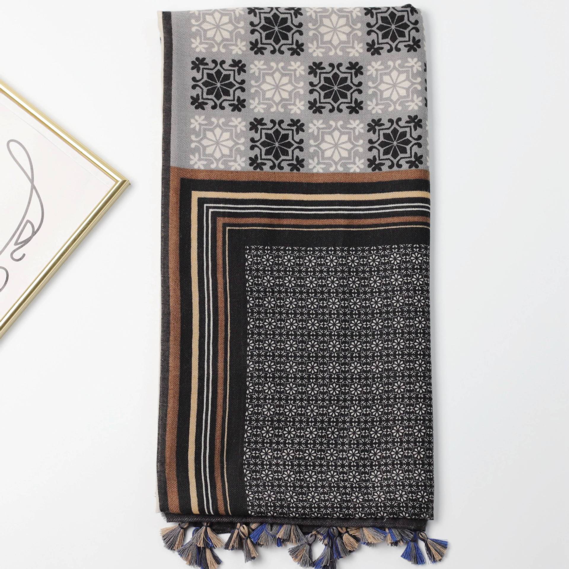 팔각형 퍼즐 공장 직판 해외 무역 크로스보더 라이브 방송 기하학적 프린트 실크 스카프 자외선 차단 여행용 숄 패셔너블하고 다재다능한 실크 스카프