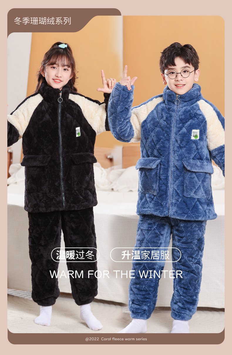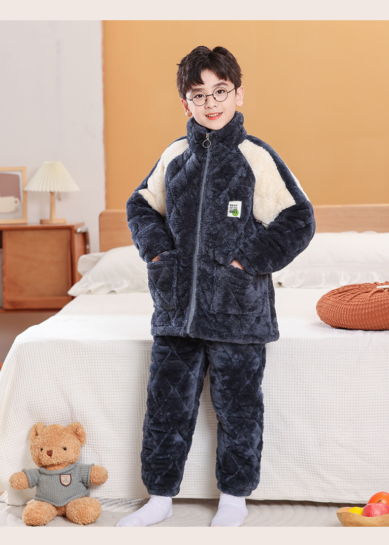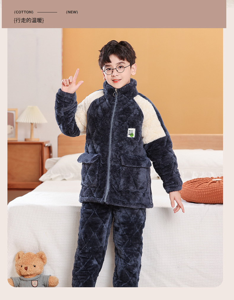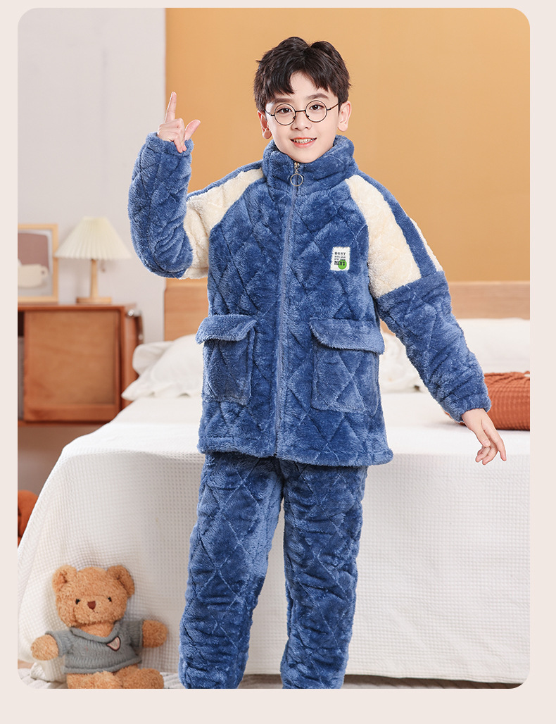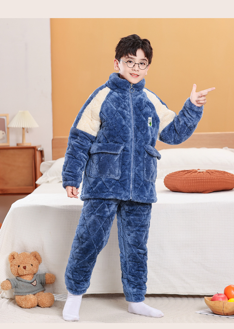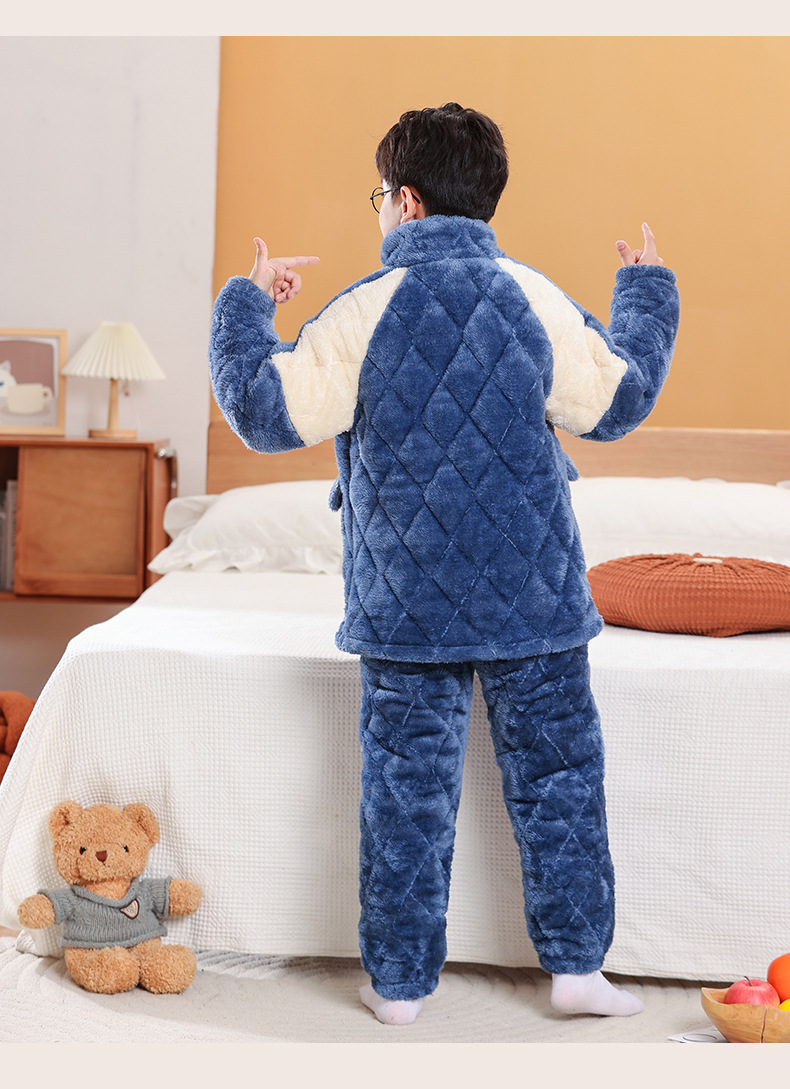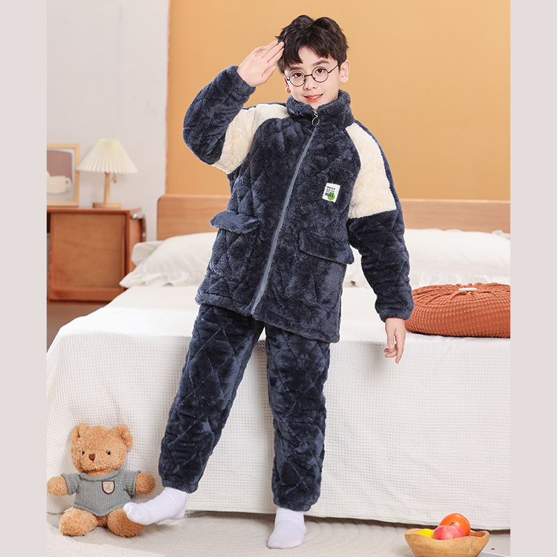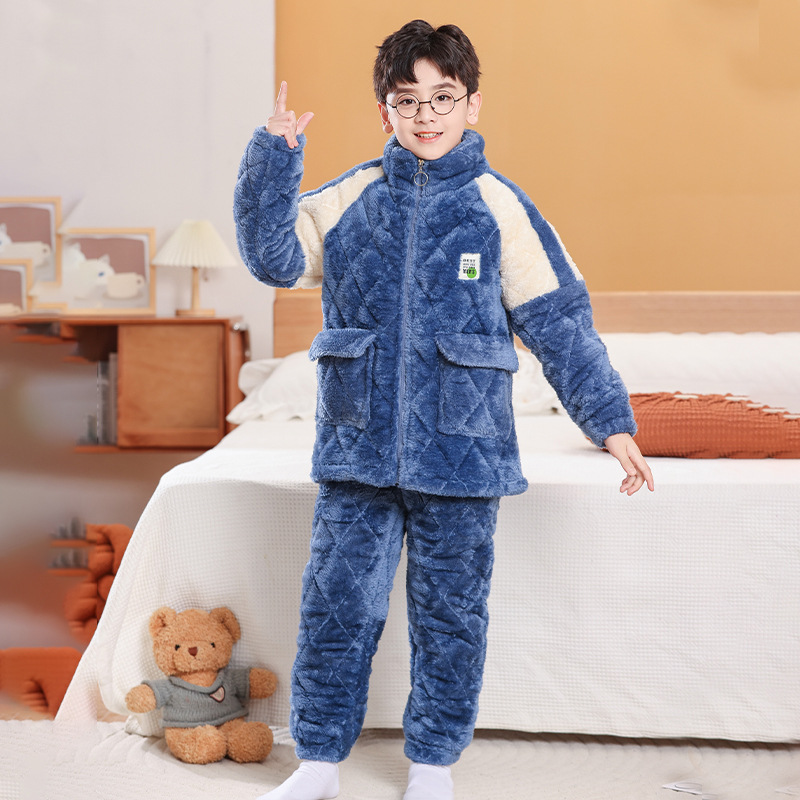 소년을위한 어린이 잠옷 겨울 두꺼운 플란넬 3 층 퀼트 산호 양털 대형 어린이 및 소녀 홈 의류 도매스토어 가기