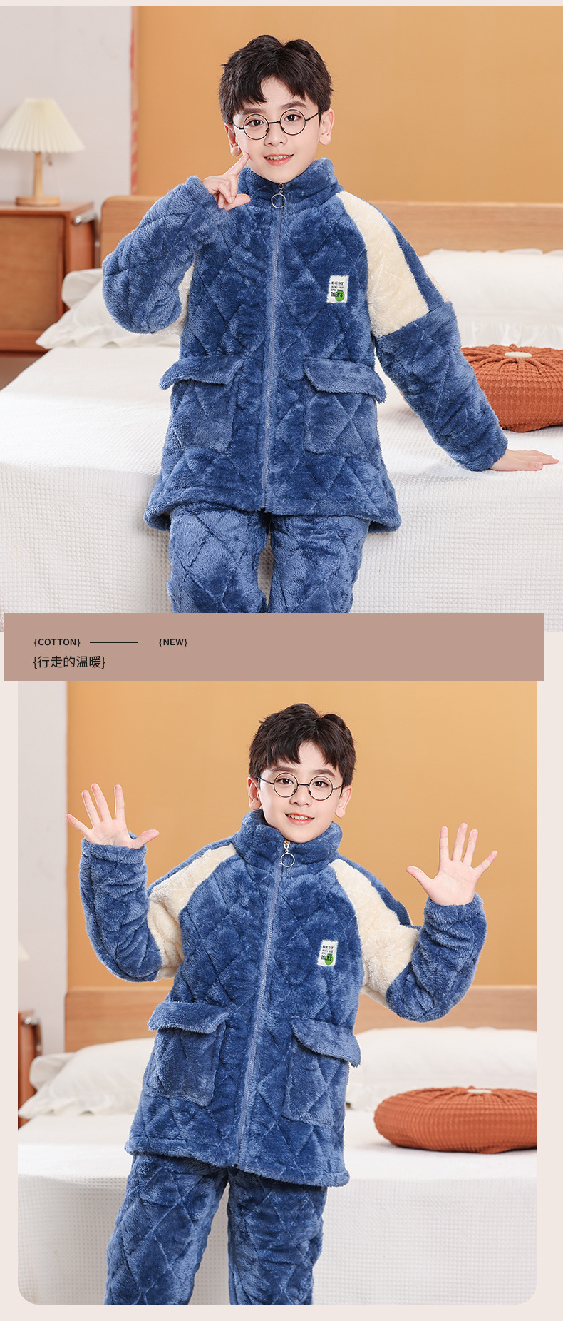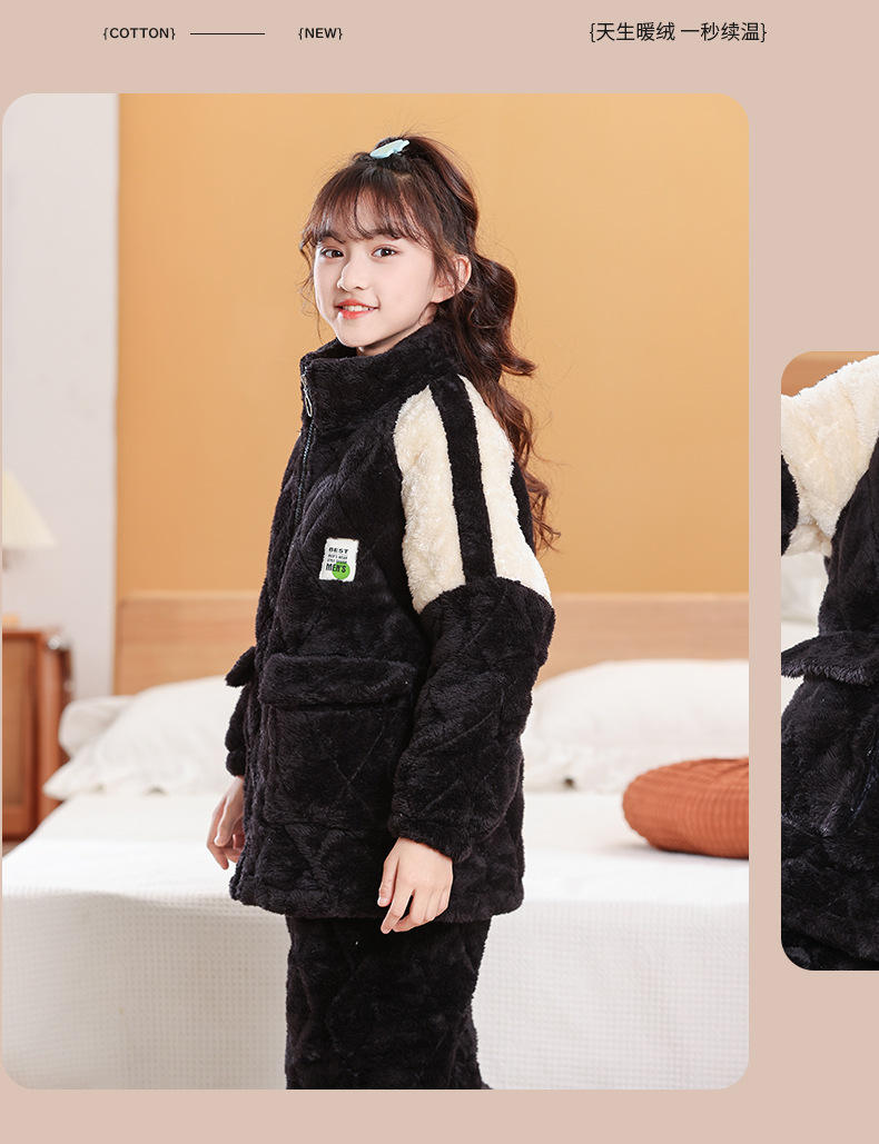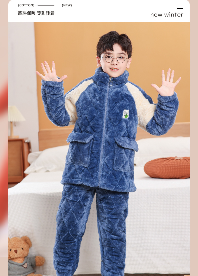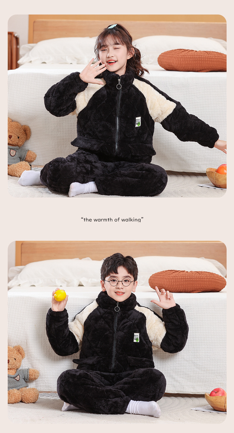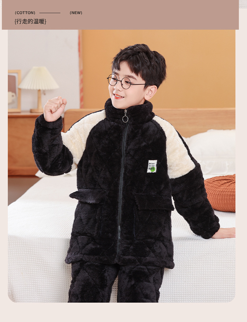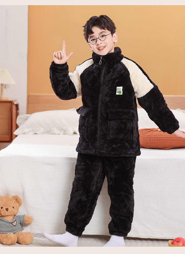 소년을위한 어린이 잠옷 겨울 두꺼운 플란넬 3 층 퀼트 산호 양털 대형 어린이 및 소녀 홈 의류 도매스토어 가기