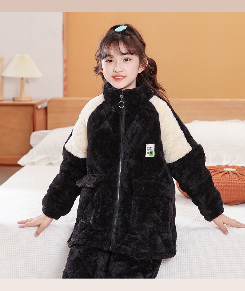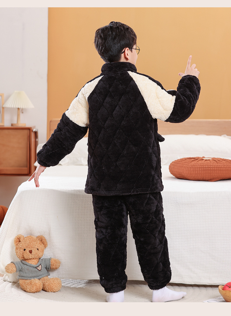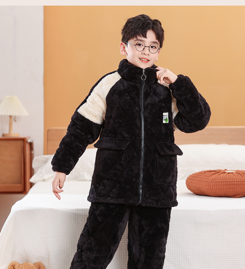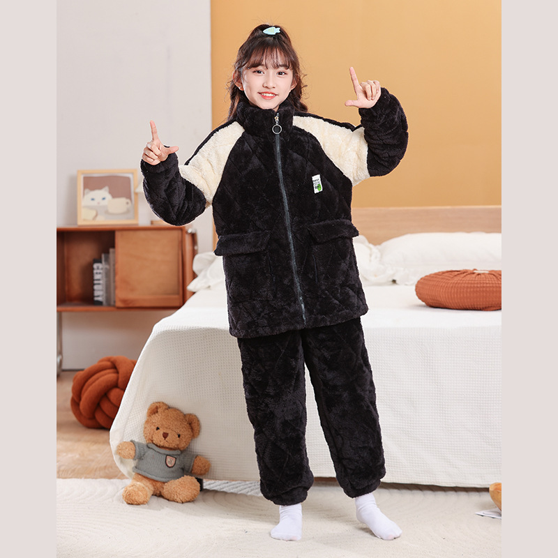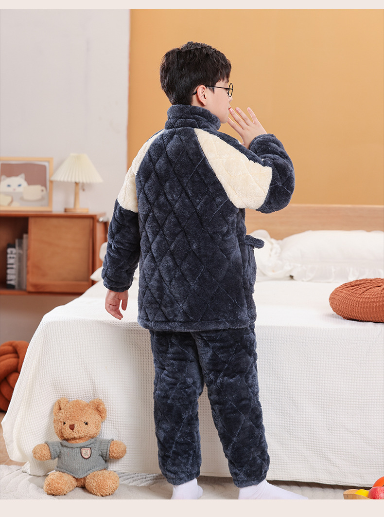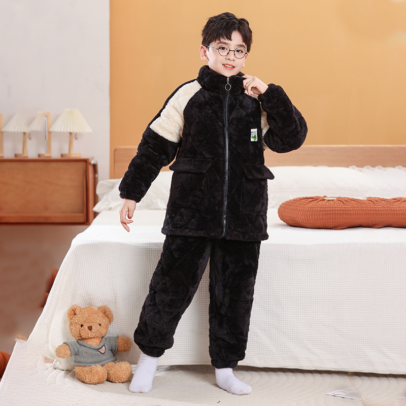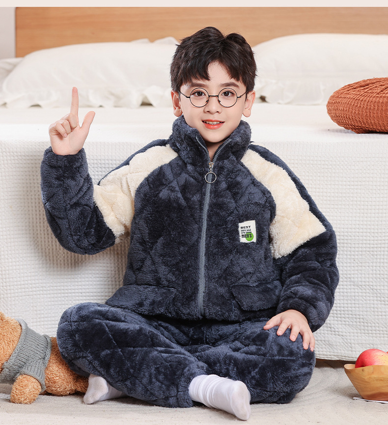 소년을위한 어린이 잠옷 겨울 두꺼운 플란넬 3 층 퀼트 산호 양털 대형 어린이 및 소녀 홈 의류 도매