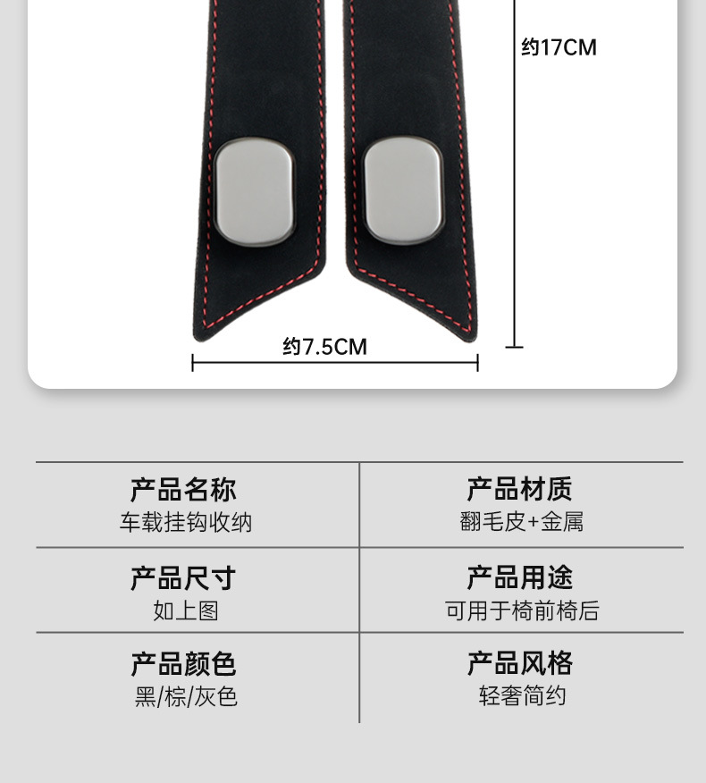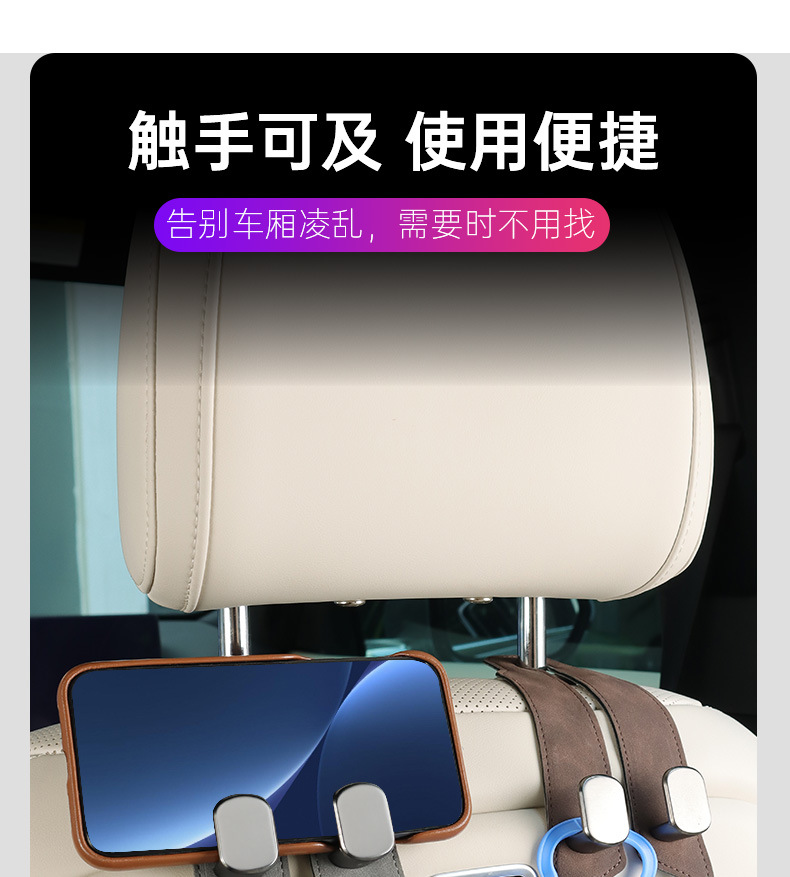 자동차 다기능 후크 스웨이드 금속 자동차 시트 다시 저장 작은 후크 자동차 휴대 전화 홀더