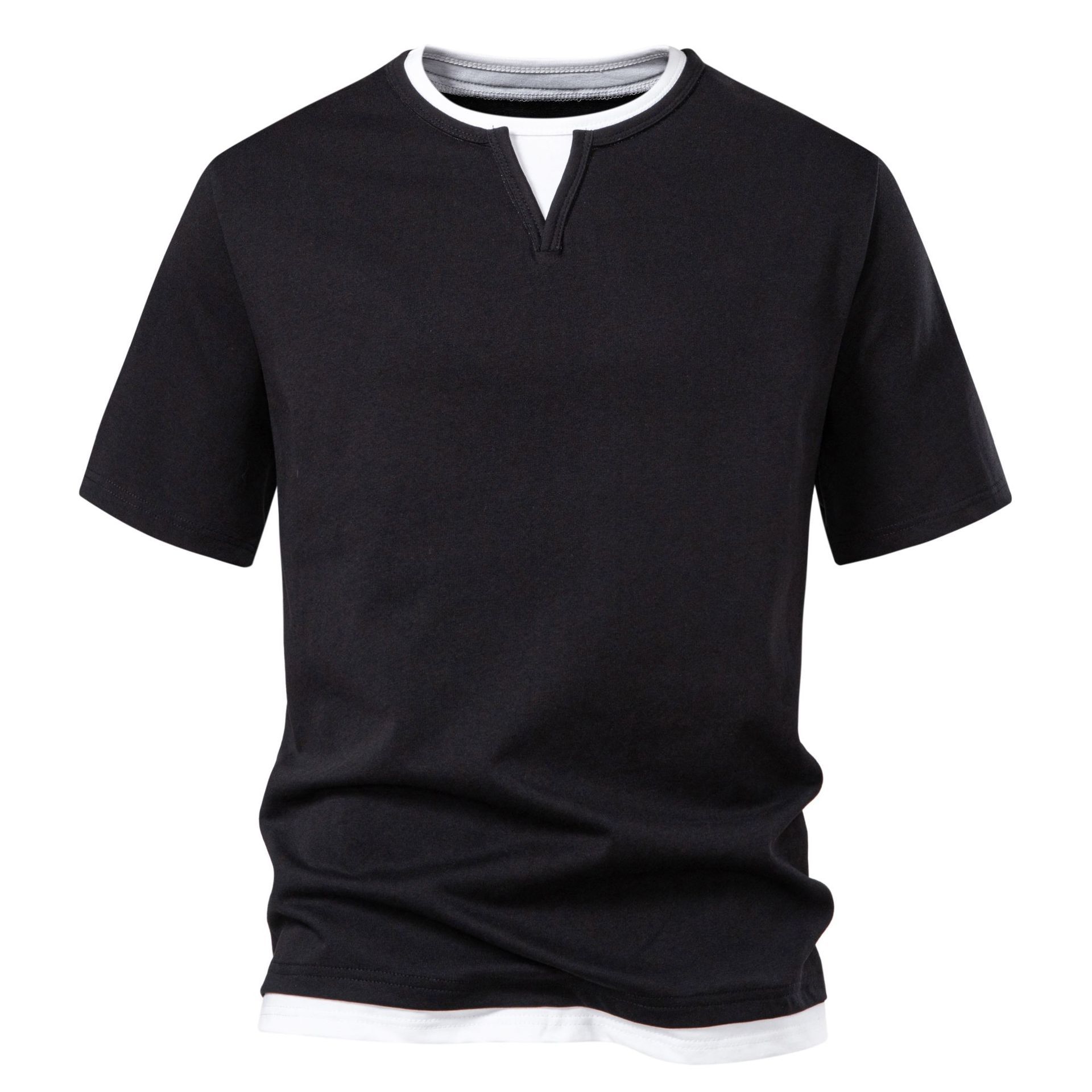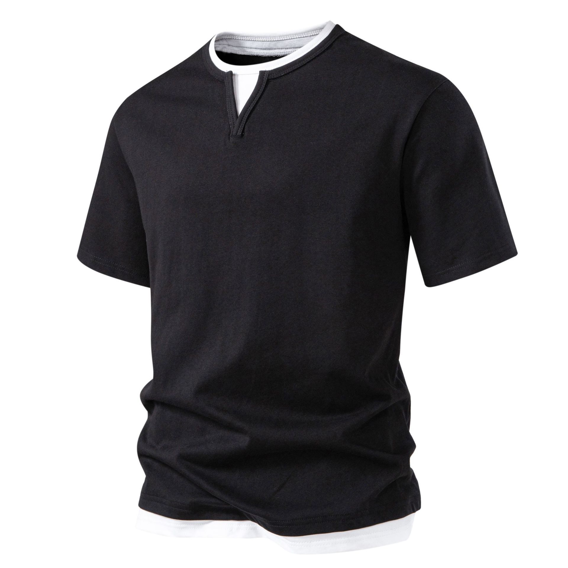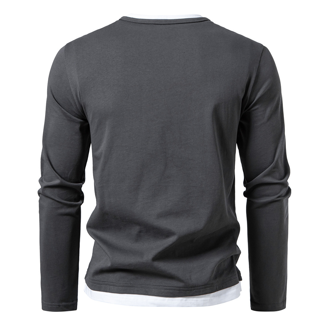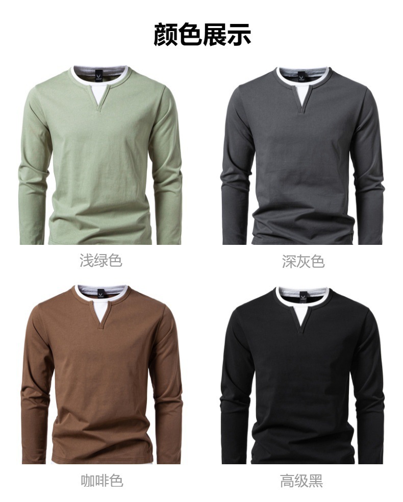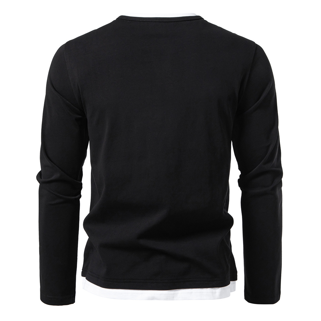 국경 간 남성 티셔츠 가짜 투피스 더블 레이어 V 넥 가을과 겨울 패션 스티칭 플러스 사이즈 베이스 셔츠 남성용 긴팔 티셔츠