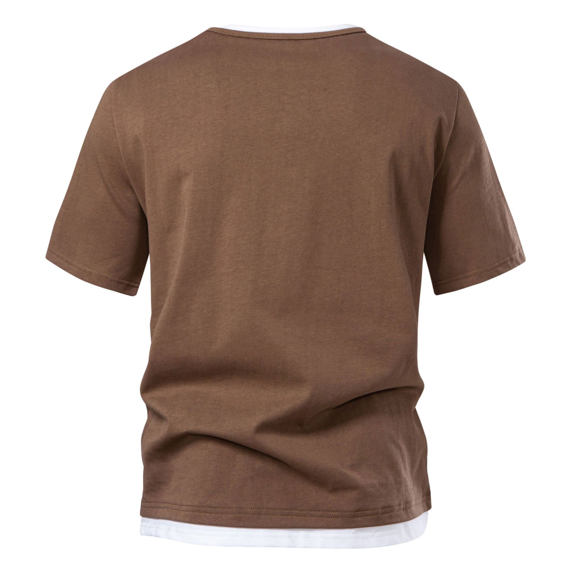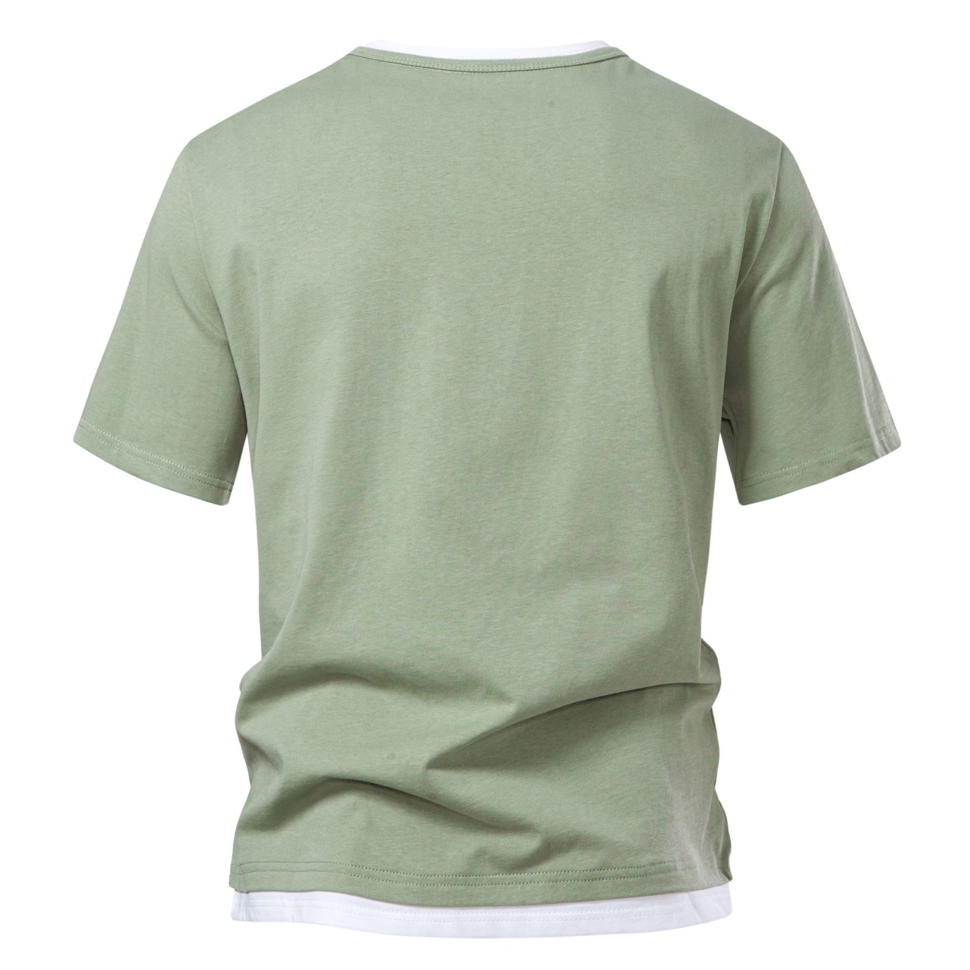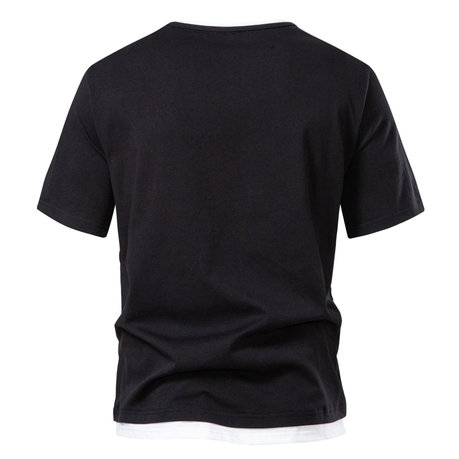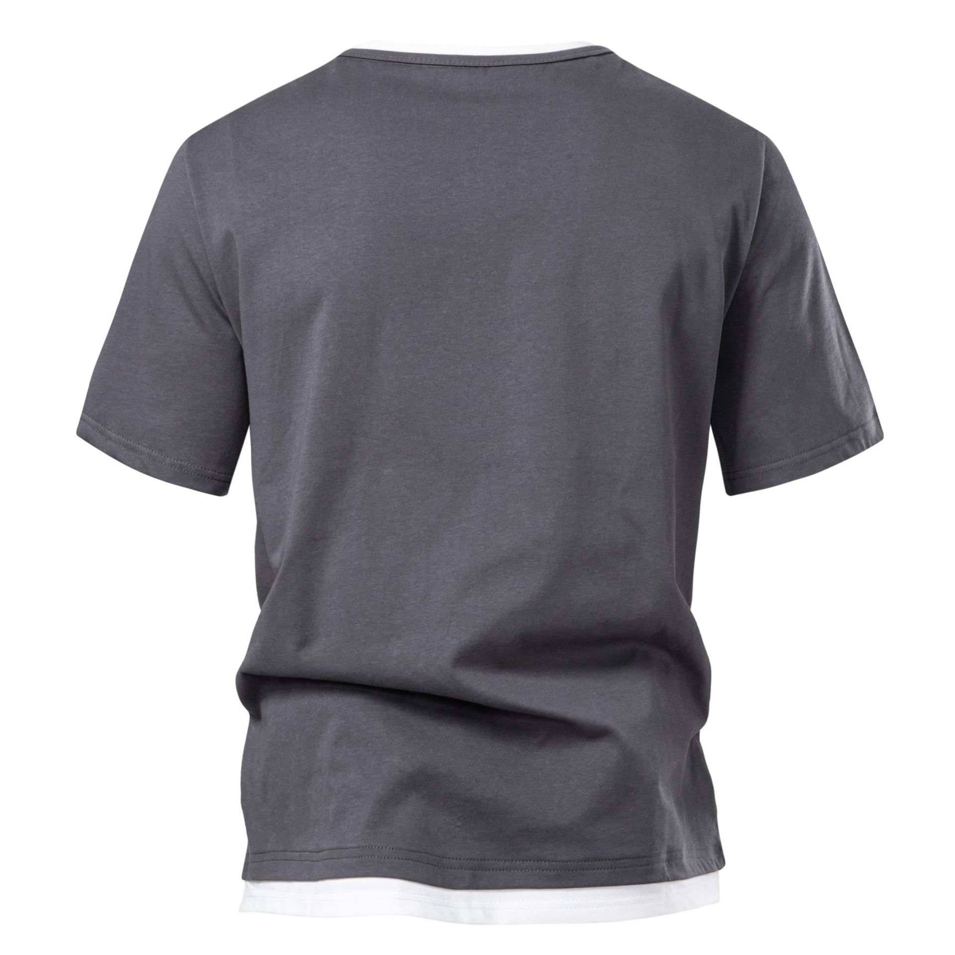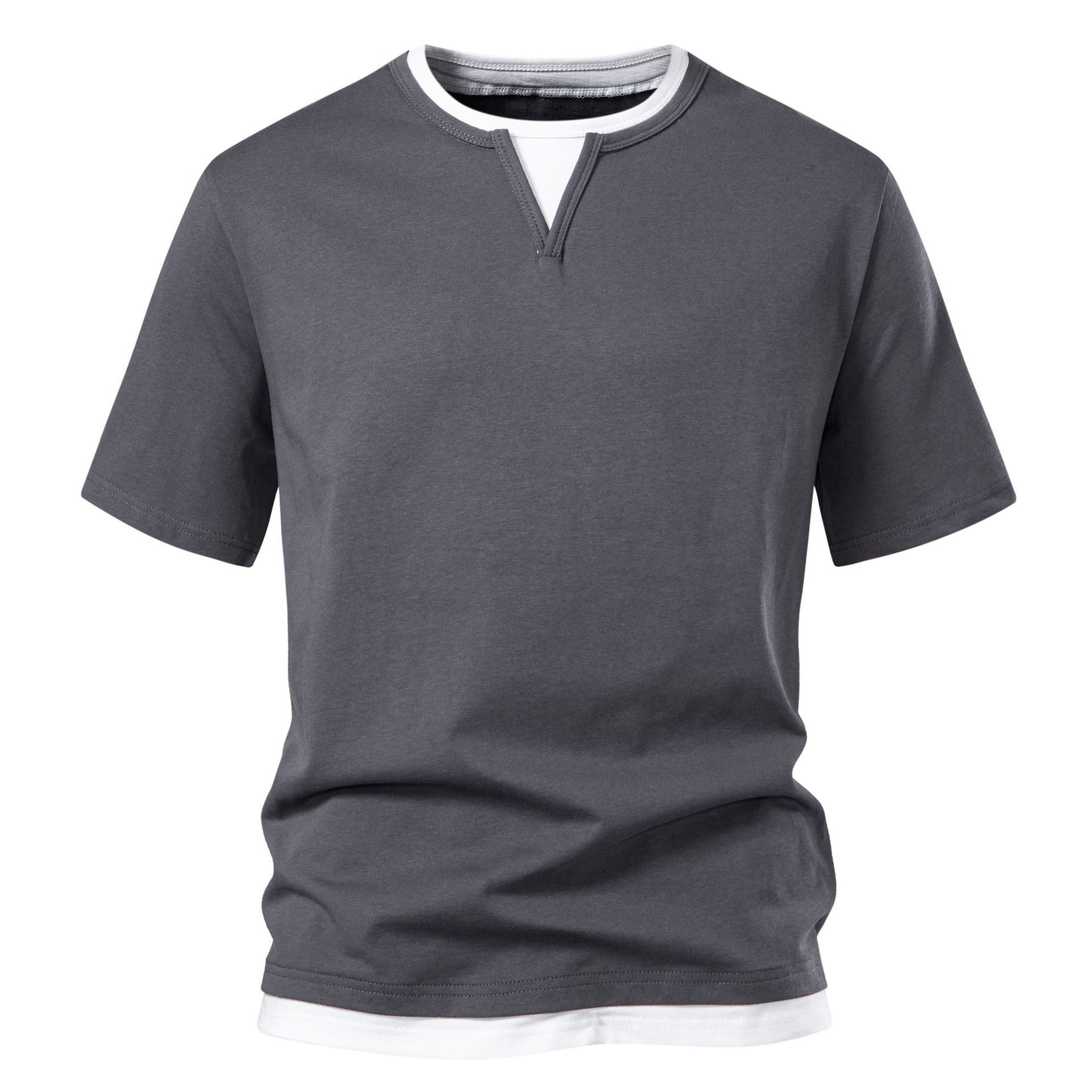 국경 간 남성 티셔츠 가짜 투피스 더블 레이어 V 넥 가을과 겨울 패션 스티칭 플러스 사이즈 베이스 셔츠 남성용 긴팔 티셔츠