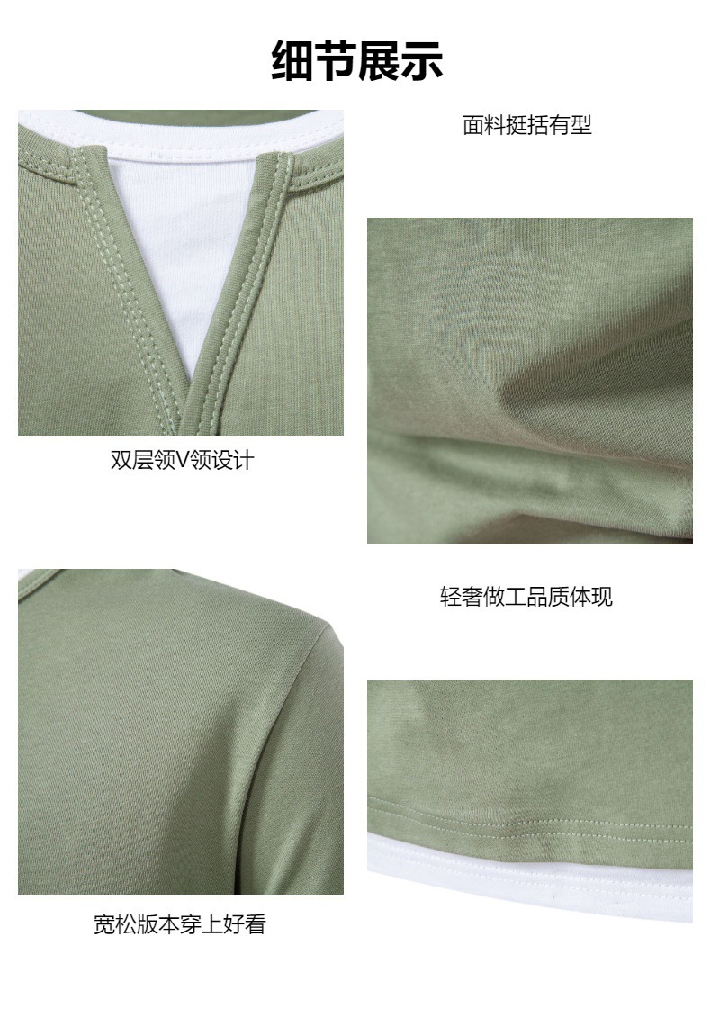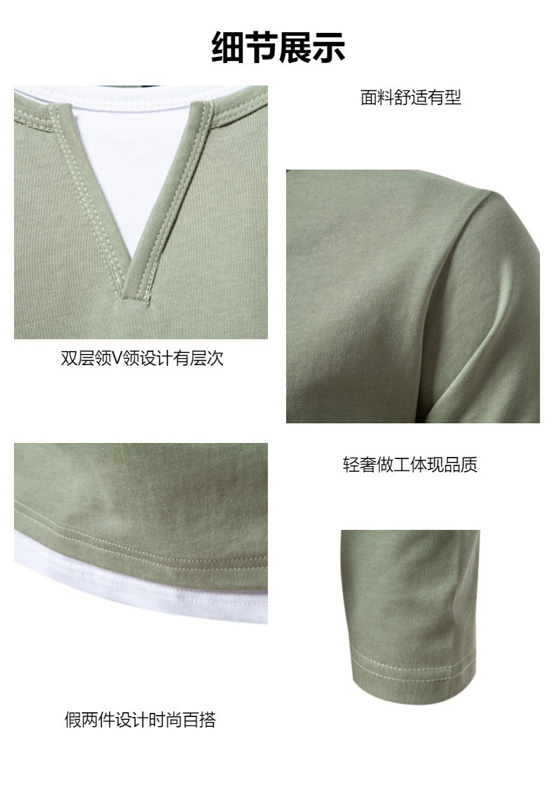 국경 간 남성 티셔츠 가짜 투피스 더블 레이어 V 넥 가을과 겨울 패션 스티칭 플러스 사이즈 베이스 셔츠 남성용 긴팔 티셔츠스토어 가기