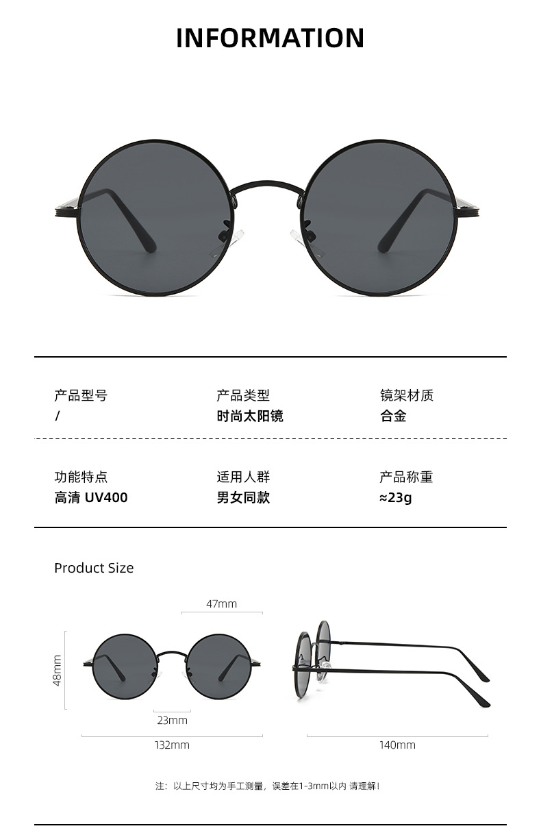 새로운 힙합 라운드 선글라스 웨딩 최고의 남자 남녀 레트로 선글라스 맞춤형 프린스 미러 도매 UV 보호
