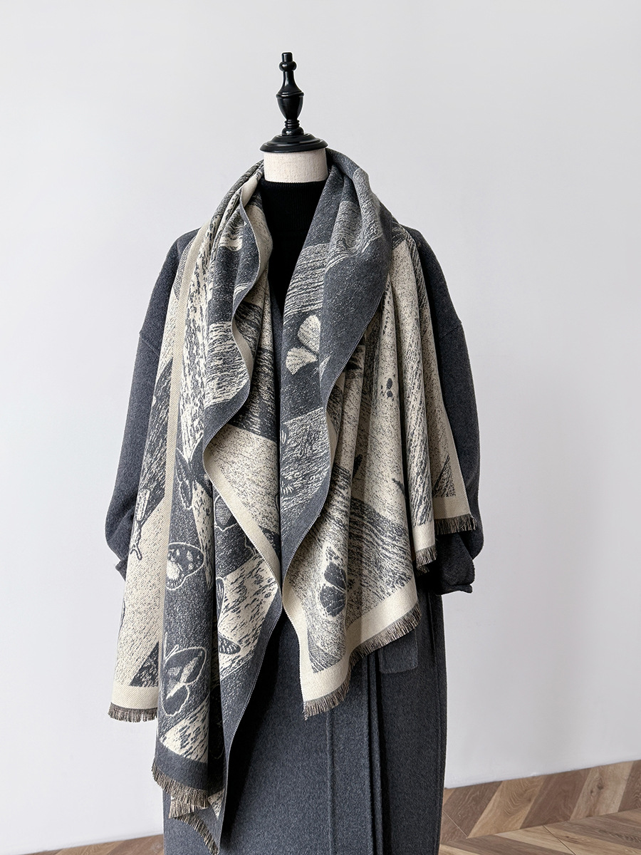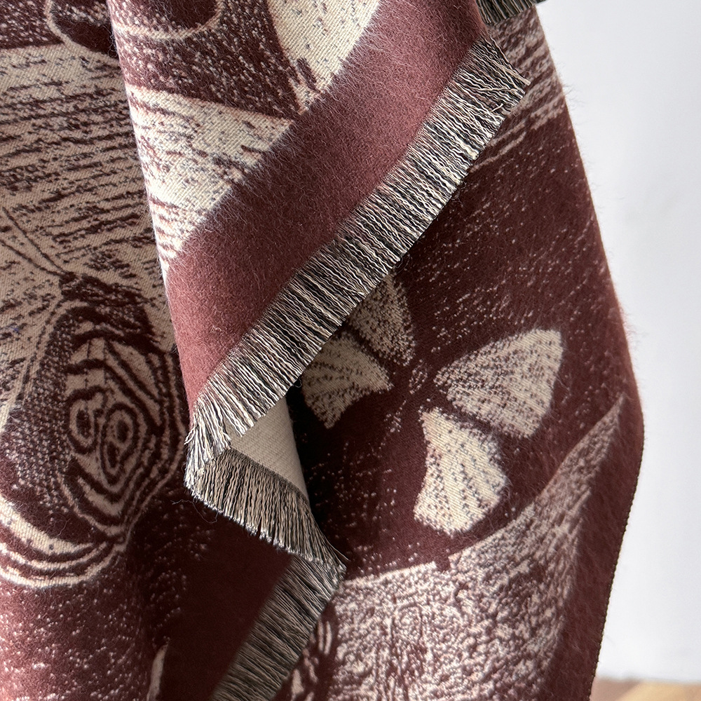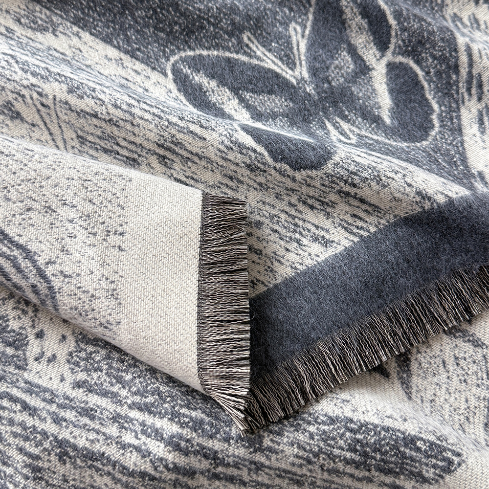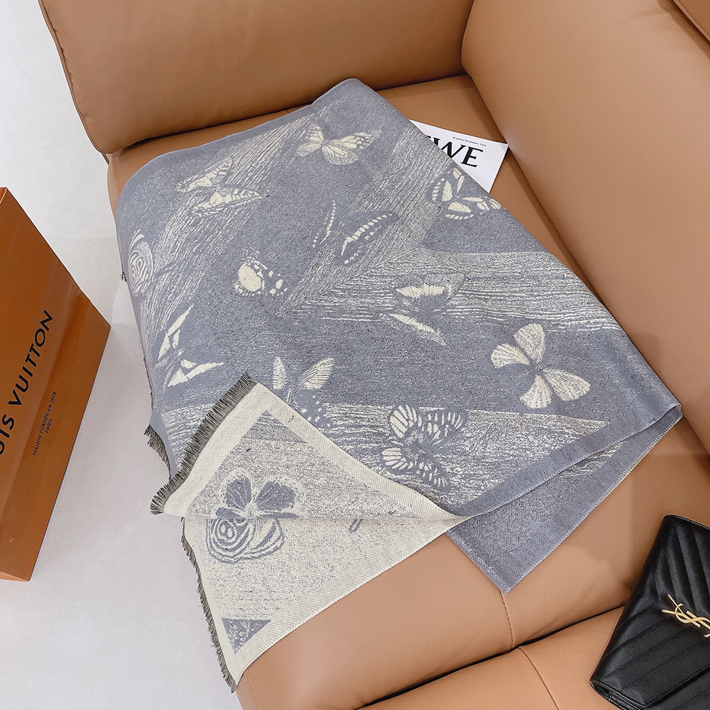 秋冬必备的仿羊绒围巾,触感柔软细腻,流行的撞色配色,唯美蝴蝶翩翩起舞的印花图案别具个性也很时尚,颜色也很百搭,可以当围巾也可以当披肩~