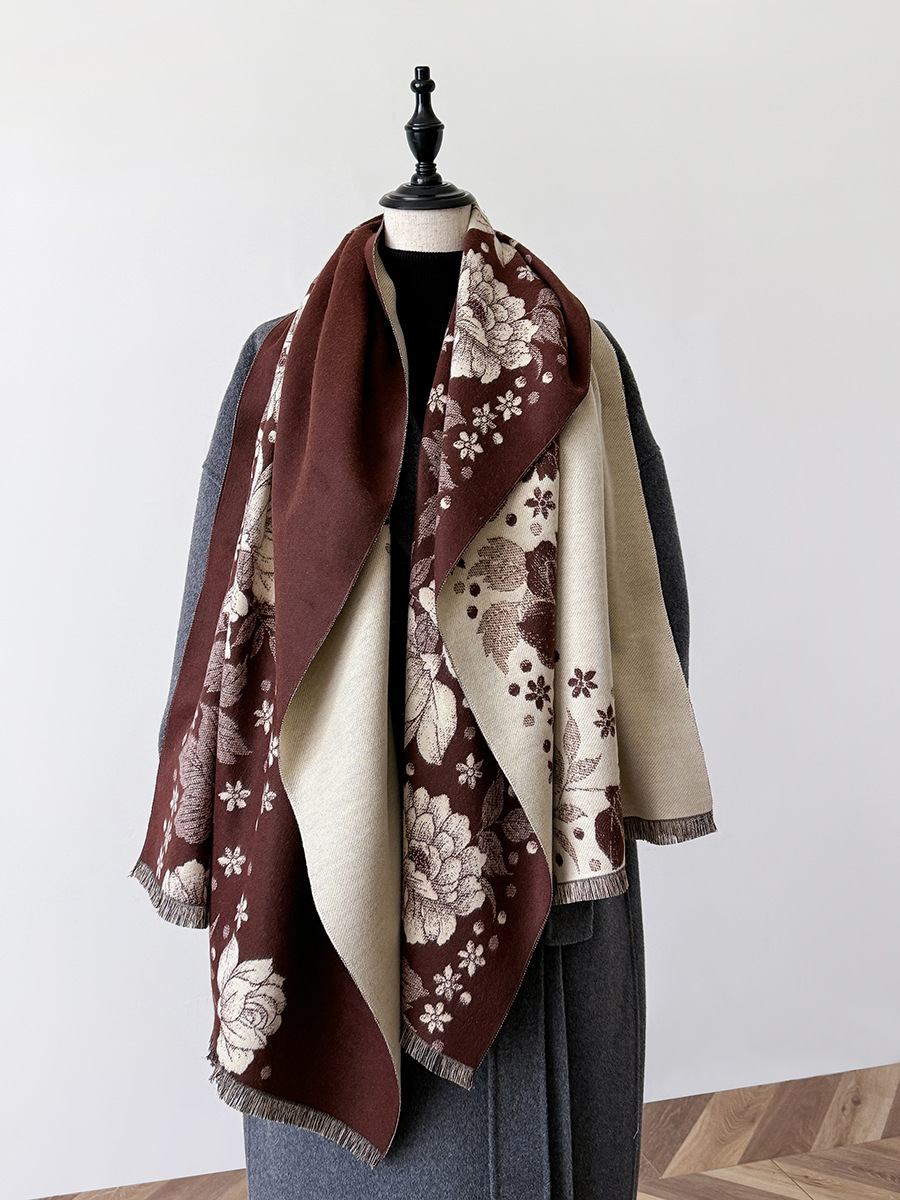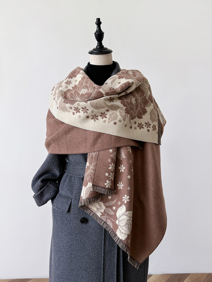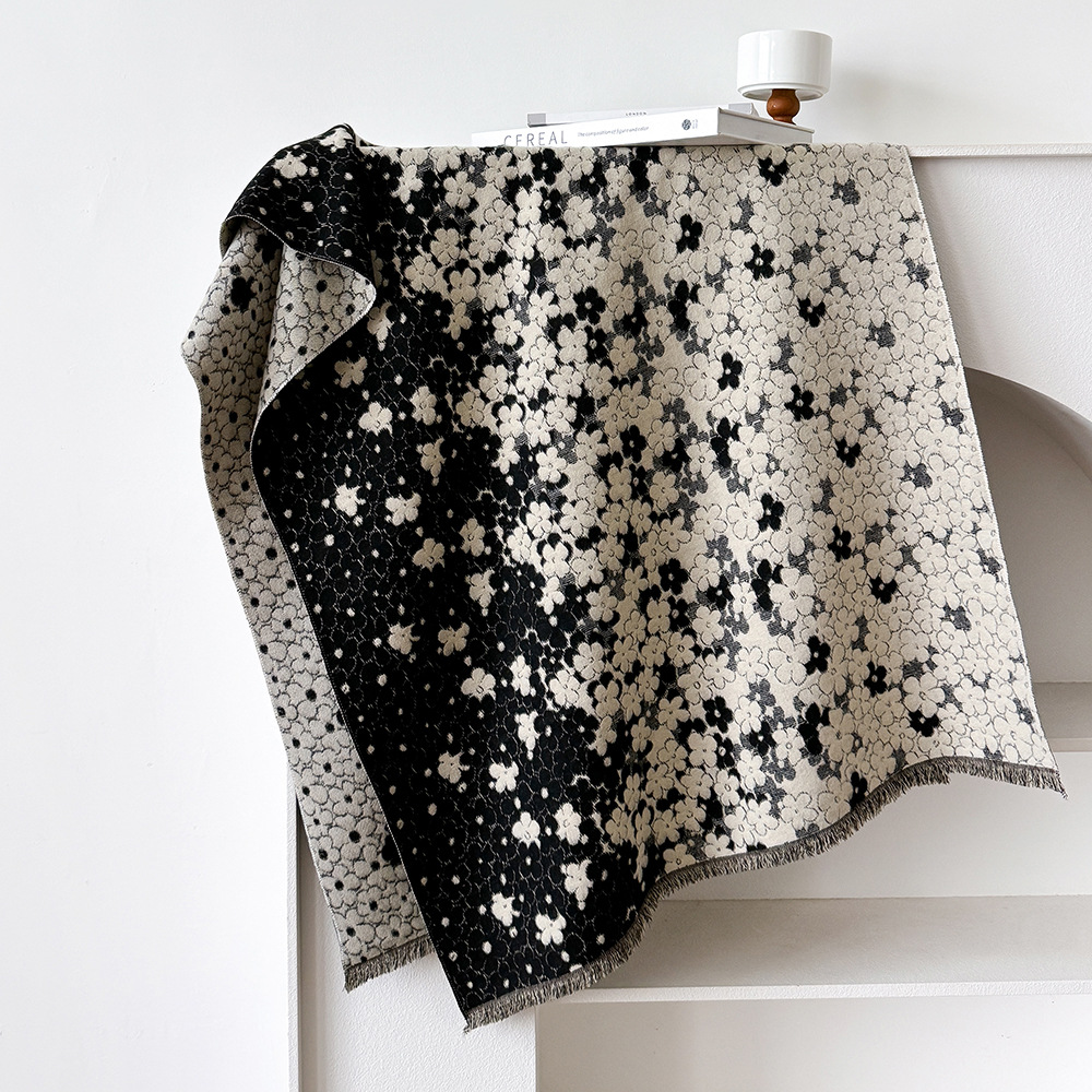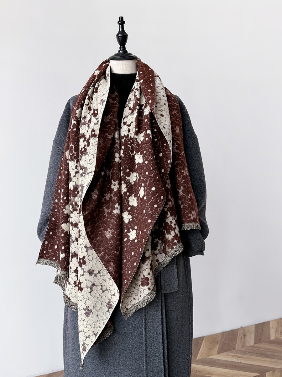 秋冬必备的仿羊绒围巾,触感柔软细腻,流行的撞色配色,唯美蝴蝶翩翩起舞的印花图案别具个性也很时尚,颜色也很百搭,可以当围巾也可以当披肩~