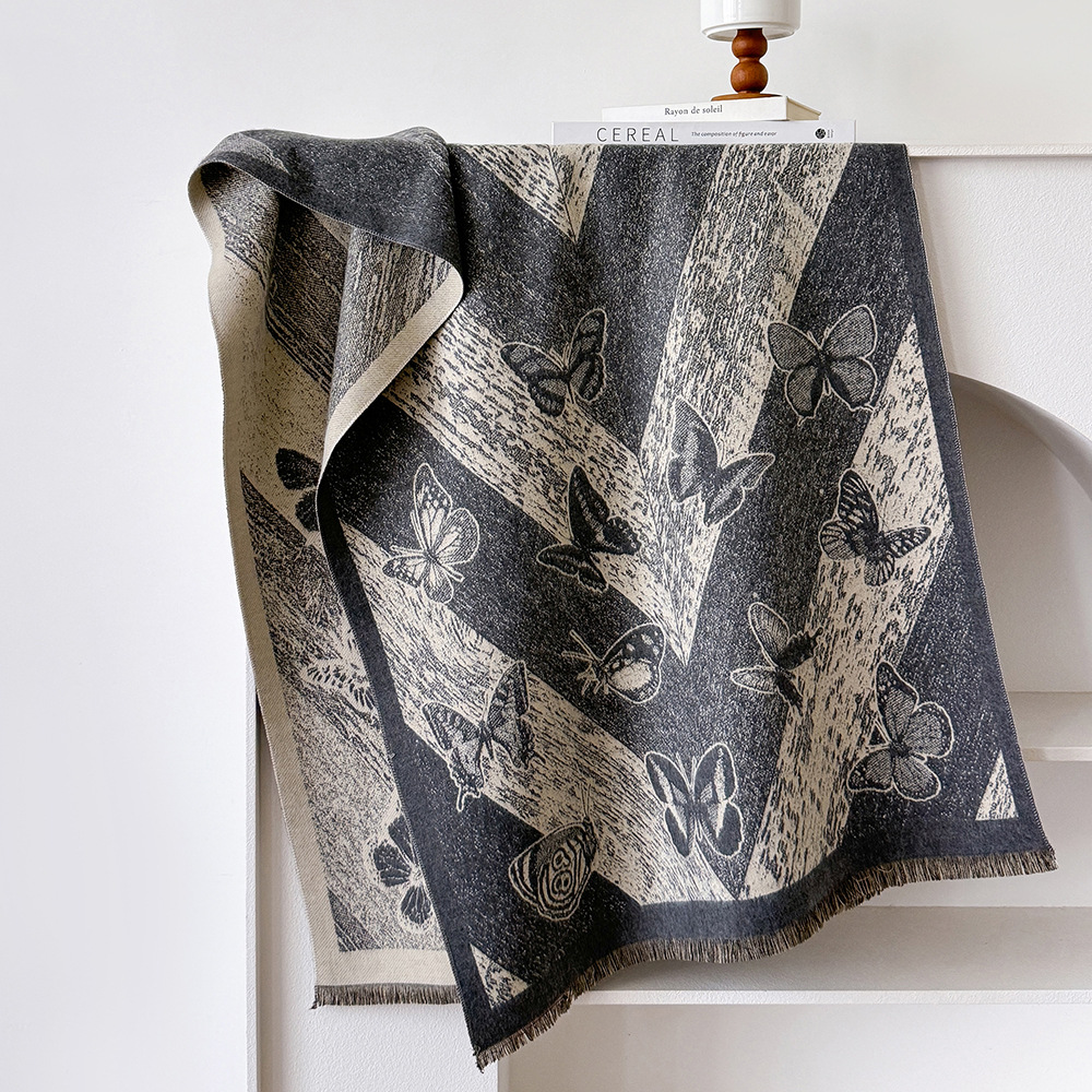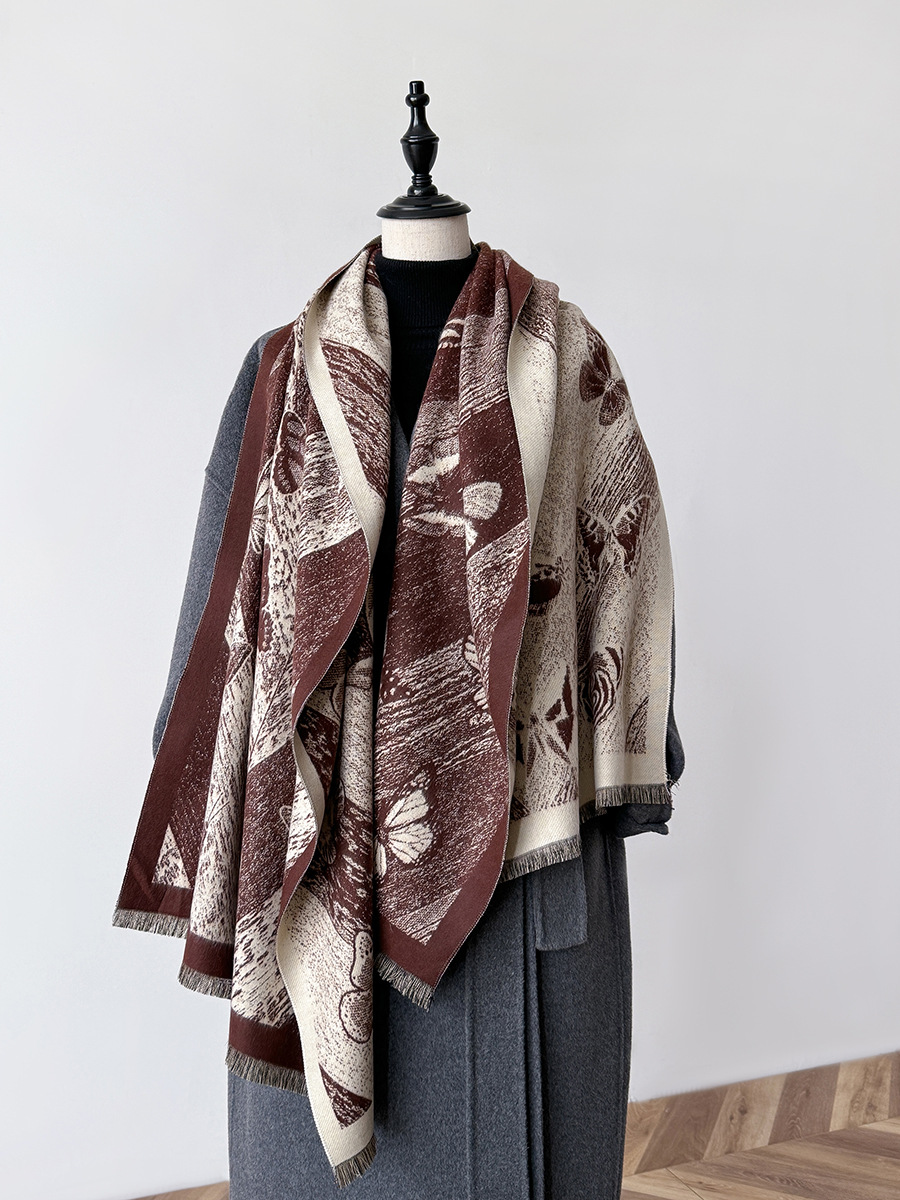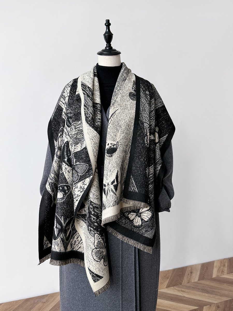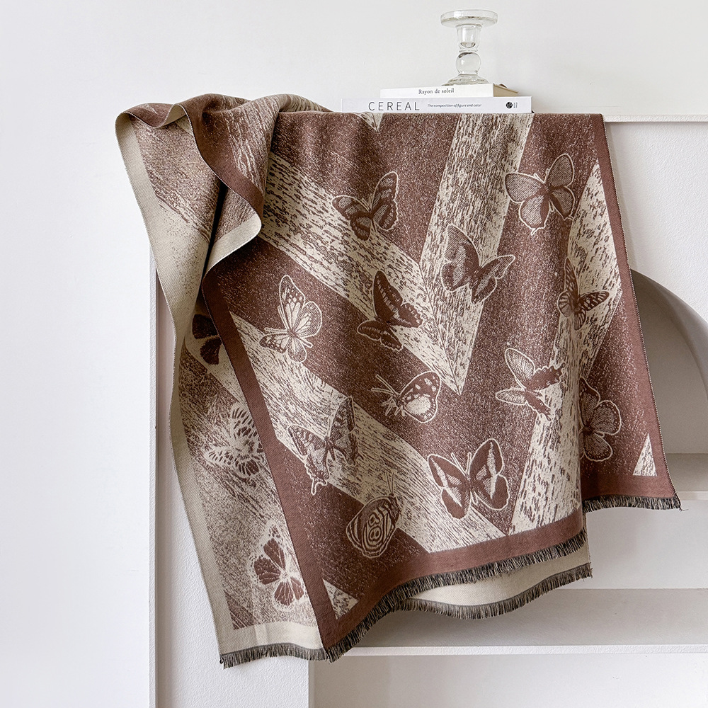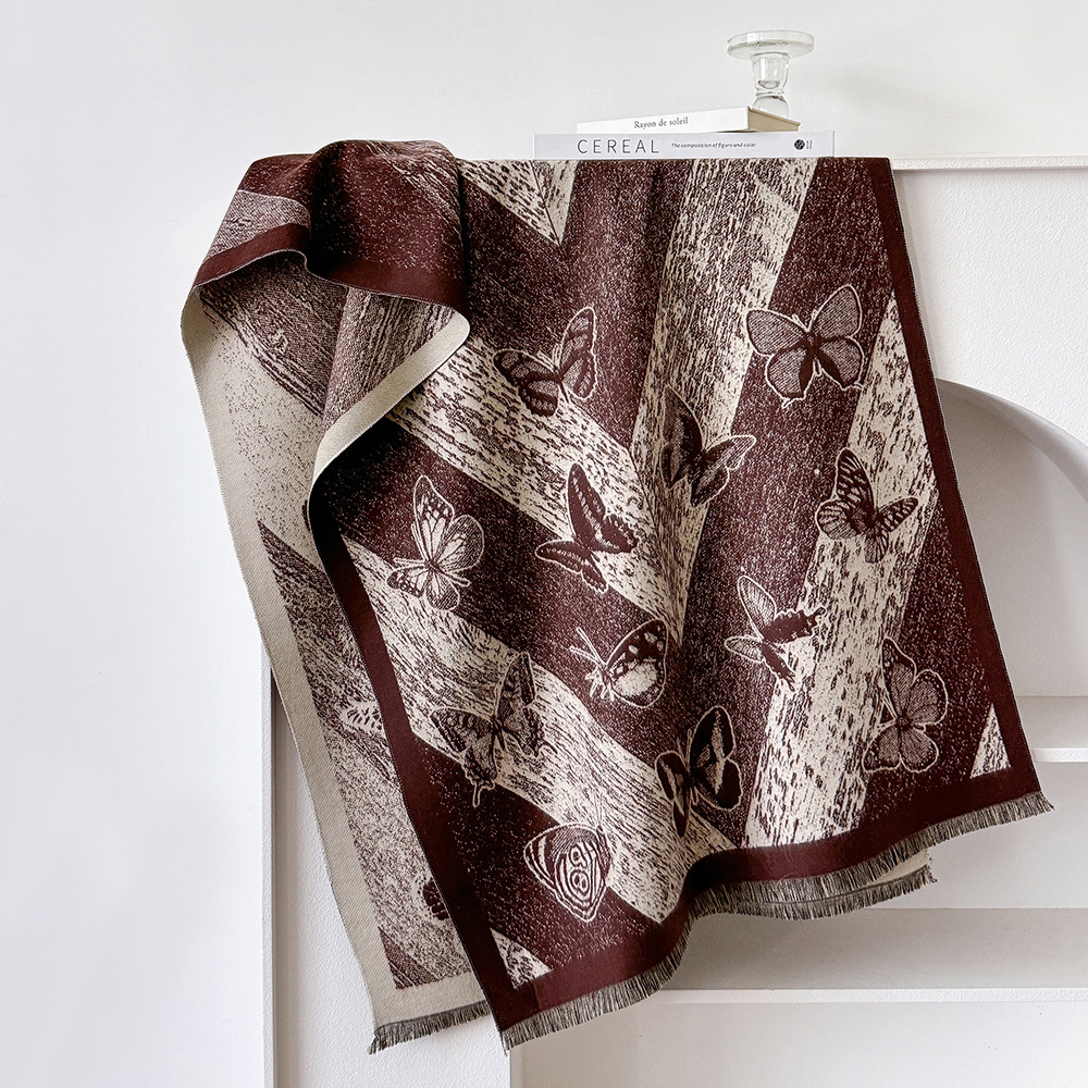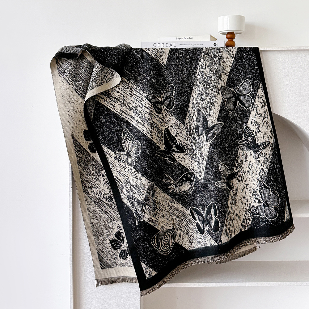 고급 나비 인쇄 캐시미어 스카프 따뜻한 패션 대비 색상 외부 목도리 겨울 따뜻한 목 여성