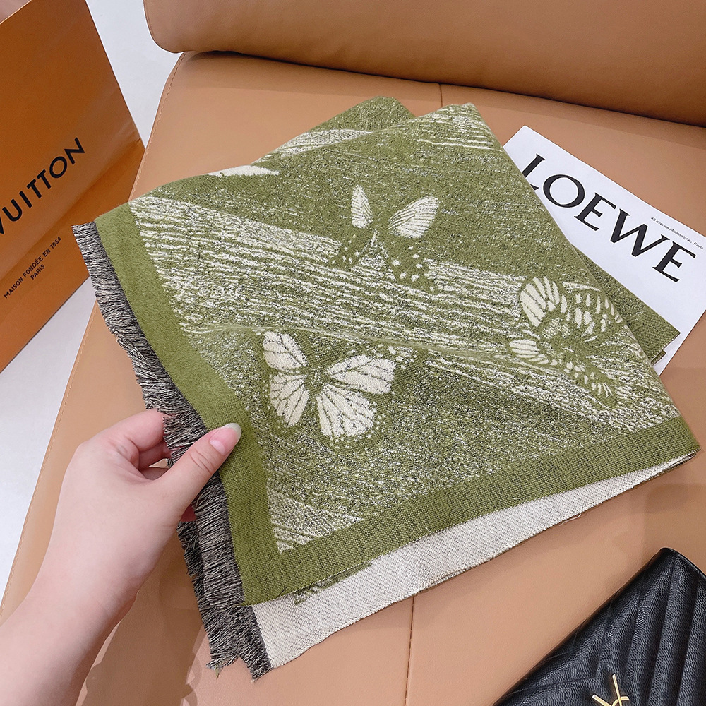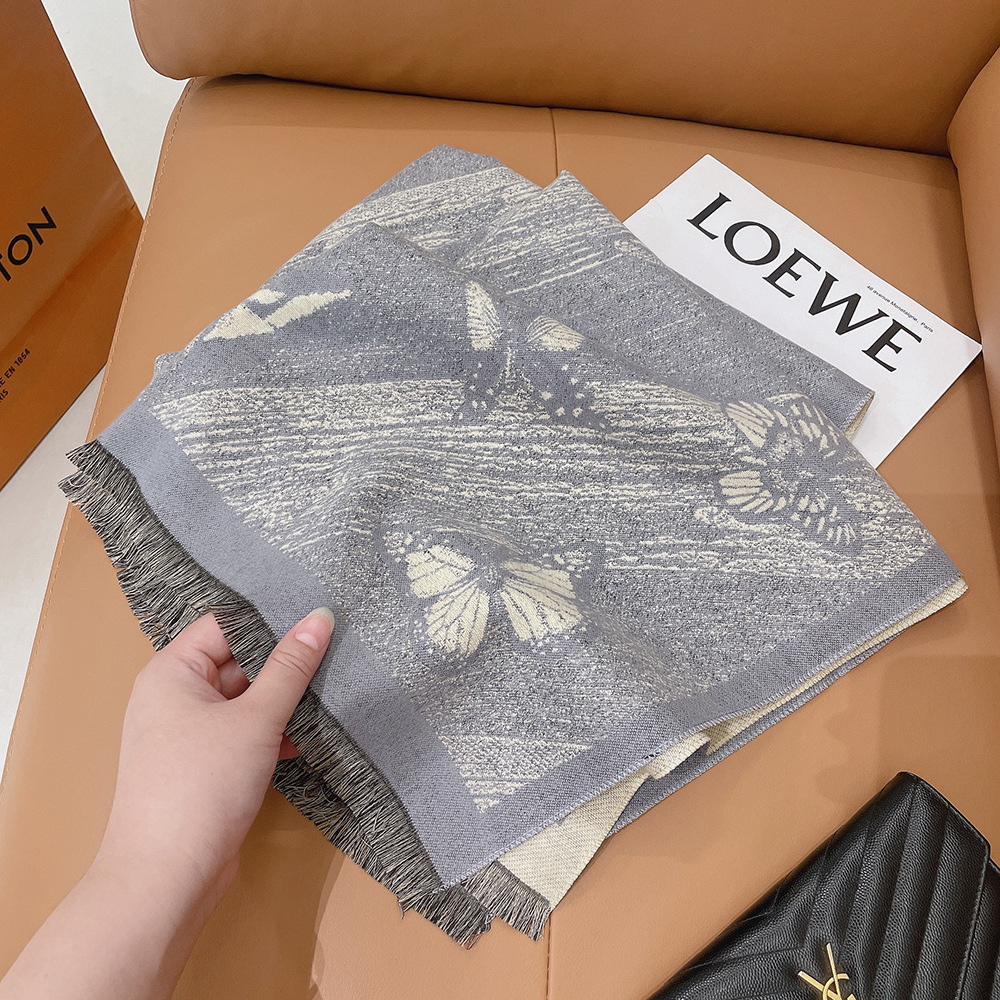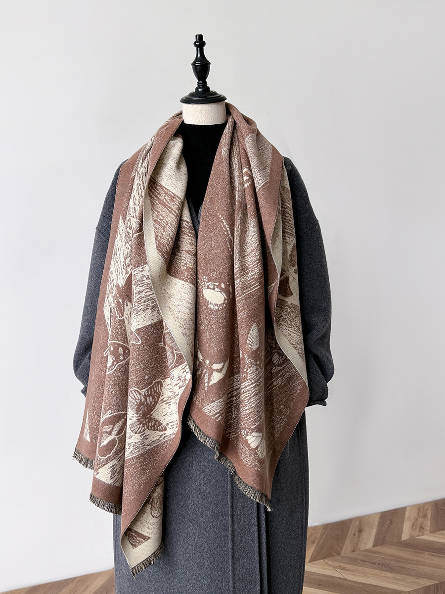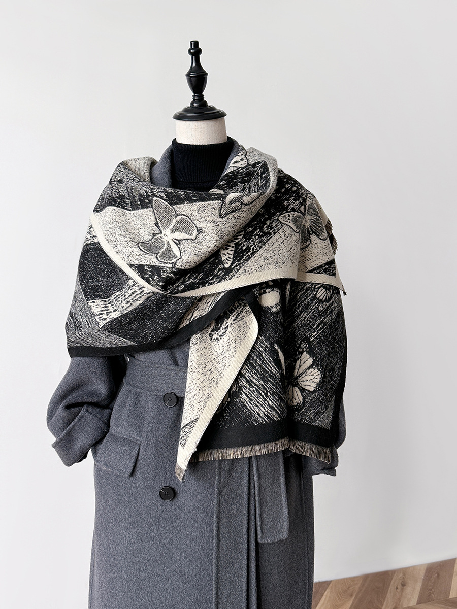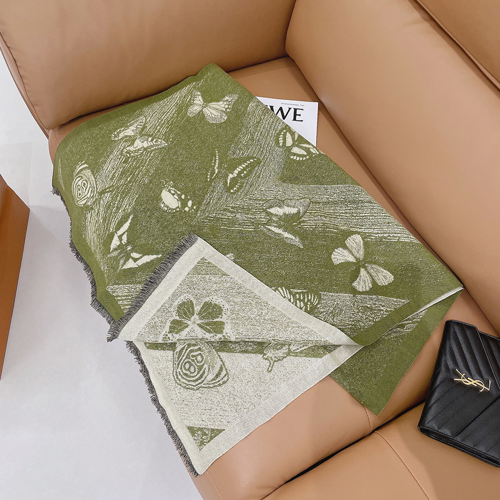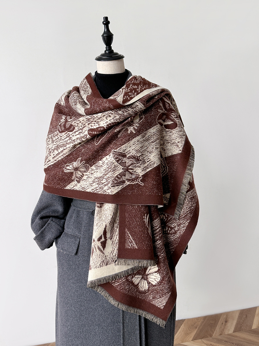 고급 나비 인쇄 캐시미어 스카프 따뜻한 패션 대비 색상 외부 목도리 겨울 따뜻한 목 여성