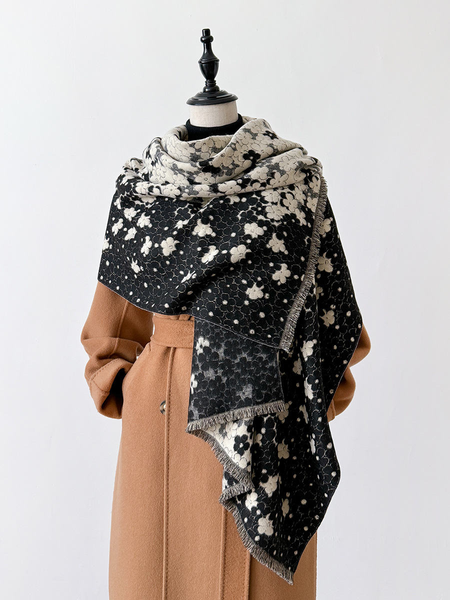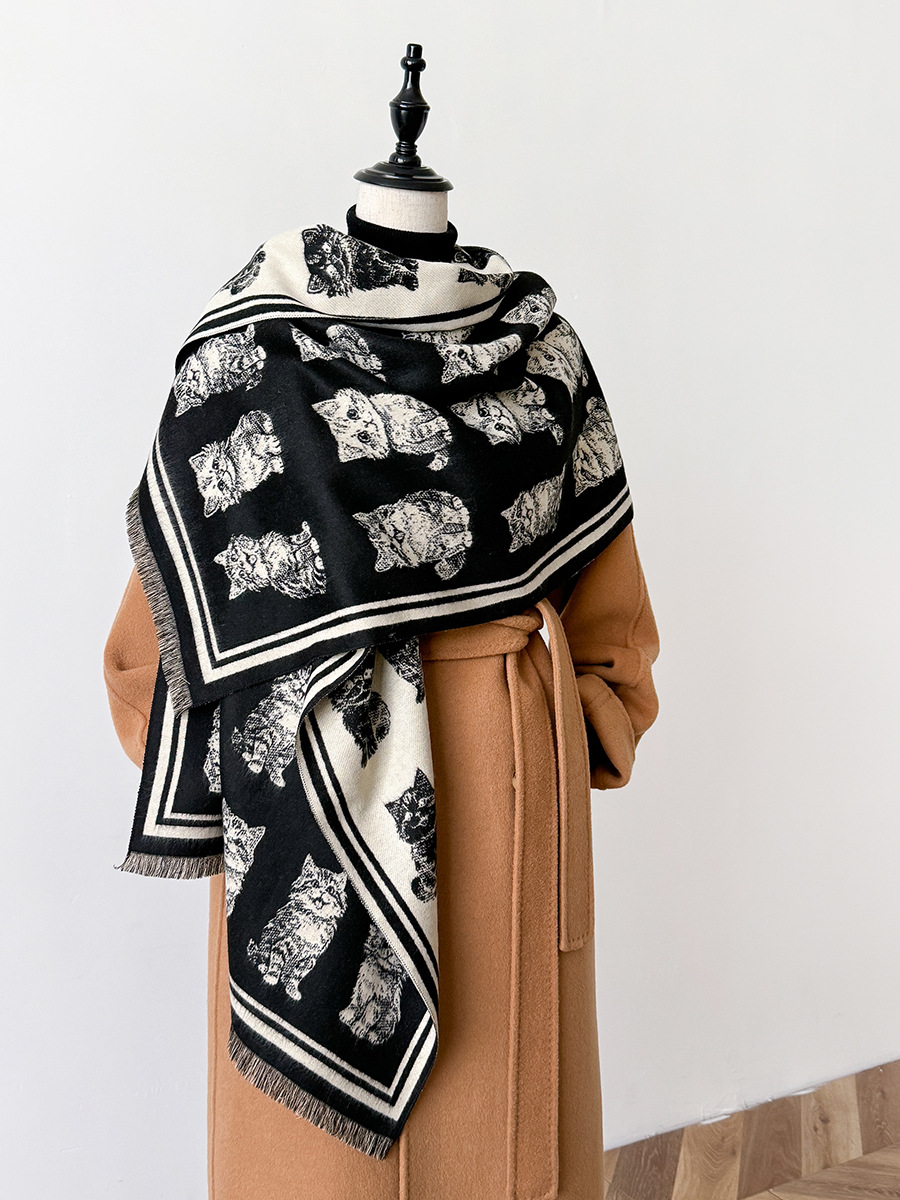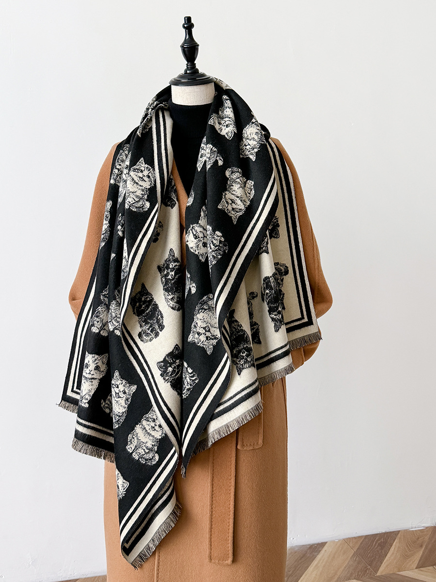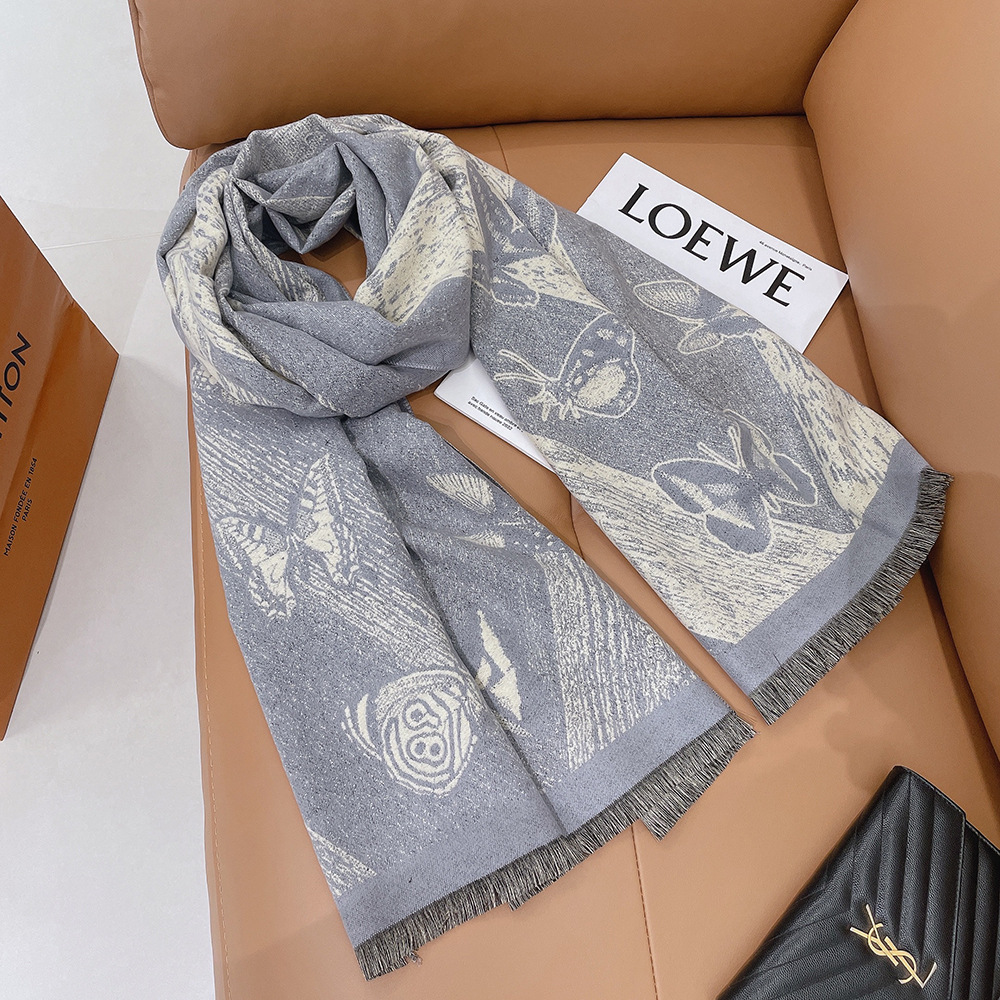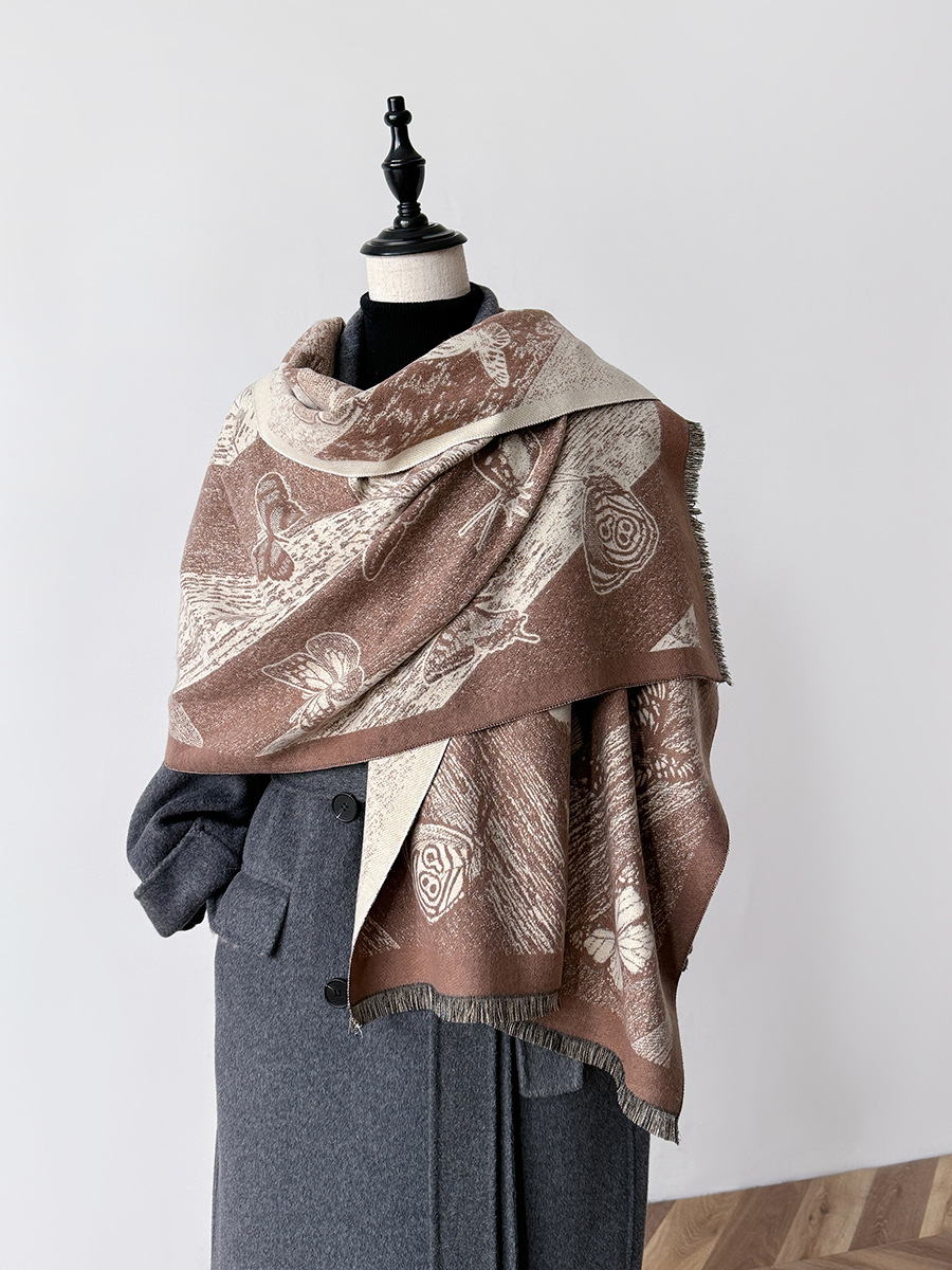 고급 나비 인쇄 캐시미어 스카프 따뜻한 패션 대비 색상 외부 목도리 겨울 따뜻한 목 여성