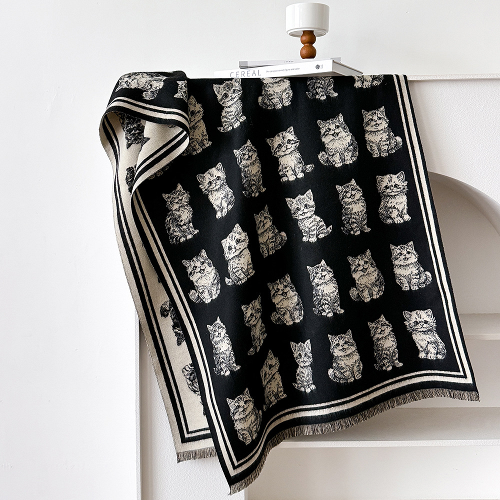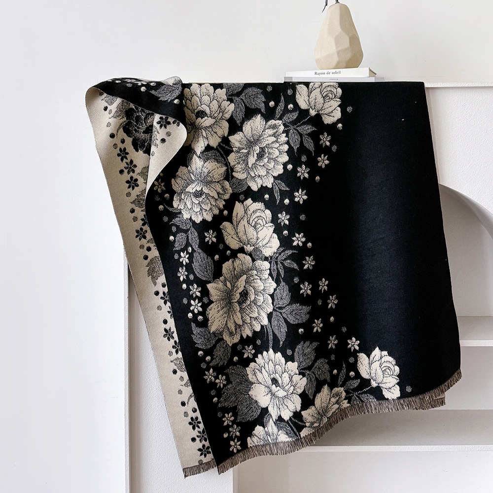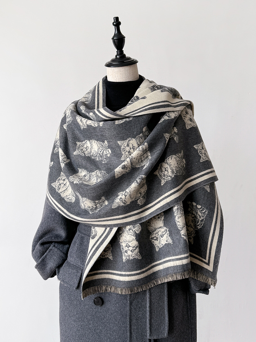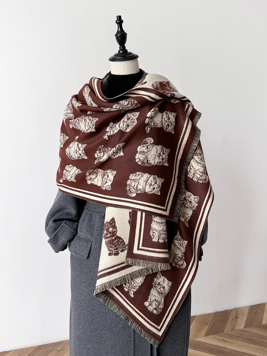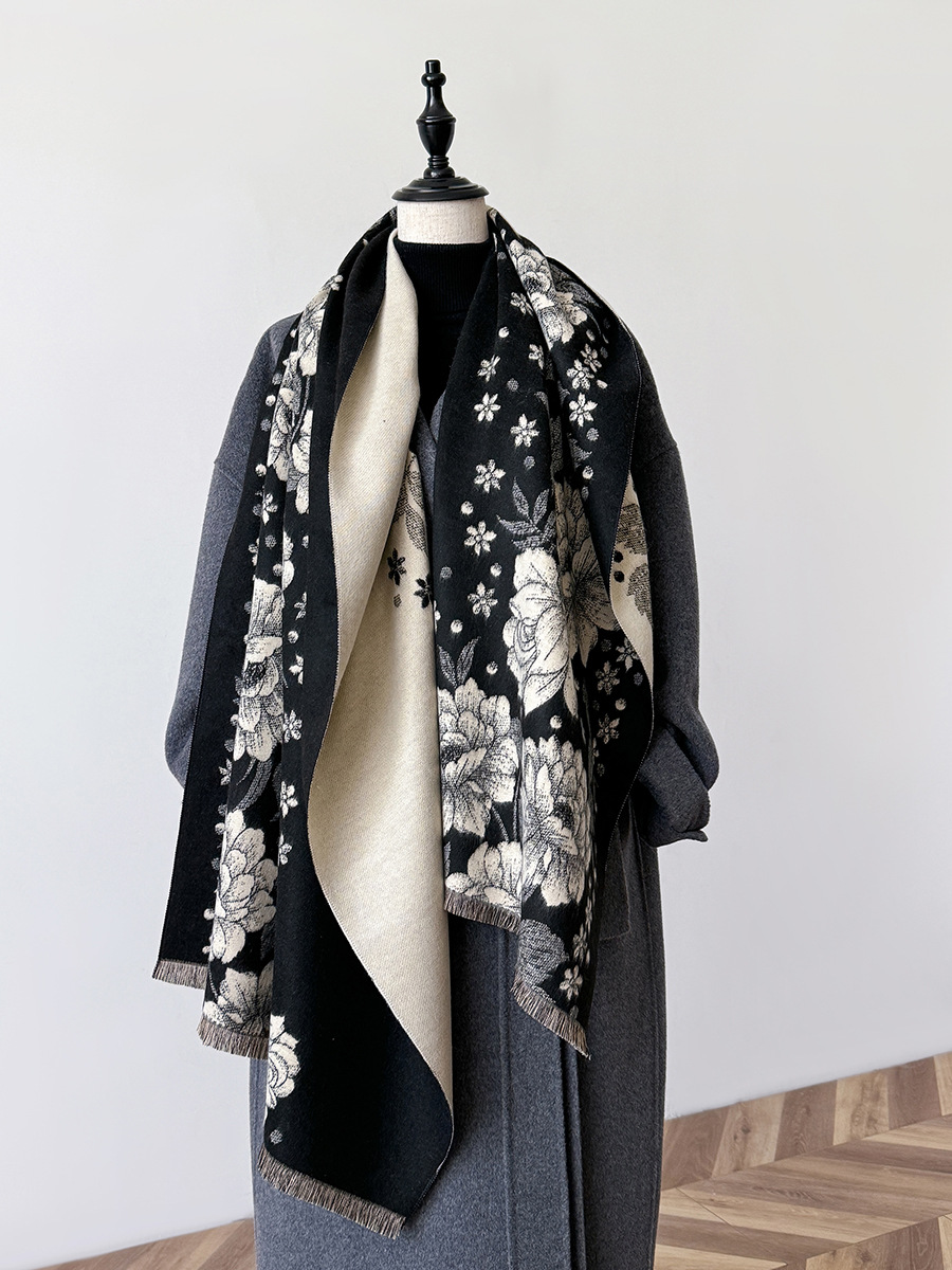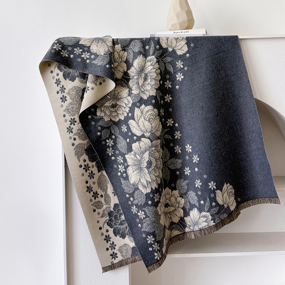 고급 나비 인쇄 캐시미어 스카프 따뜻한 패션 대비 색상 외부 목도리 겨울 따뜻한 목 여성