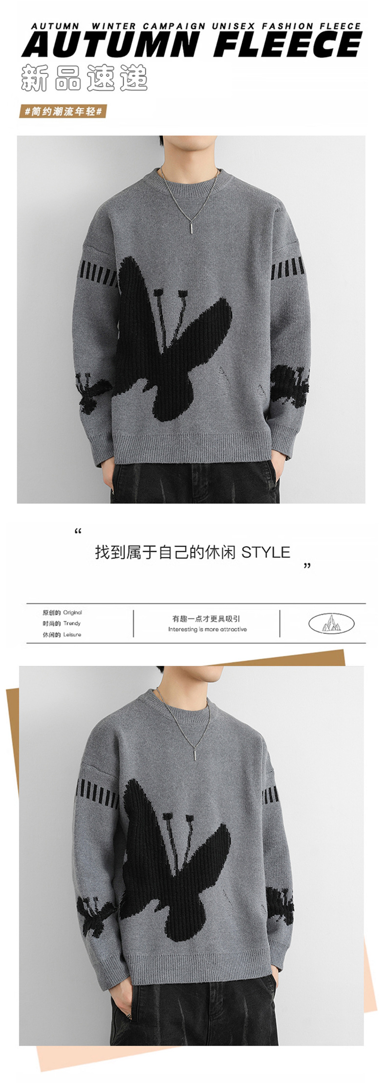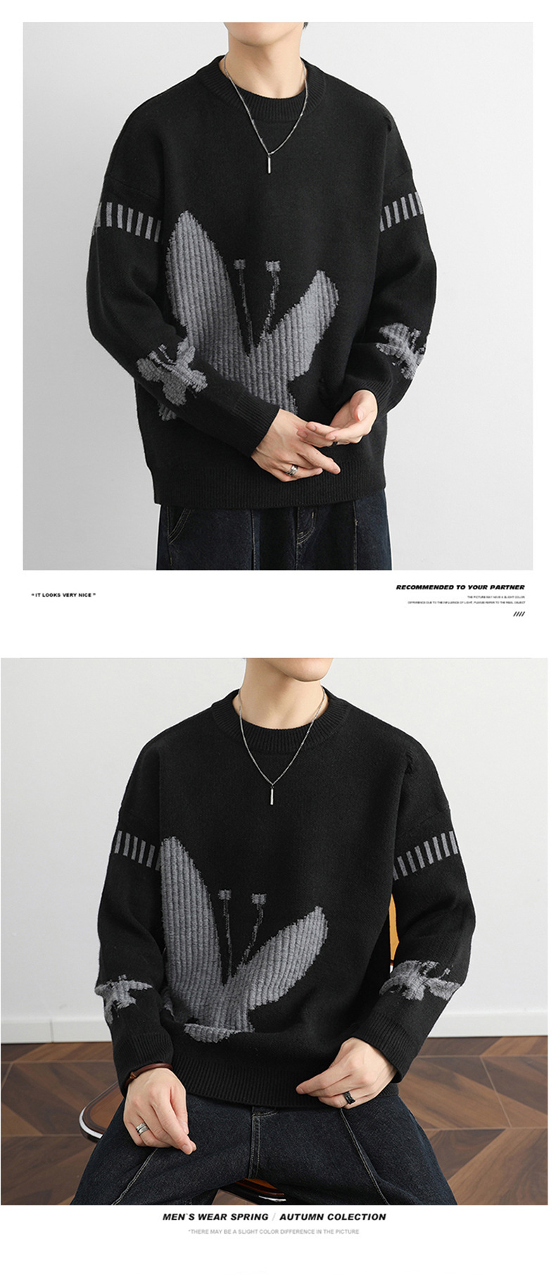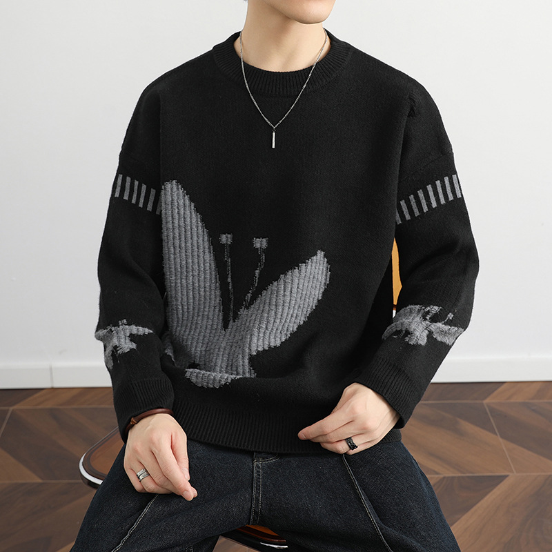 Puyuan 하이 퀄리티 십대 크루 넥 나비 자카드 니트 패션 브랜드 게으른 피부 친화적 인 소프트 왁스 긴팔 올 매치 스웨터