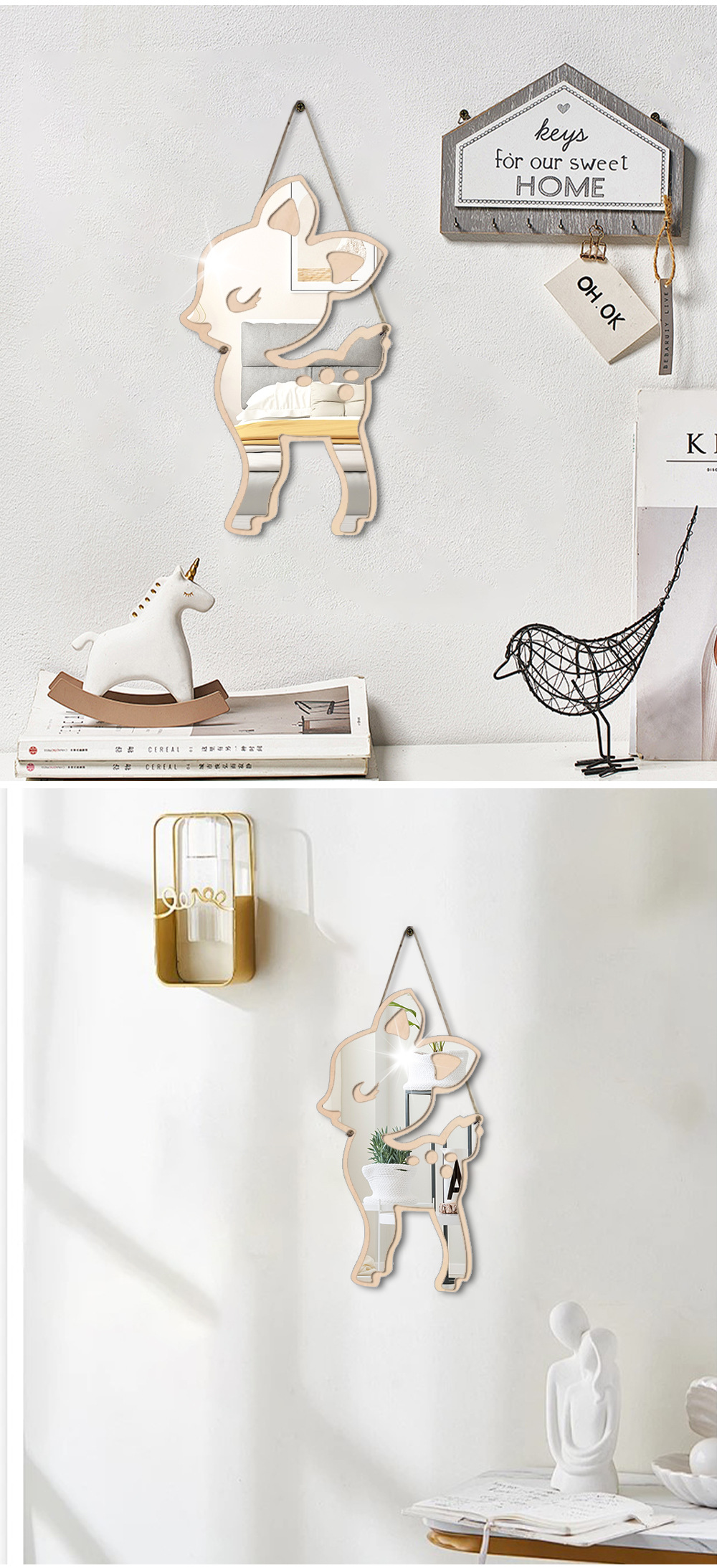국경 간 아크릴 거울 벽 스티커 포플러 나무 보드 동물 어린이 방 펜던트 그물 빨간 침실 방 레이아웃 벽