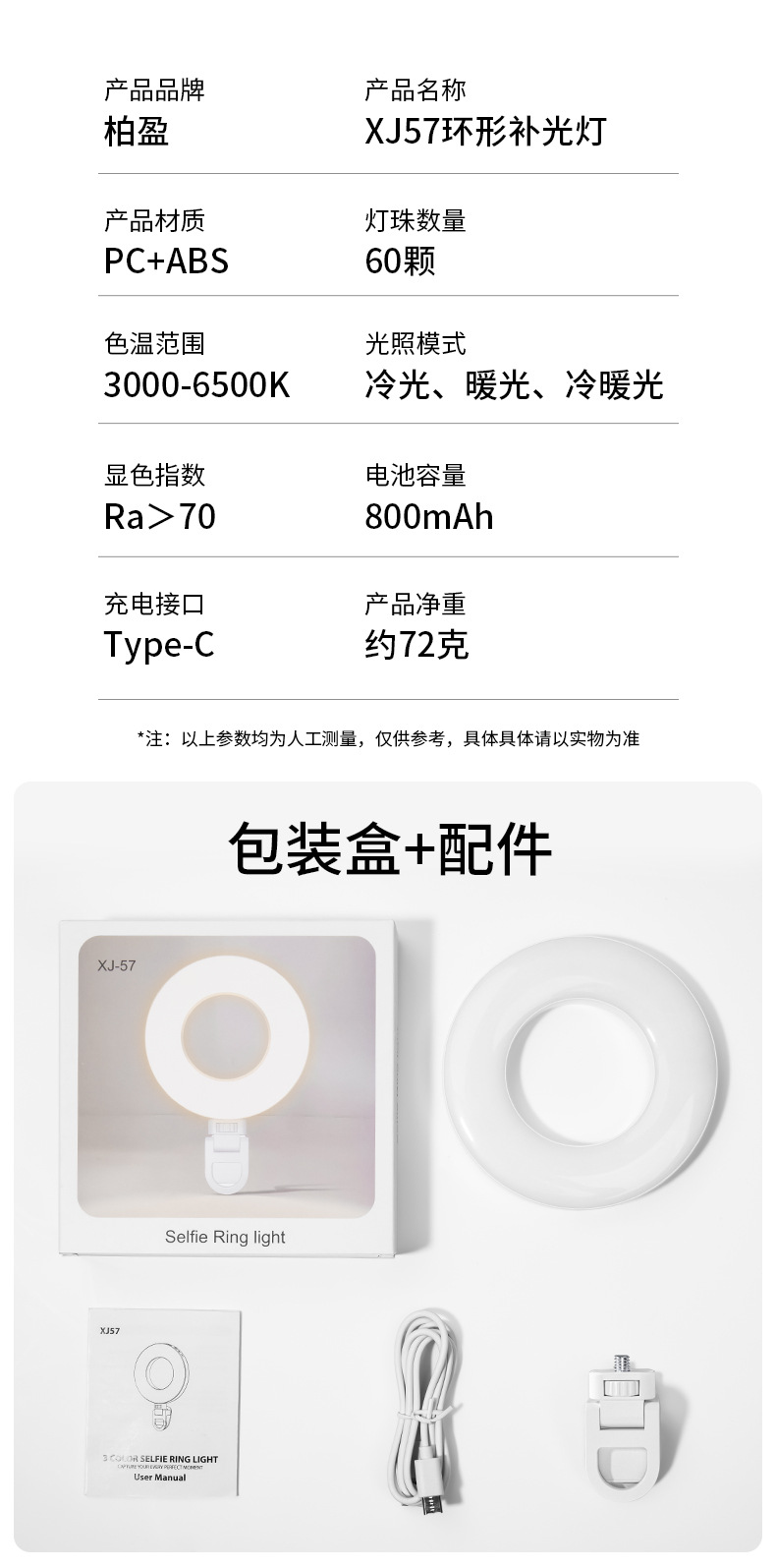 XJ57 휴대 전화 채우기 조명 앵커 라이브 LED 셀카 사진 조명 노트북 화상 회의 링 라이트