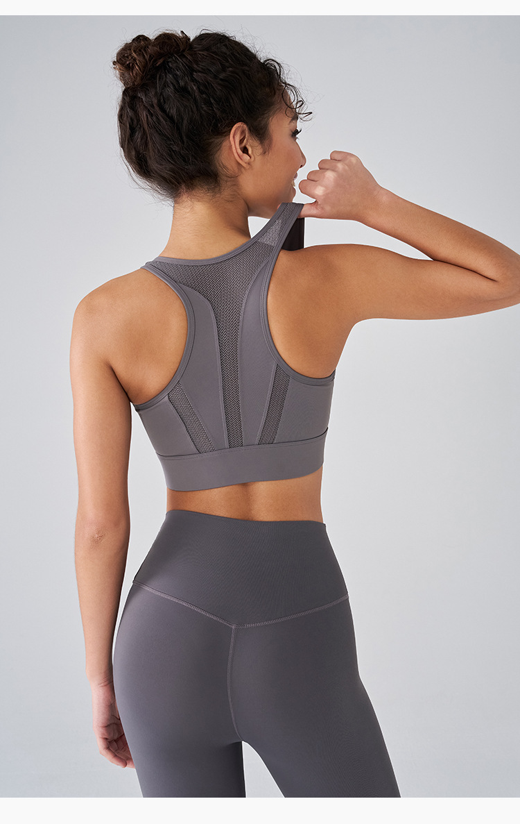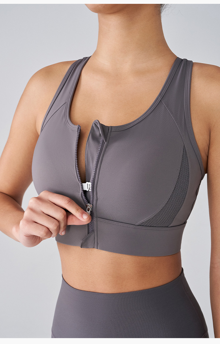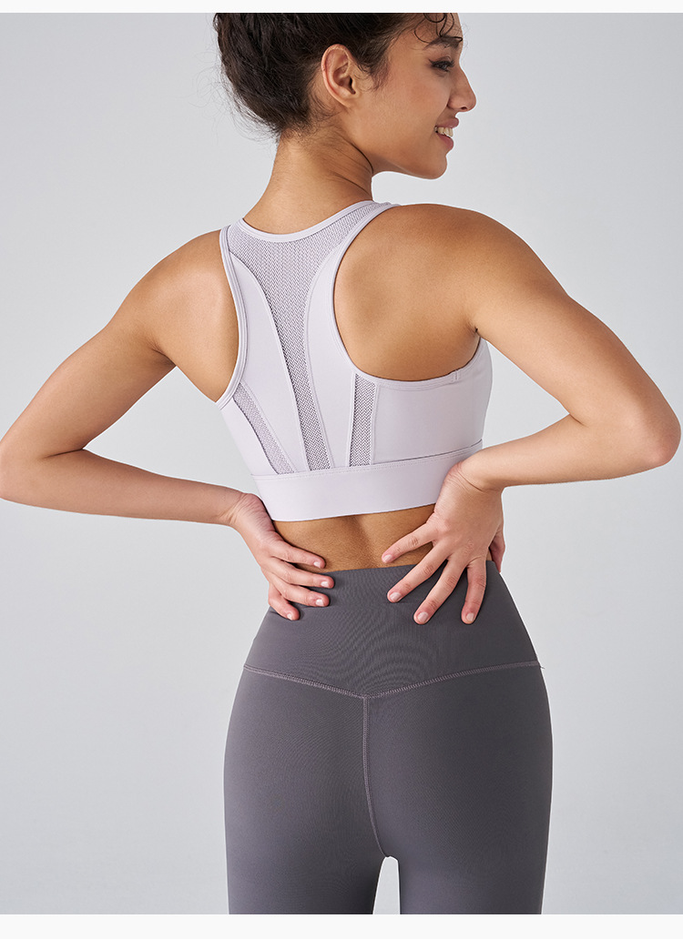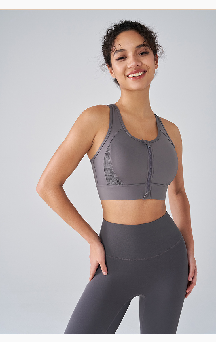 라이크라 항균 스포츠 속옷 여성 브래지어 가슴 패드 지퍼 충격 방지 러닝 피트니스 옷 고강도 요가 조끼