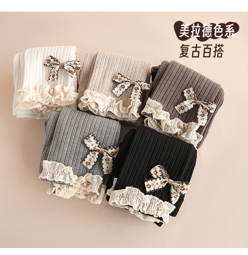 레이스 사이드 어린이 레깅스 봄과 가을 소녀 팬티 스타킹 꽃 콤비드 코튼 베이비 걸스 발목 길이 팬티 스타킹 가을 아우터웨어