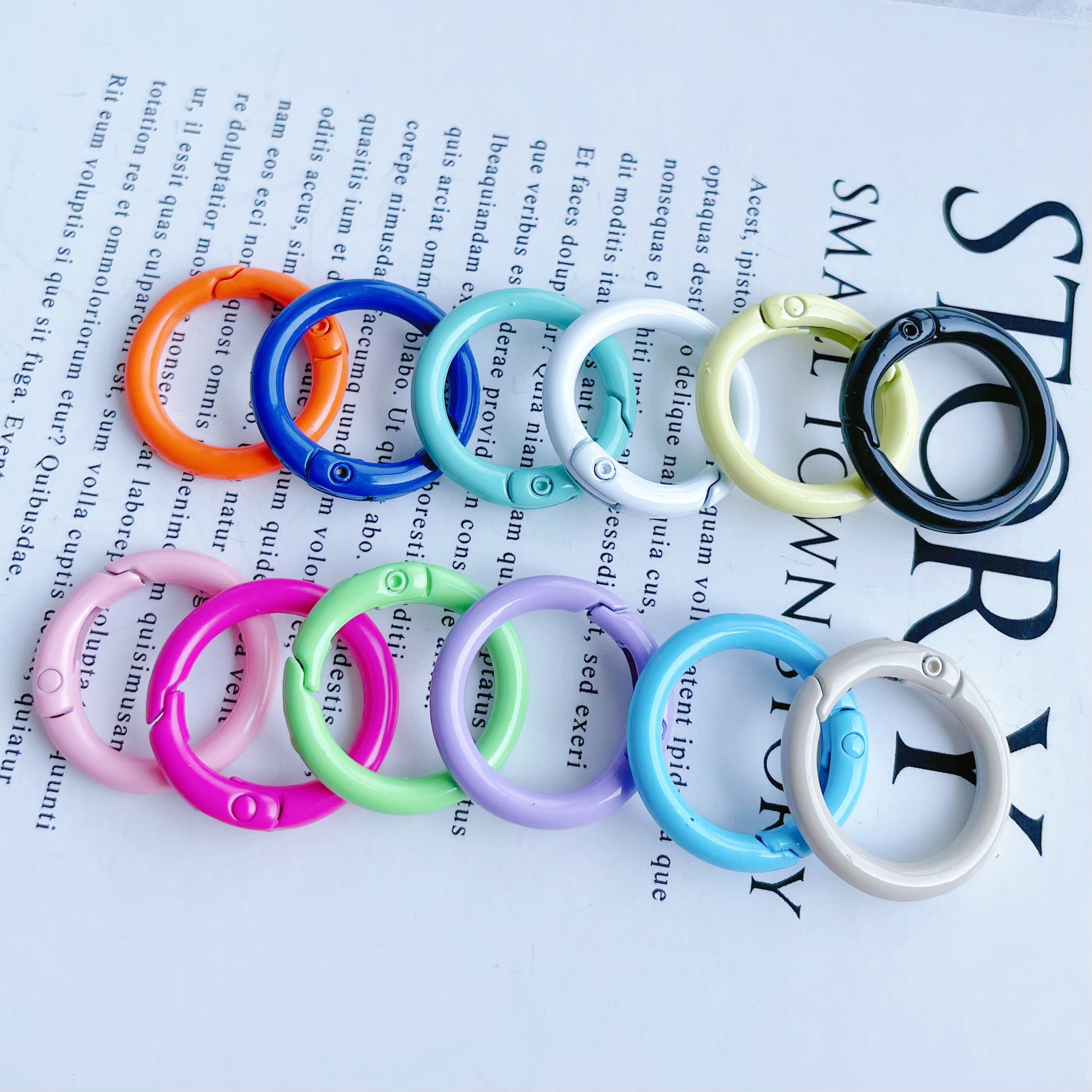 25mm 컬러 페인트 스프링 버클 금속 오프닝 스프링 링 키 링 라운드 카드 링 링 키 버클 액세서리