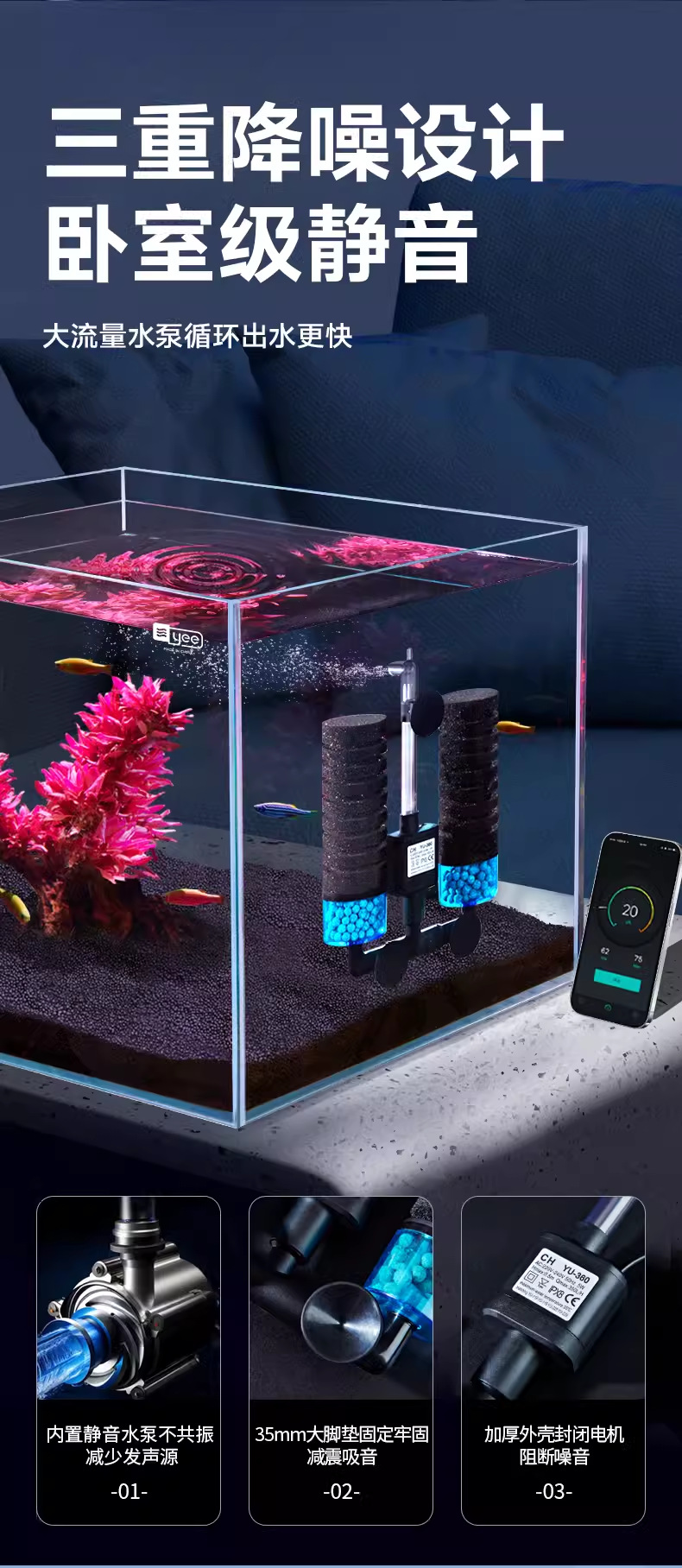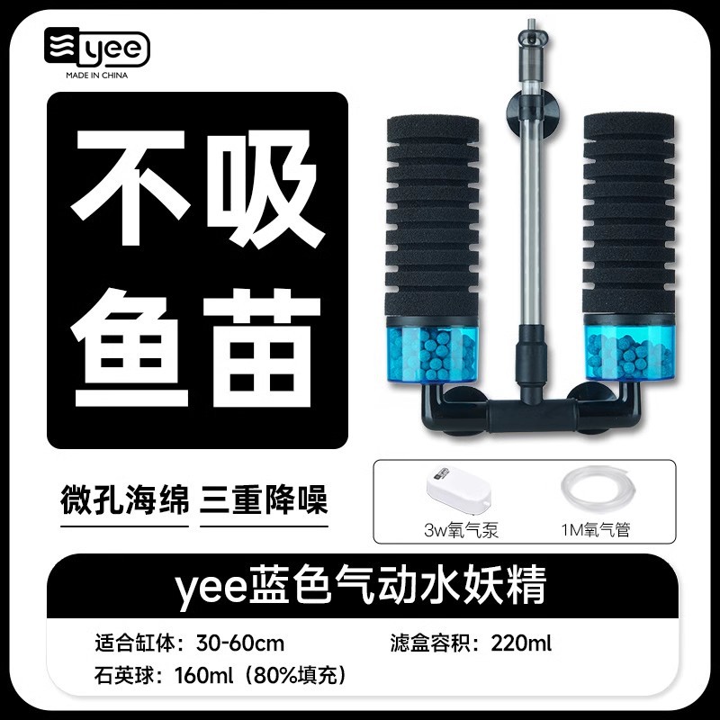 Yee 전기 물 고블린 내장 3 대 1 산소 증가 물 순환 음소거 산소 펌프 어항 필터 역 공기 리프트