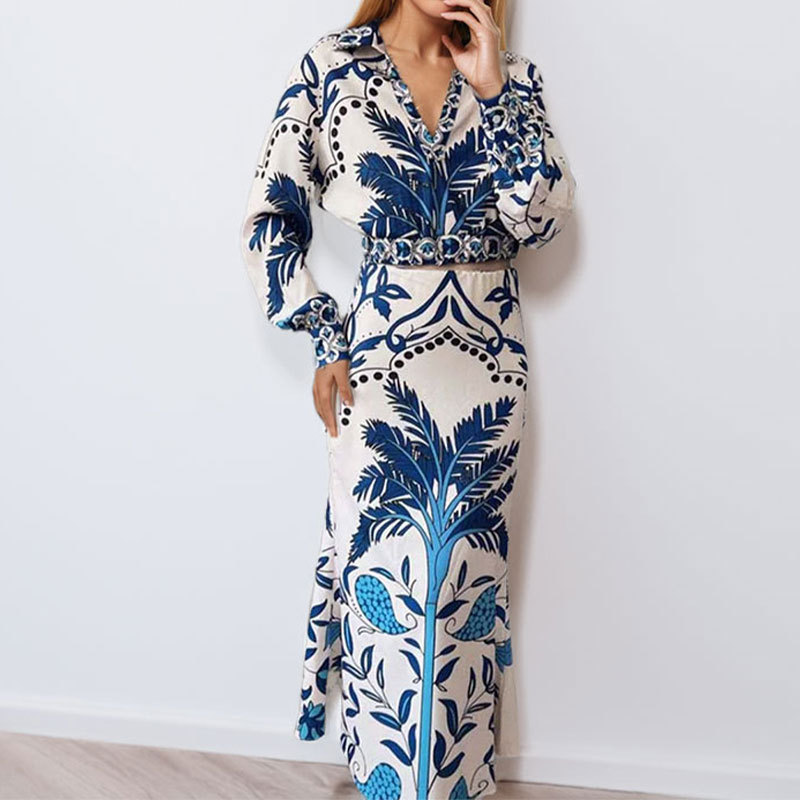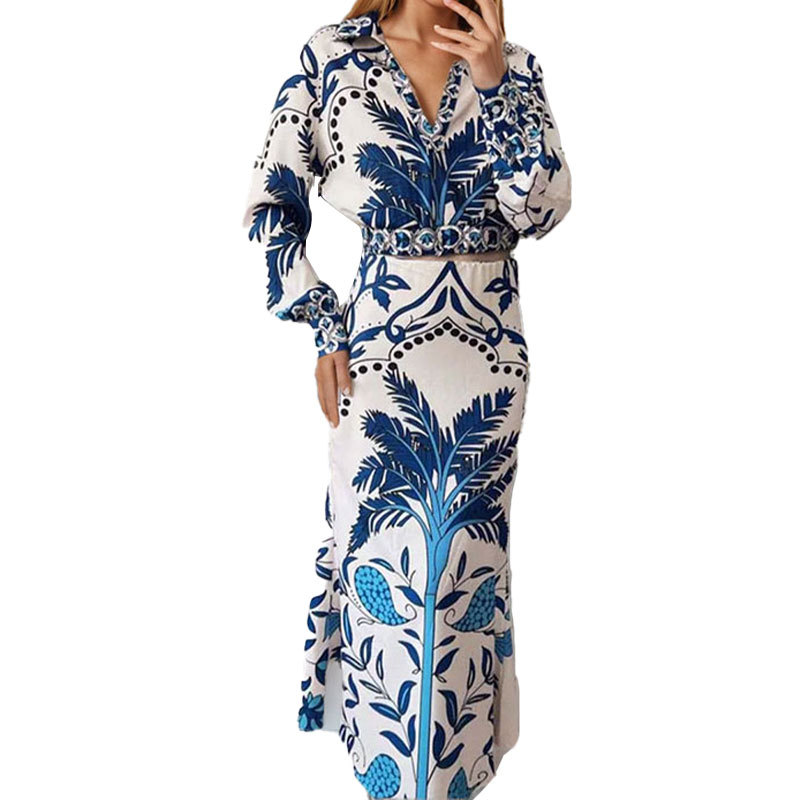 국경 2025 새로운 아마존 유럽과 미국의 V-넥 Irregular Top 스커트 유럽과 미국 여성의 겨울 세트 여성