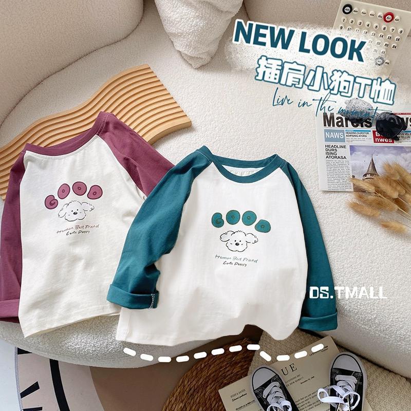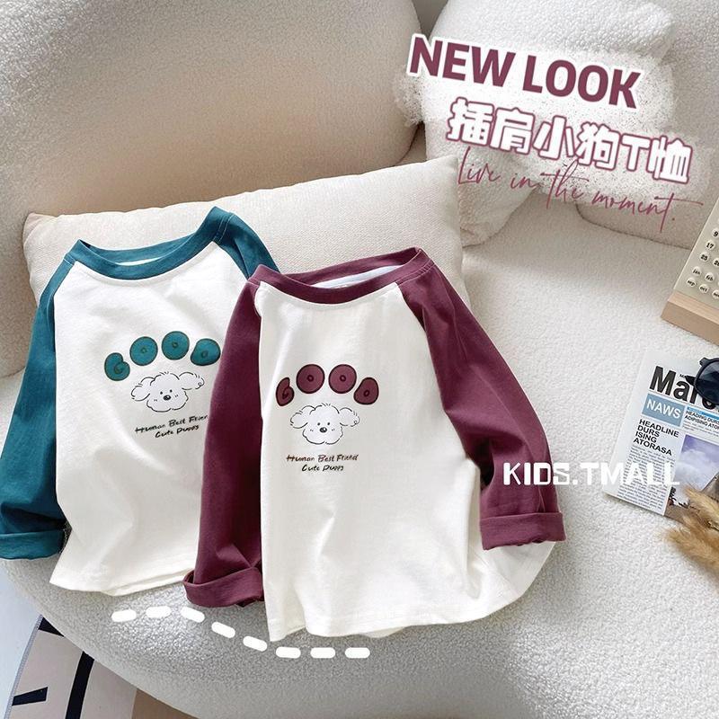 소년 소녀를위한 어린이 긴 소매 티셔츠 2024 봄과 가을의 새로운 스타일 탑 중소 어린이 만화 기지 트렌디 T스토어 가기