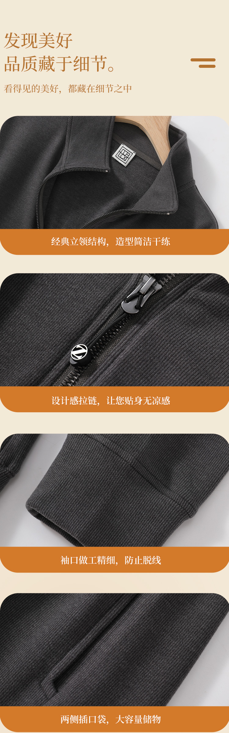 남성용 Hyaluronic Acid Fleece 스킨-미용 의류 운동복 가을과 겨울 새로운 스타일 세트 칼라 피부 친화적 인 따뜻한 지퍼 카디건 재킷