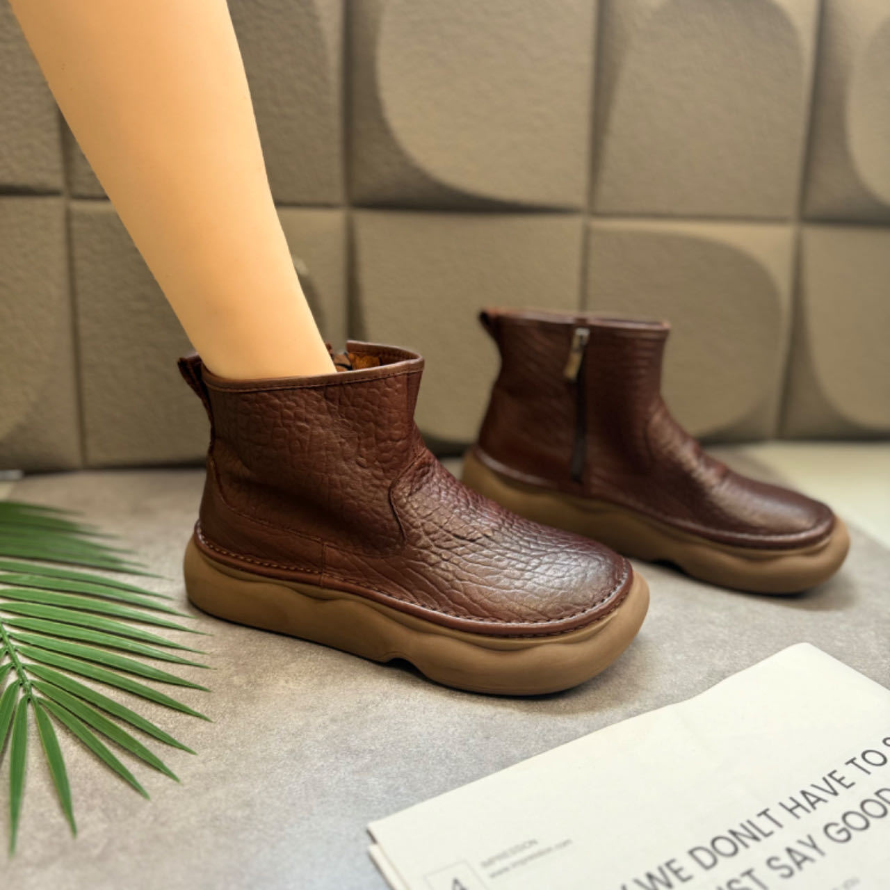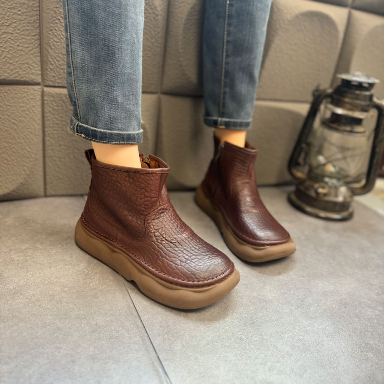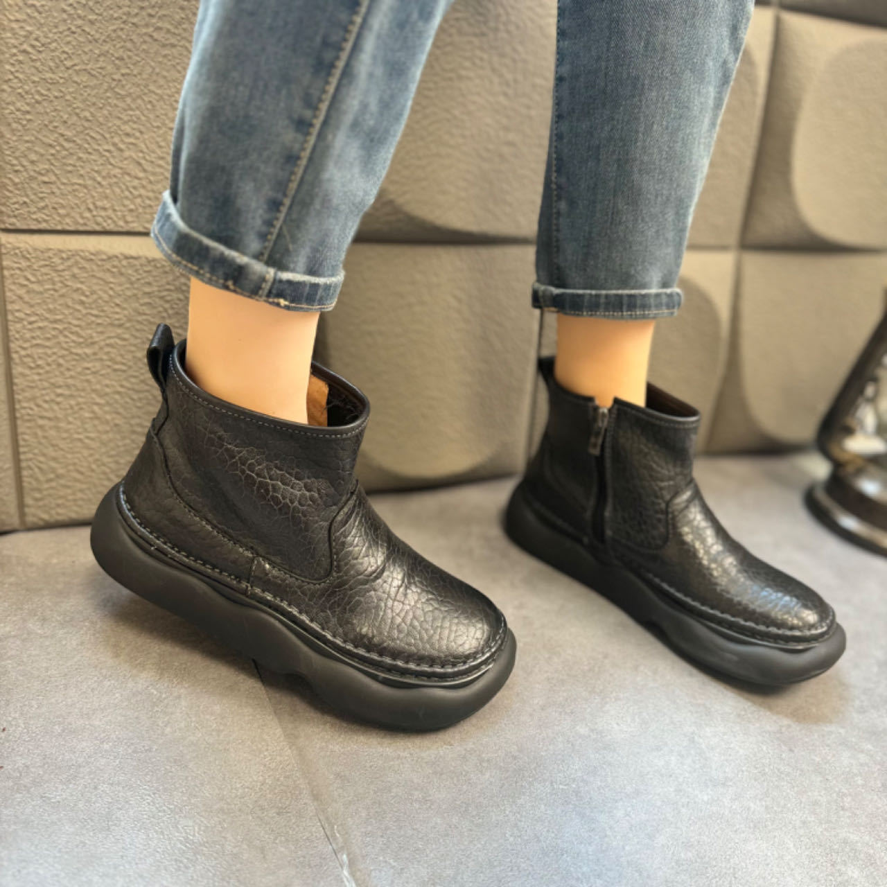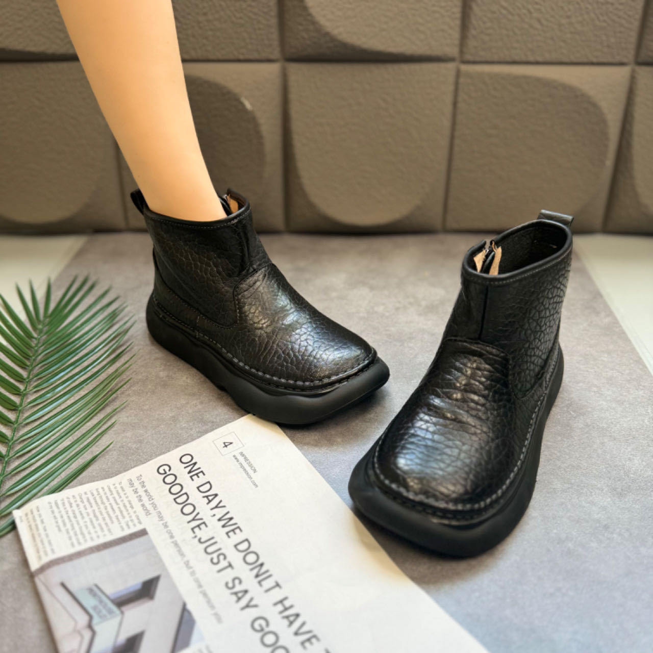 주로 추천하는 2025 가을 겨울 신상 여성 숏부츠, 레트로 수제화, 코끼리 무늬 소가죽 사이드 지퍼 마틴 부츠 여성 도매스토어 가기