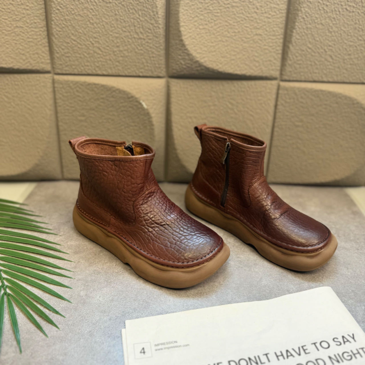 주로 추천하는 2025 가을 겨울 신상 여성 숏부츠, 레트로 수제화, 코끼리 무늬 소가죽 사이드 지퍼 마틴 부츠 여성 도매