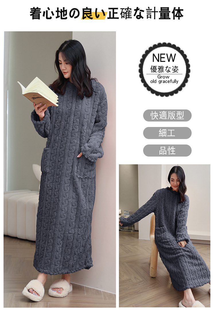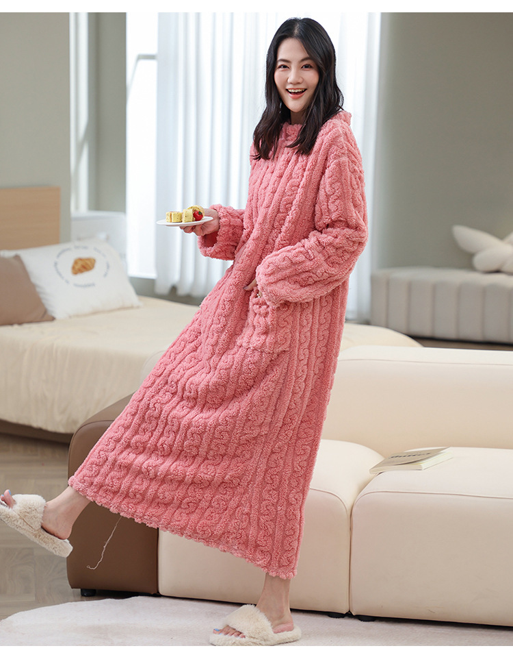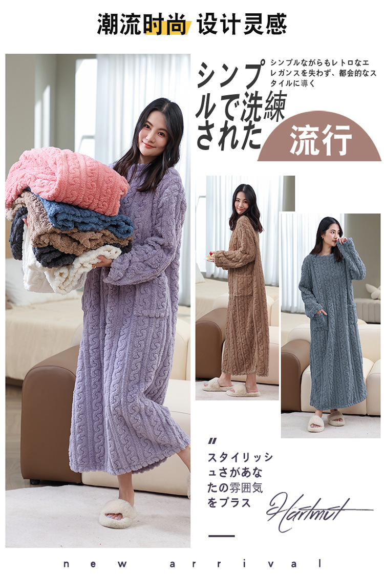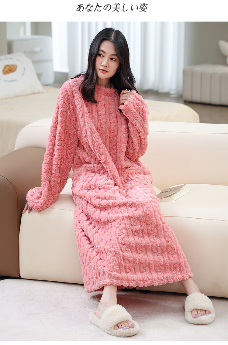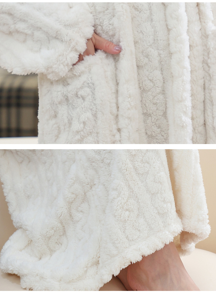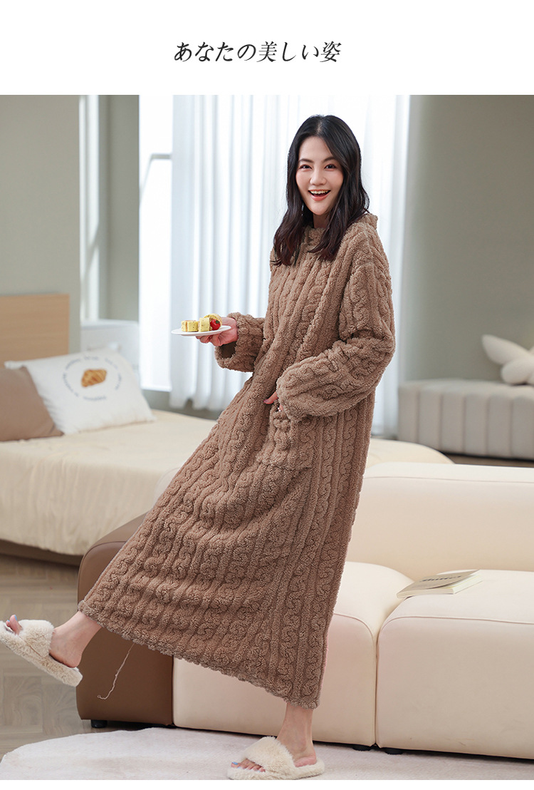 산호 양털 잠옷 여성의 가을과 겨울 두꺼운 따뜻한 느슨한 산호 양털 홈 옷 잠옷 캐주얼 아우터