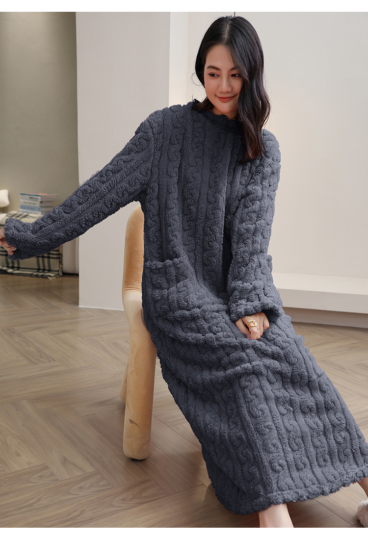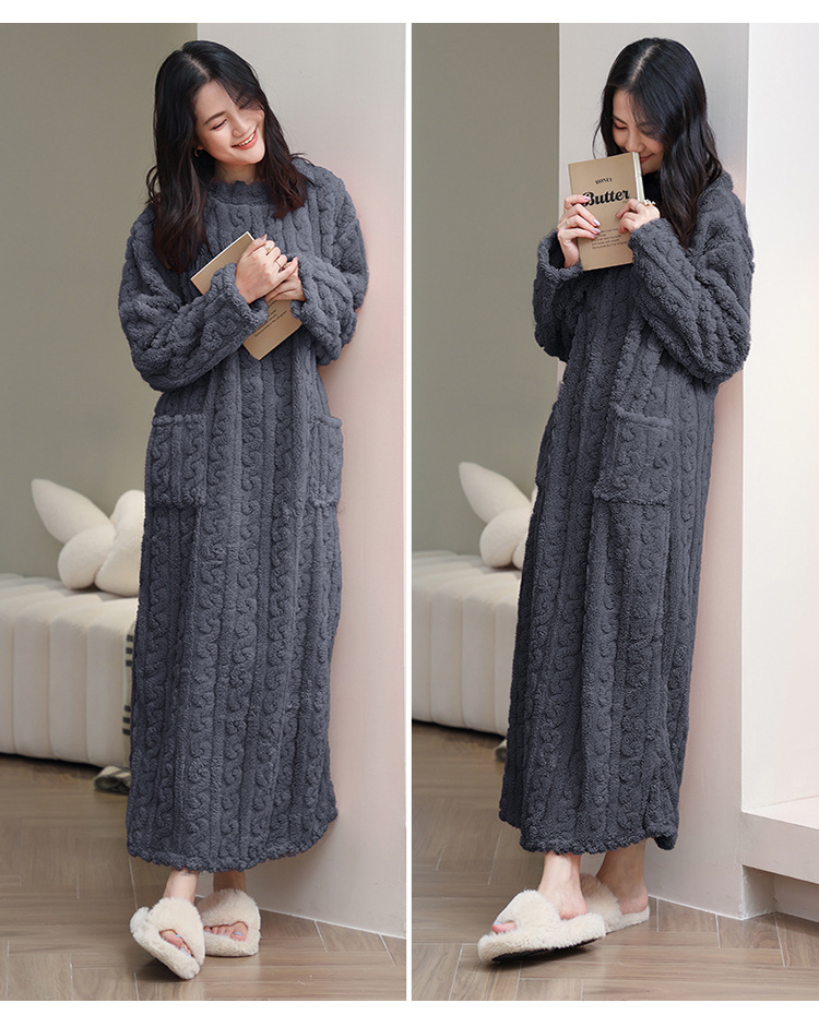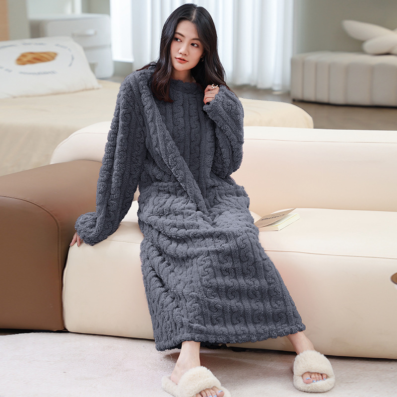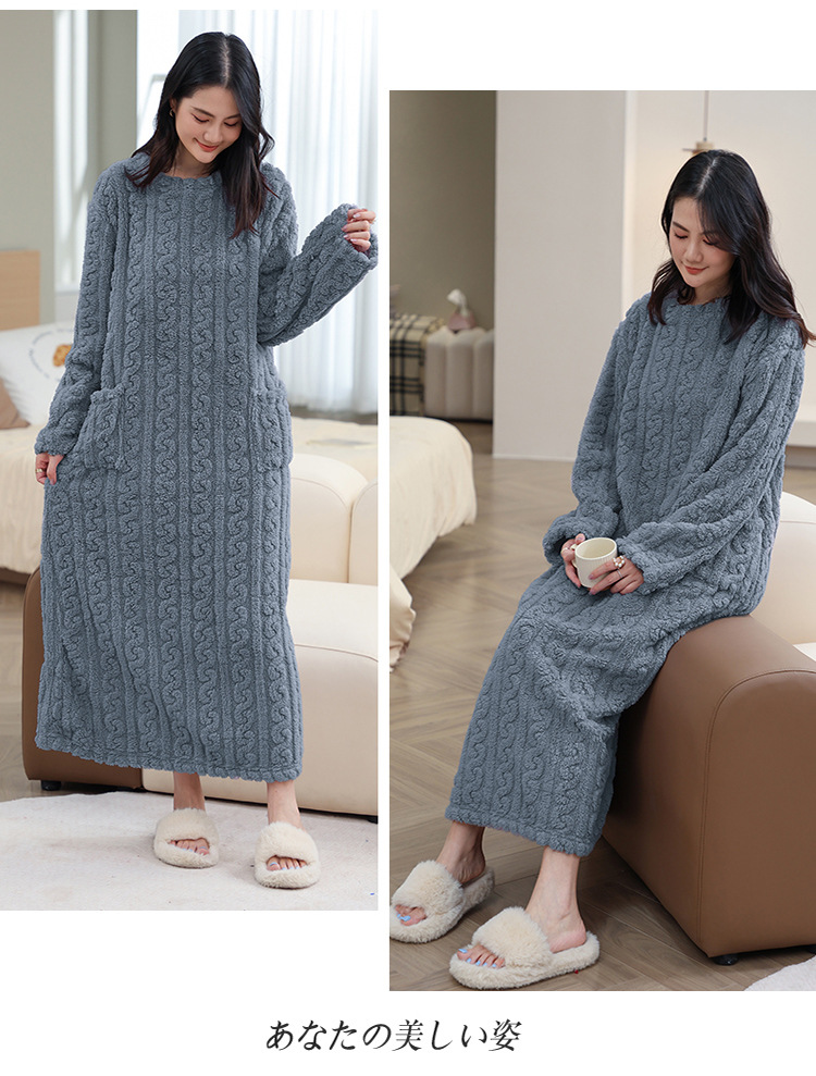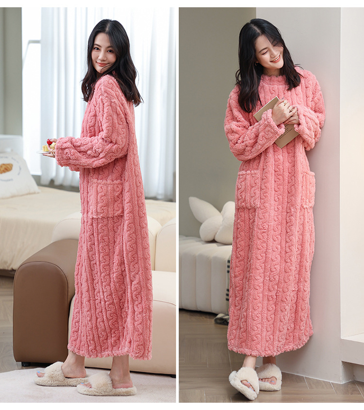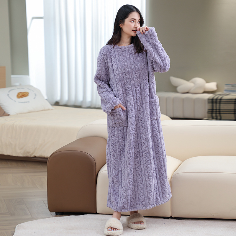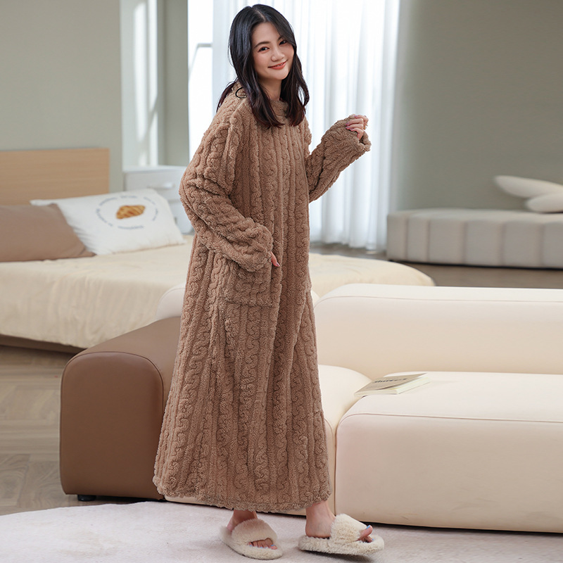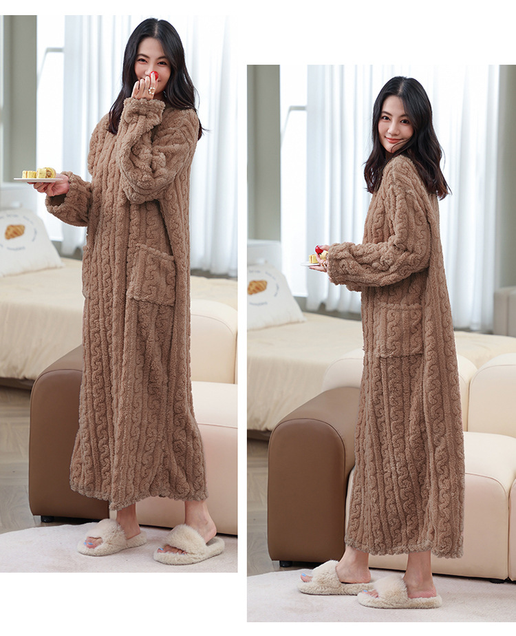 산호 양털 잠옷 여성의 가을과 겨울 두꺼운 따뜻한 느슨한 산호 양털 홈 옷 잠옷 캐주얼 아우터