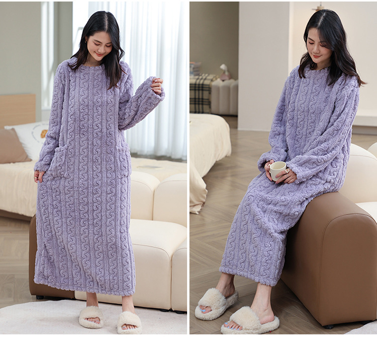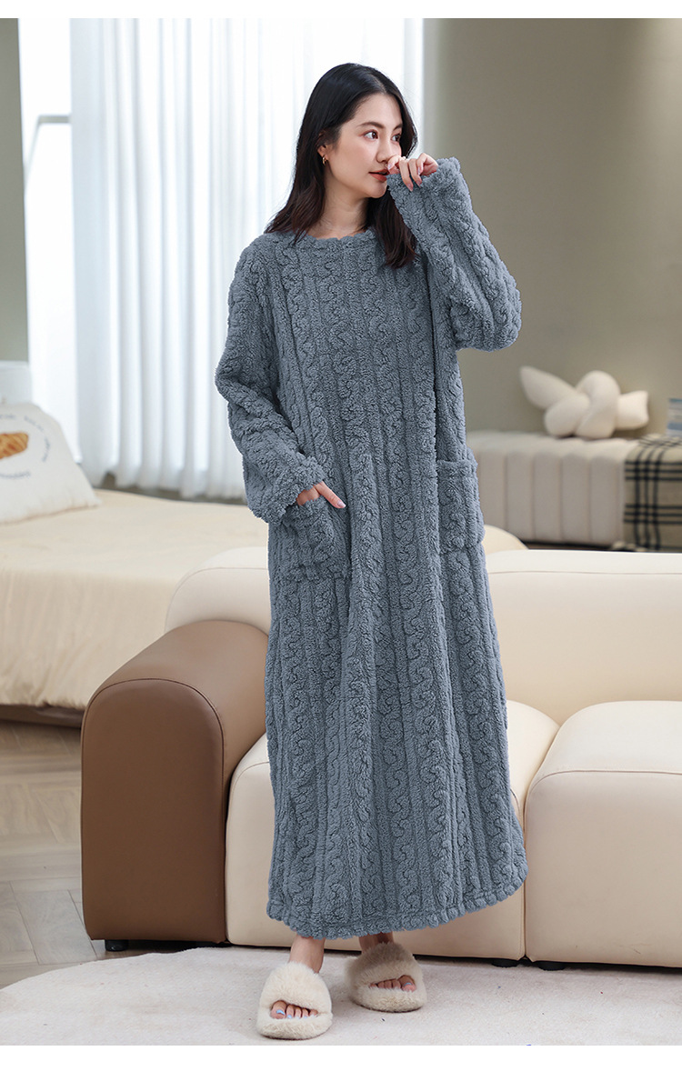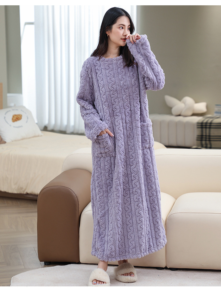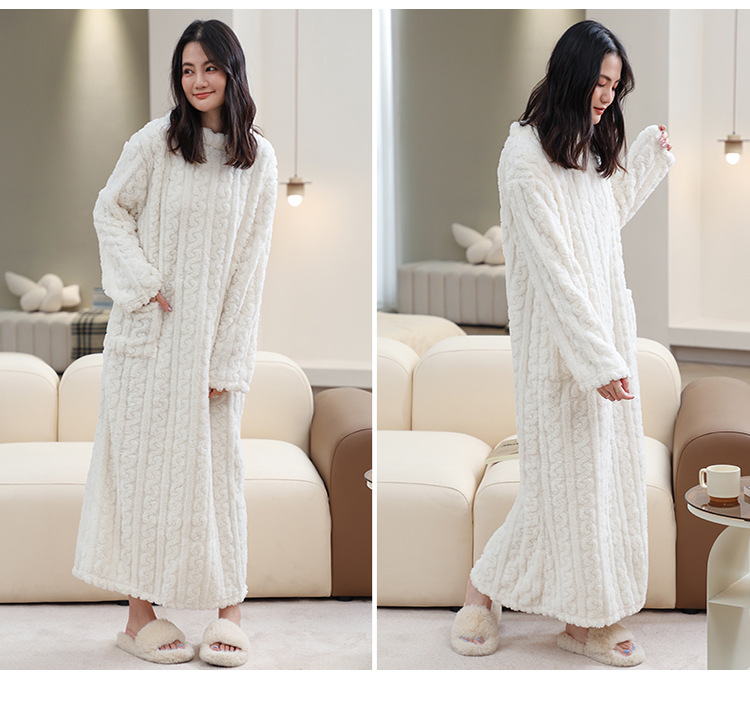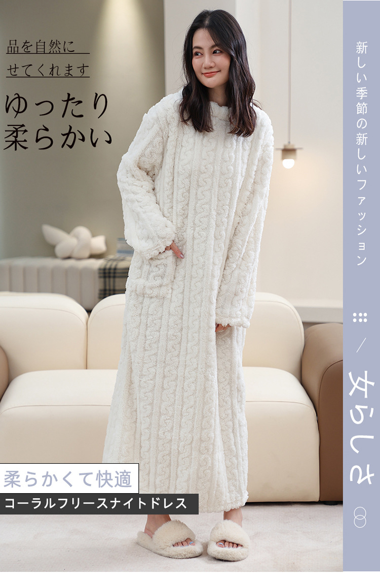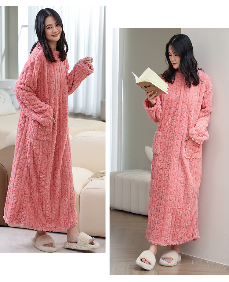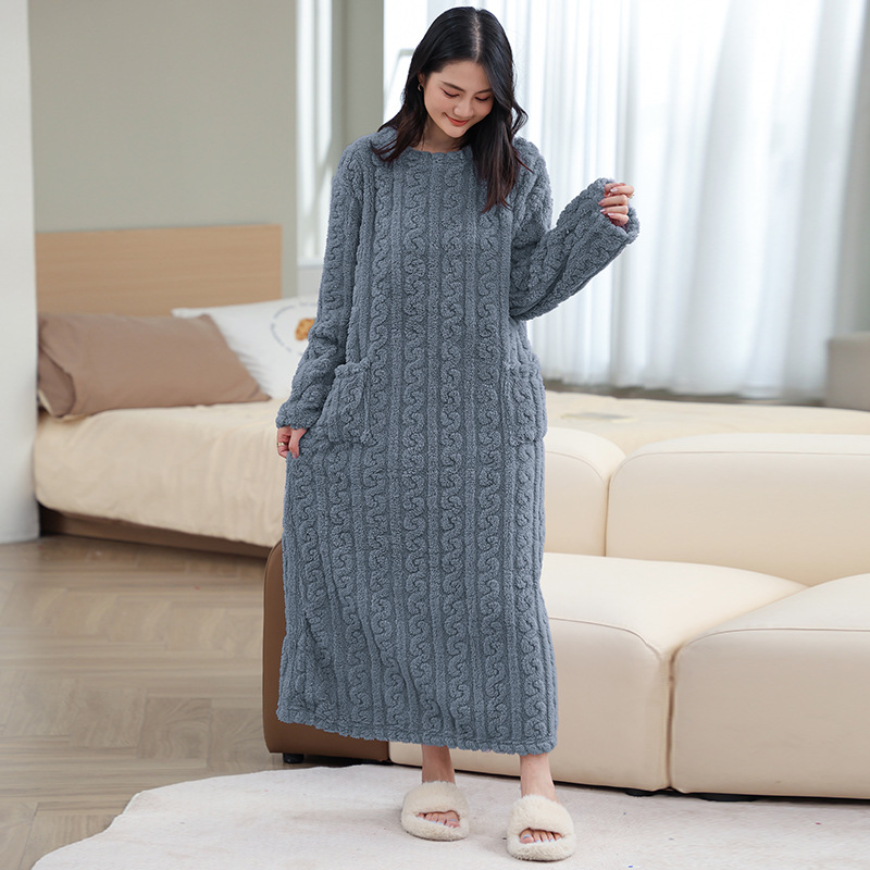 산호 양털 잠옷 여성의 가을과 겨울 두꺼운 따뜻한 느슨한 산호 양털 홈 옷 잠옷 캐주얼 아우터