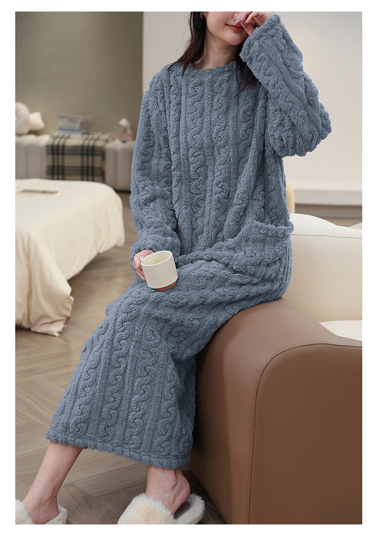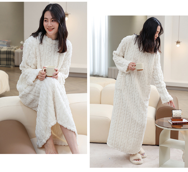 산호 양털 잠옷 여성의 가을과 겨울 두꺼운 따뜻한 느슨한 산호 양털 홈 옷 잠옷 캐주얼 아우터스토어 가기