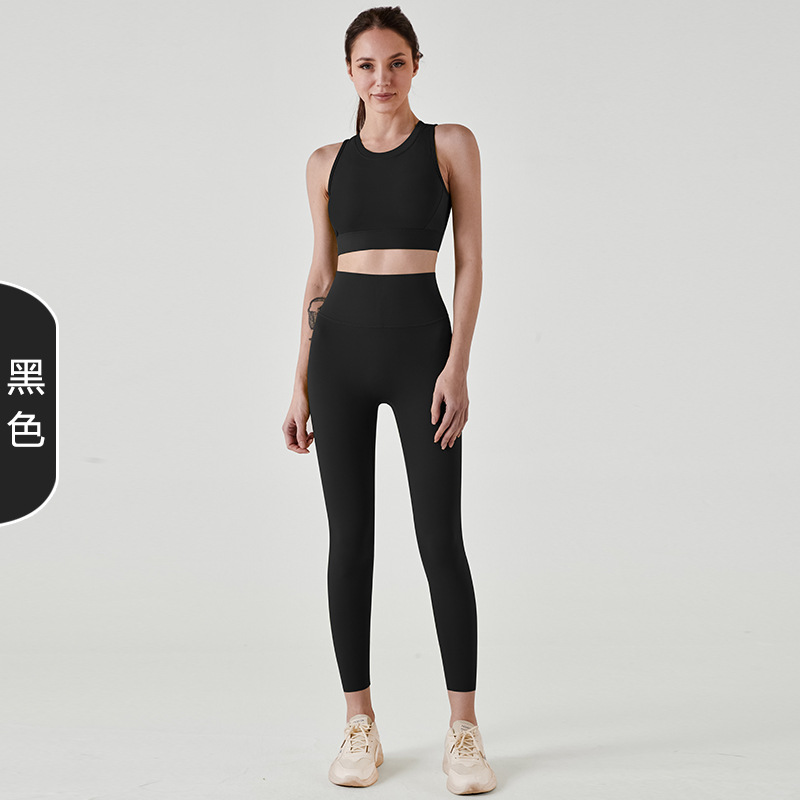 새로운 요가복 세트, 충격 방지 스포츠 브라, 누드 느낌 피트니스 하이웨이스트 요가 팬츠, 고급 스포츠 세트