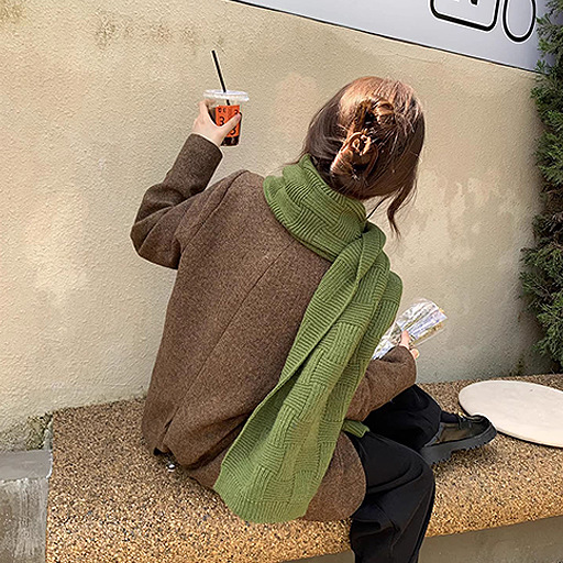 빈티지 그린 격자 무늬 스카프 여자 가을과 겨울 올매치 하이 엔드 성격 따뜻한 목도리 스카프 한국식 새로운스토어 가기