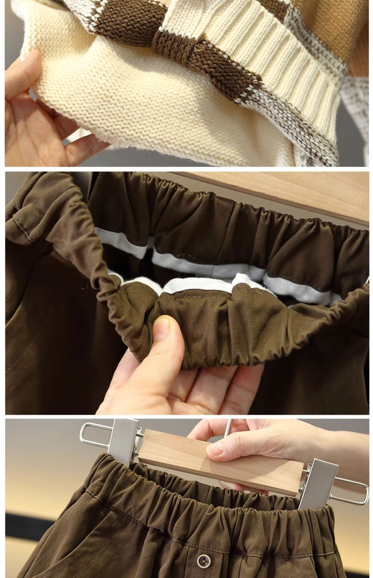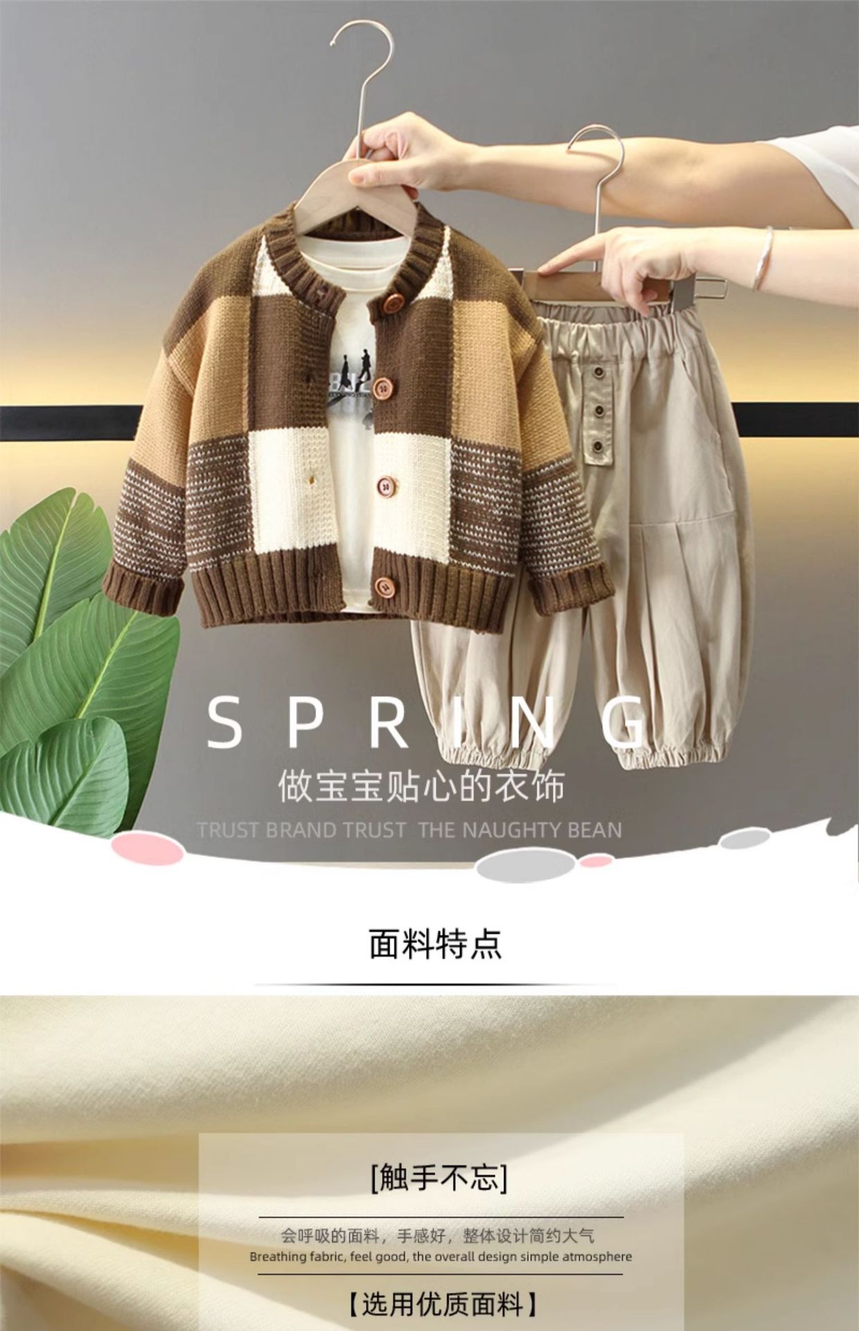 6159 소년 가을 의류 세트 2025 새로운 멋진 어린이 스웨터 재킷 3 피스 세트 아기 유행 브랜드 봄, 가을스토어 가기