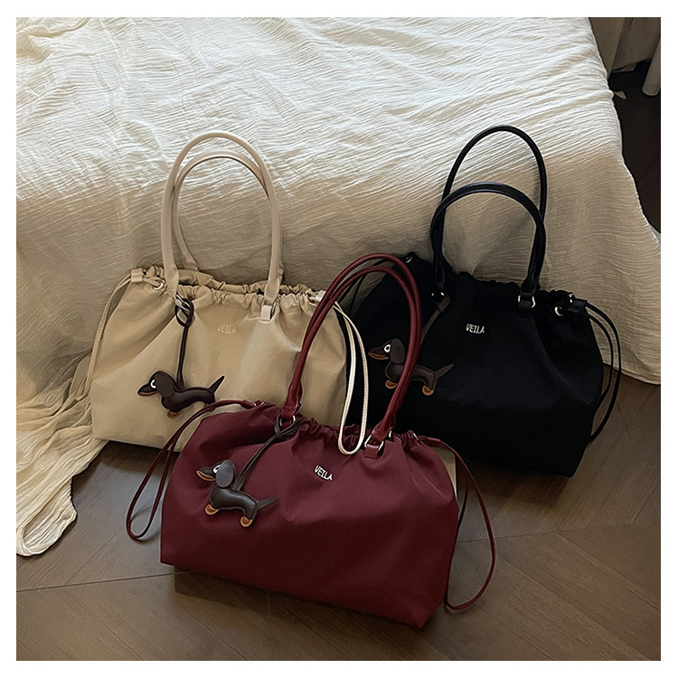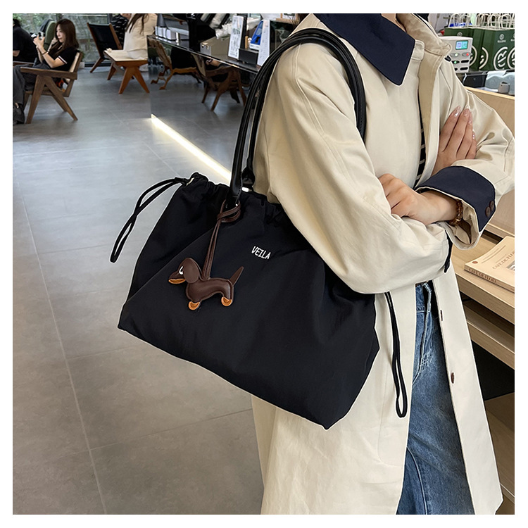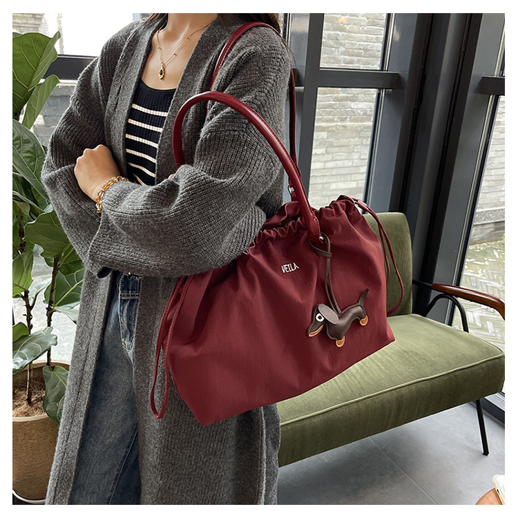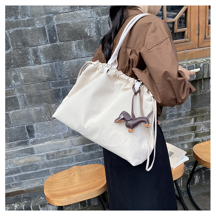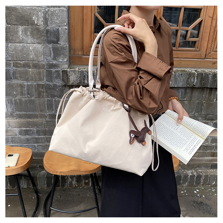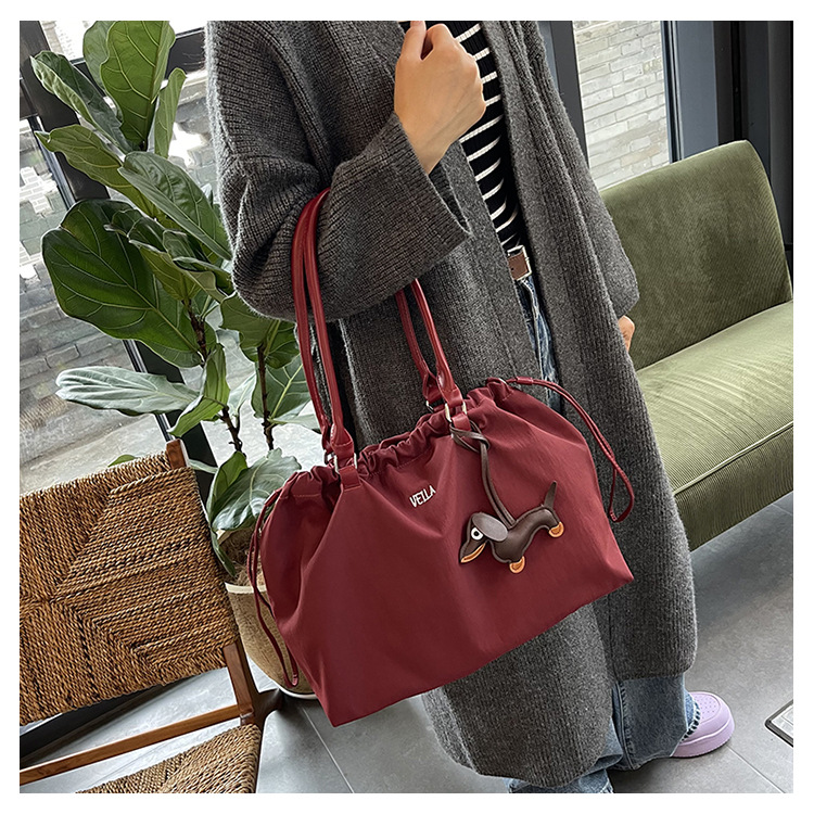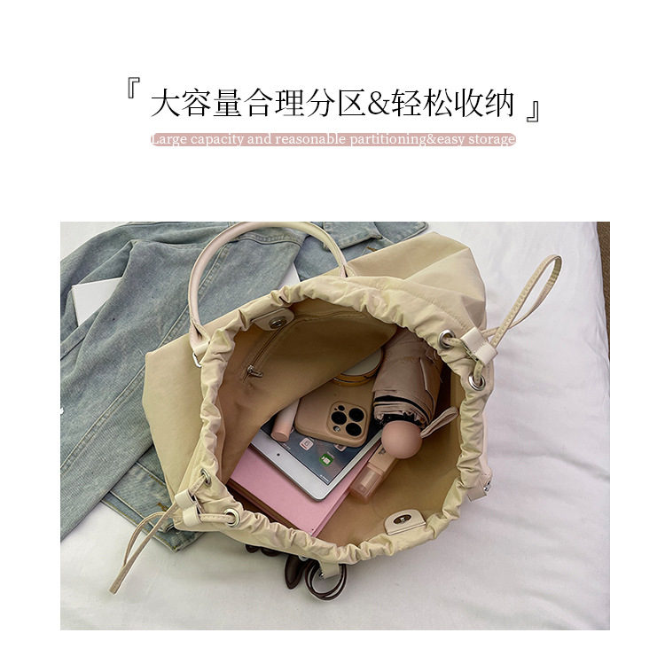 새로운 한국 스타일 캐주얼 예술적 버킷 가방 유행 현악기 어깨 여성 가방 인터넷 축하 주름 나일론 세탁 핸드백스토어 가기