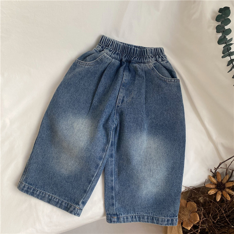 GL-키즈 한국 가을 새 어린이 복고풍 캐주얼 청바지 남녀 올매치 와이드 레그 바지스토어 가기