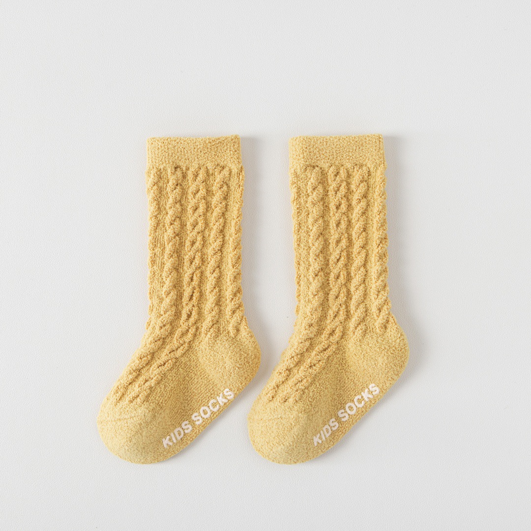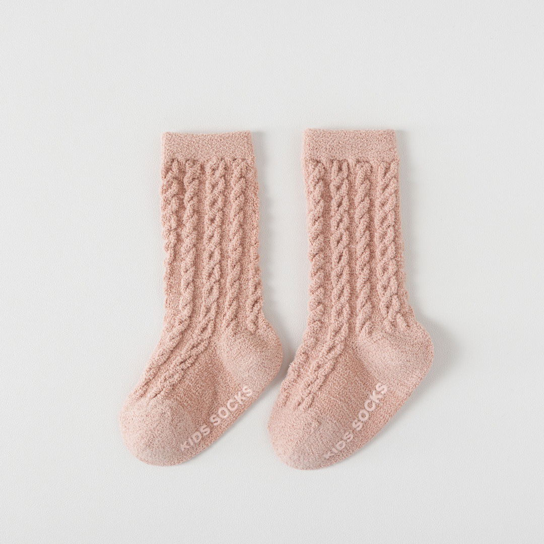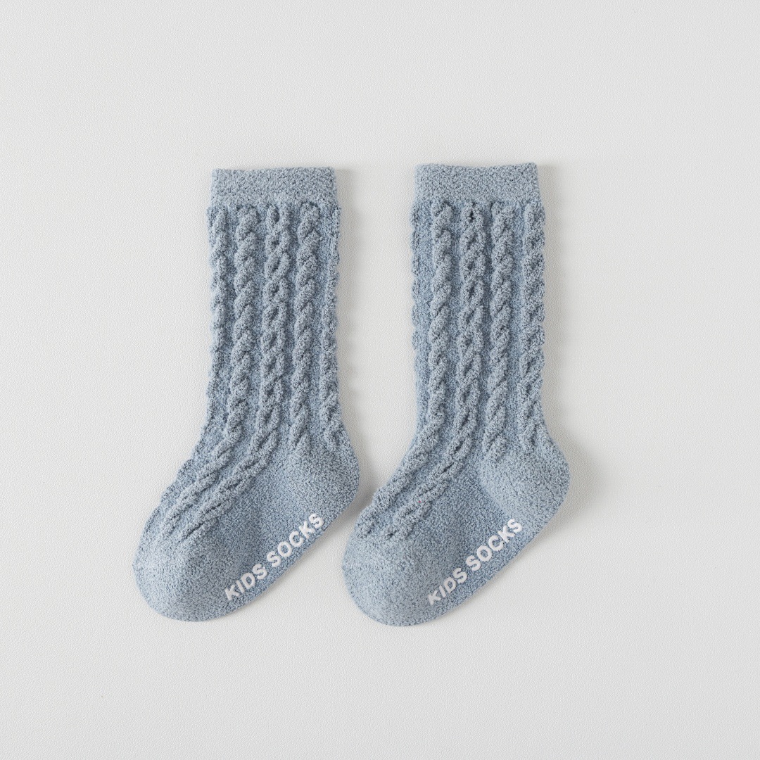 24秋冬加绒加厚婴儿中筒袜麻花点胶地板防滑宝宝袜a类婴儿袜子