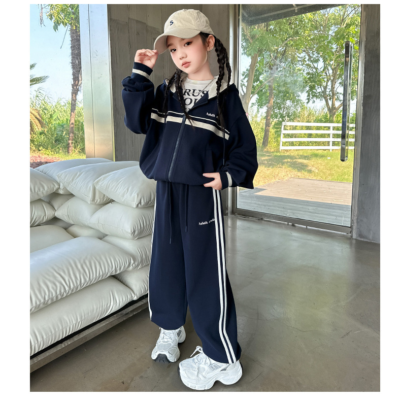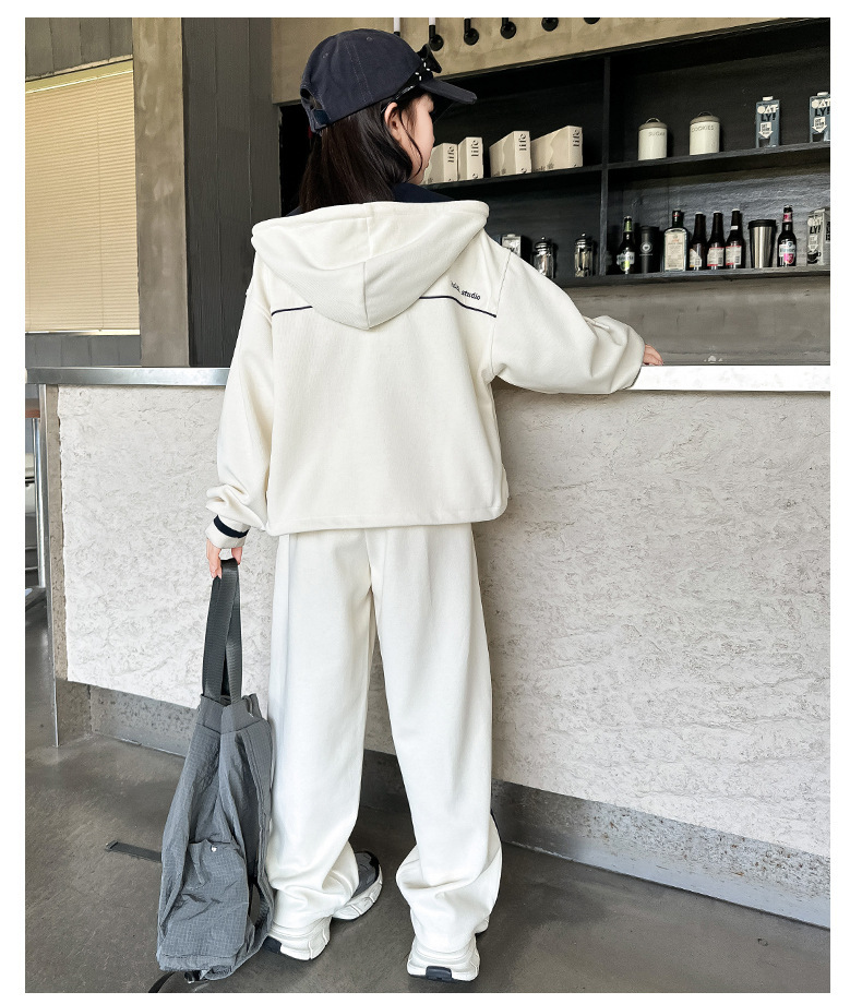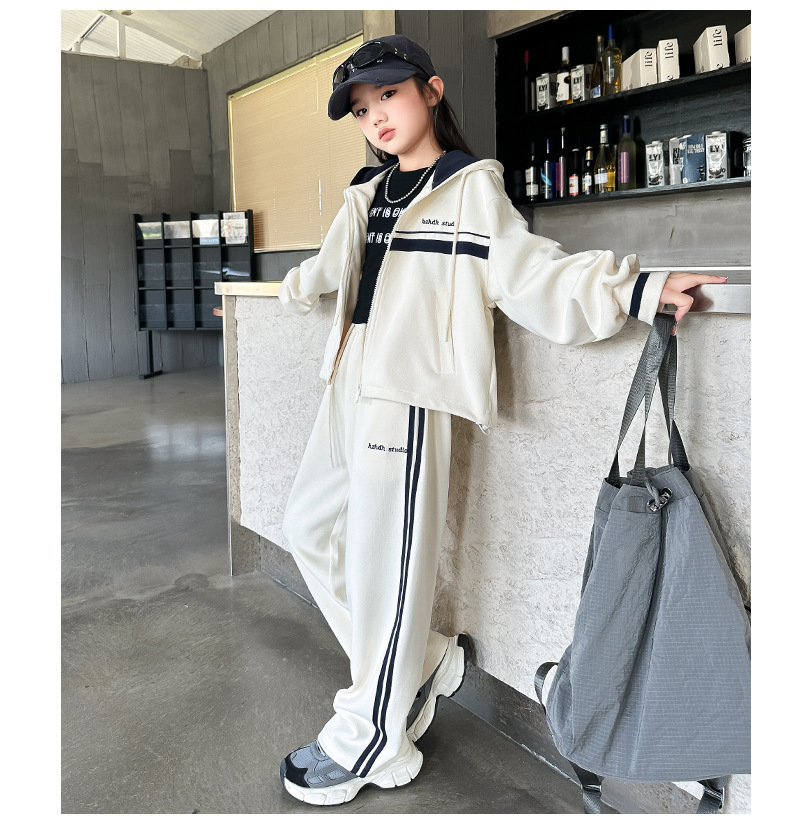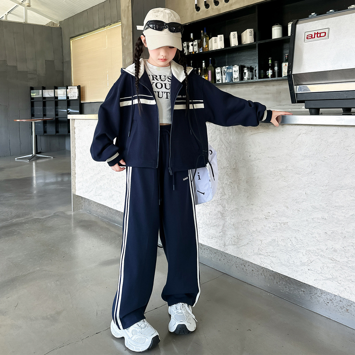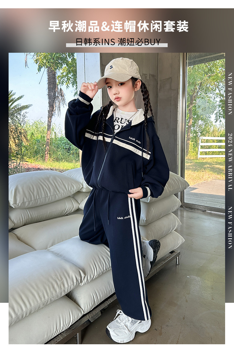 소녀 세트 봄과 가을 2024 새로운 서양식 스웨터 가을 코트 소녀 큰 어린이 캐주얼 스포츠 바지 투피스 세트스토어 가기