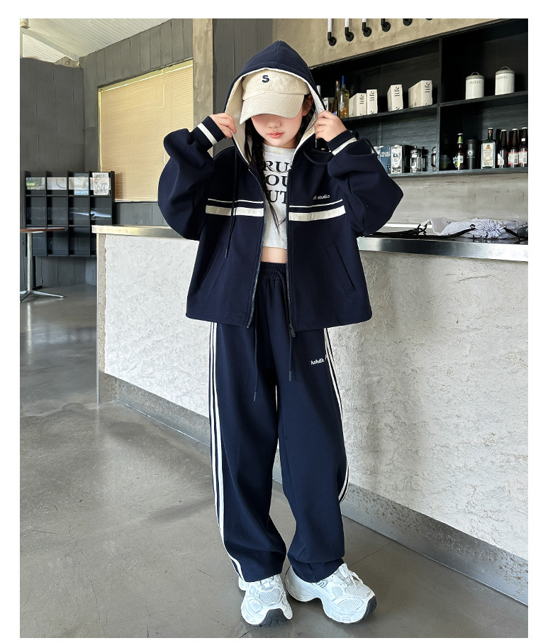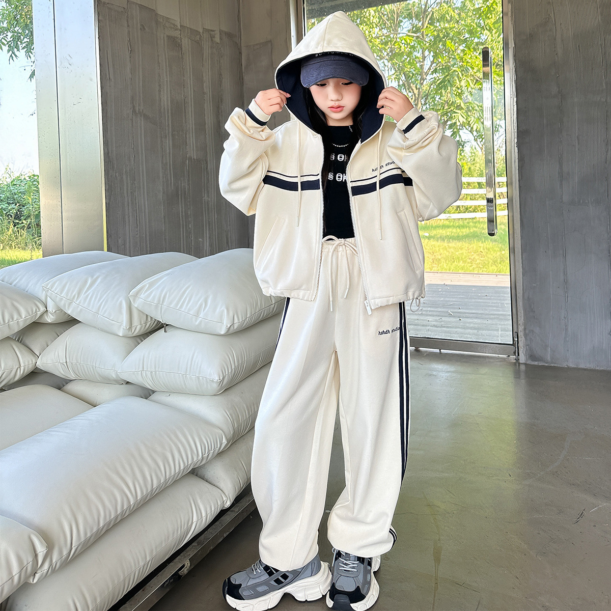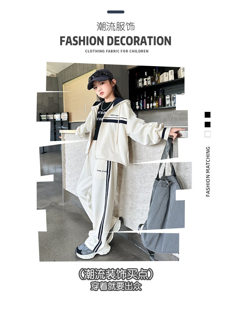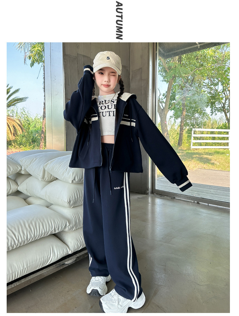 소녀 세트 봄과 가을 2024 새로운 서양식 스웨터 가을 코트 소녀 큰 어린이 캐주얼 스포츠 바지 투피스 세트스토어 가기