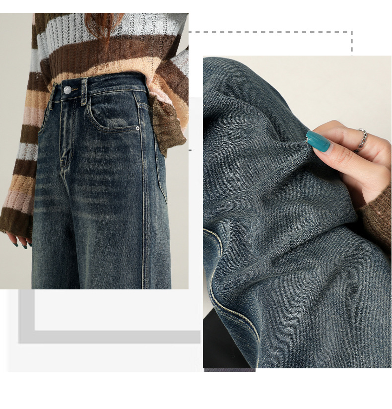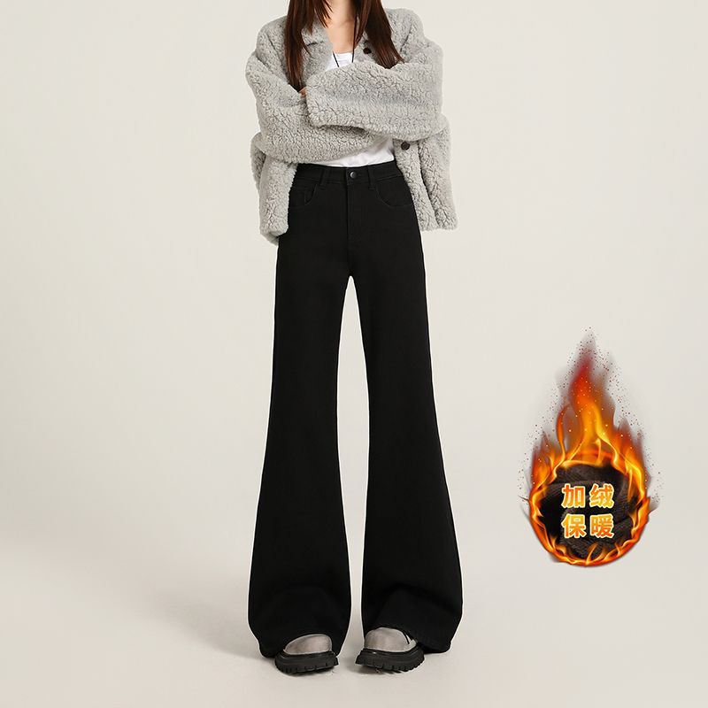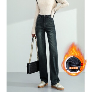 加绒牛仔裤女秋冬柔软舒适窄版阔腿裤女秋冬高腰直筒牛仔裤女秋冬