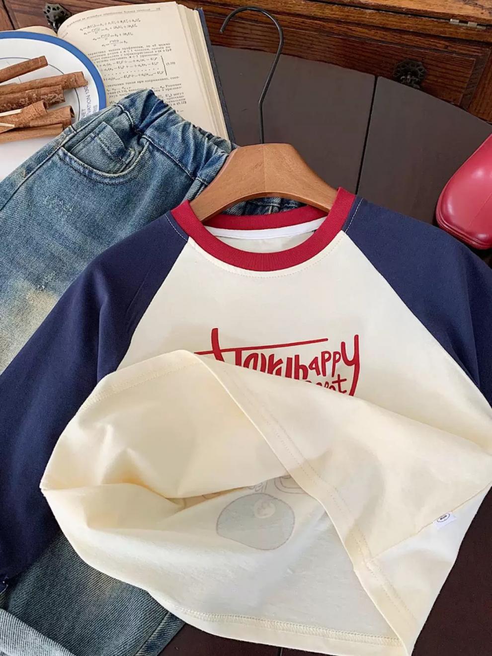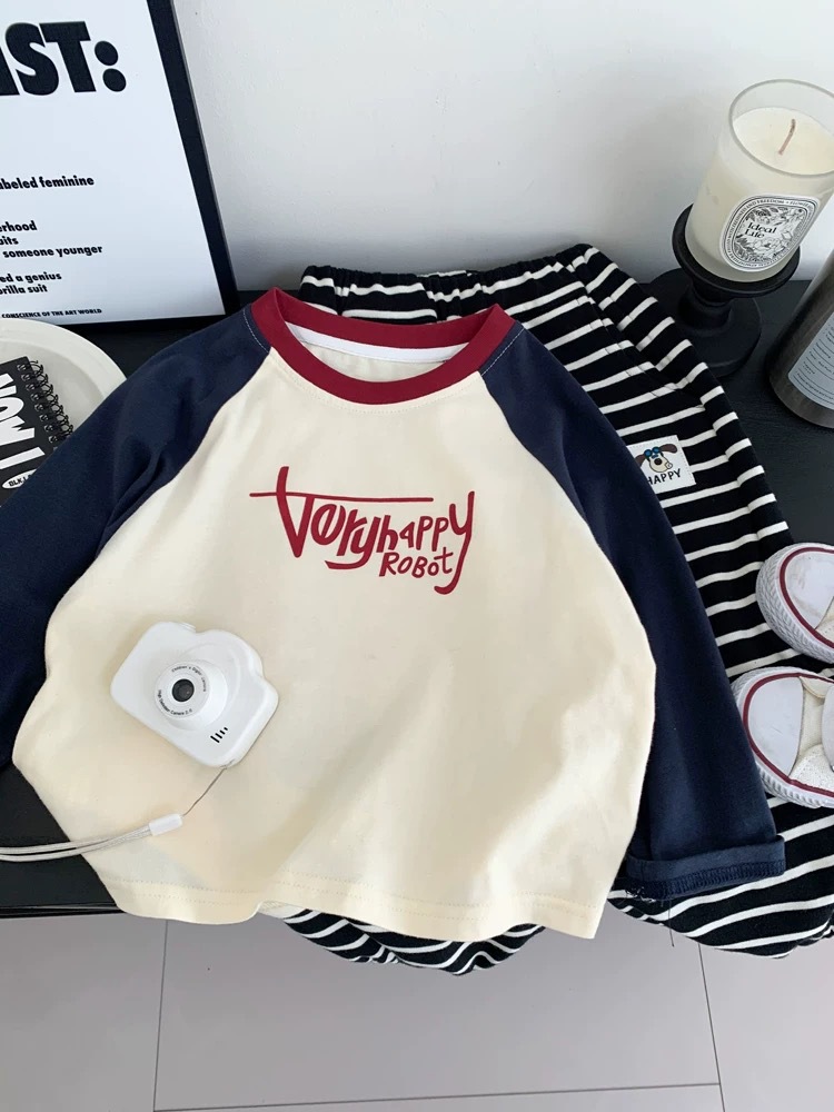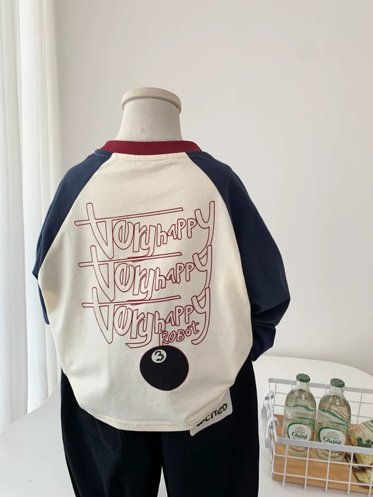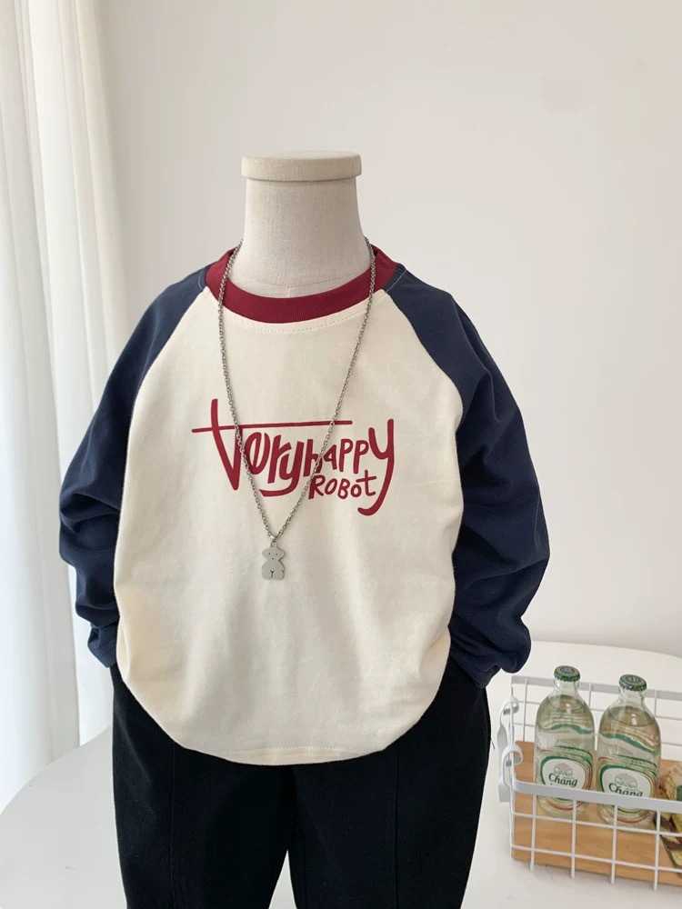 소년의 봄과 가을 코튼 긴팔 티셔츠 새로운 스타일 어린이 캐주얼 편지 모든 경기 유행 라글란 슬리브 탑 패셔너블 코튼 티셔츠