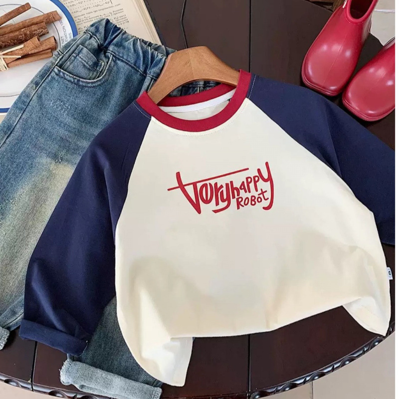 소년의 봄과 가을 코튼 긴팔 티셔츠 새로운 스타일 어린이 캐주얼 편지 모든 경기 유행 라글란 슬리브 탑 패셔너블 코튼 티셔츠스토어 가기