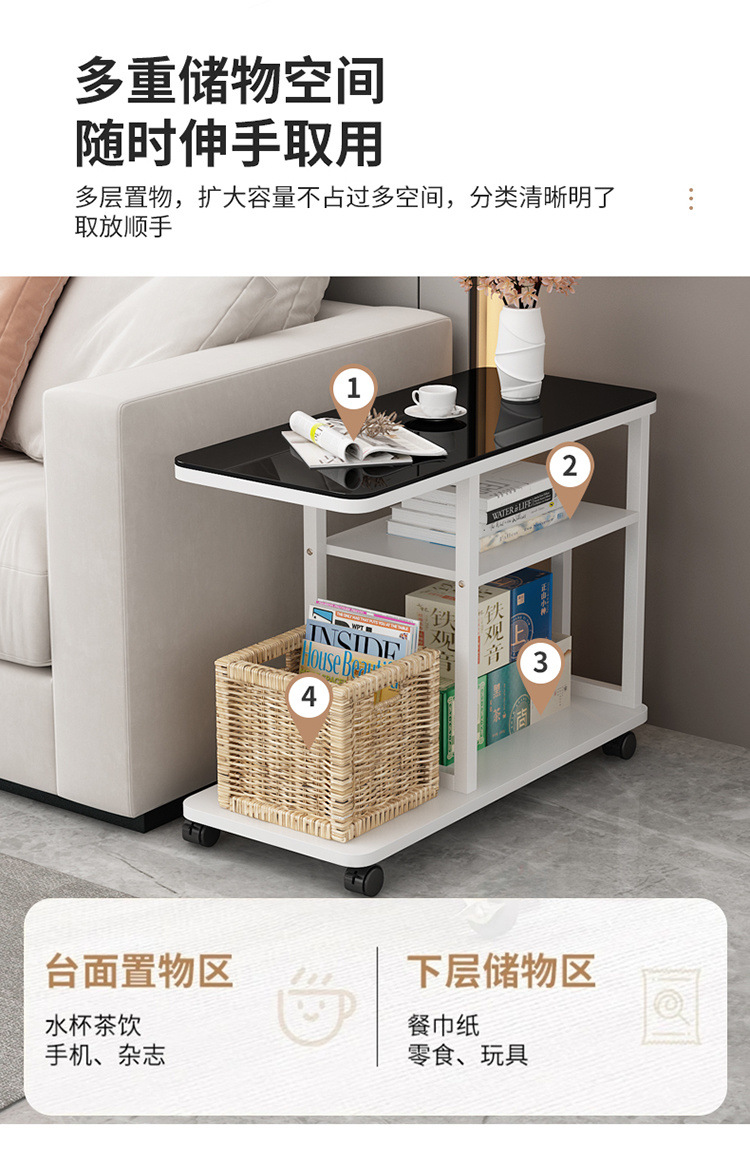 이동식 커피 테이블 다기능 바퀴 달린 거실 소파 사이드 캐비닛 팔걸이 캐비닛 유리 사이드 테이블 코너 침실 테이블스토어 가기