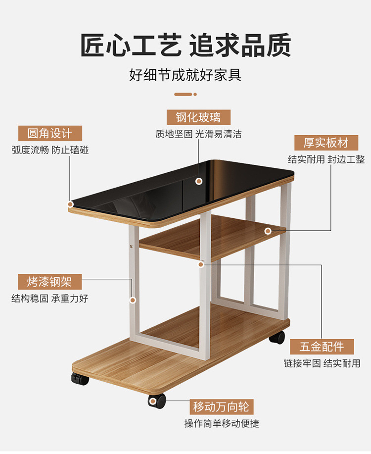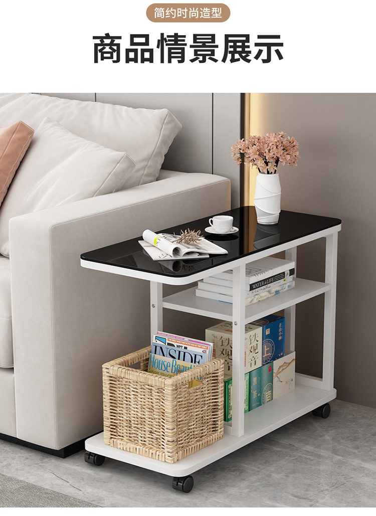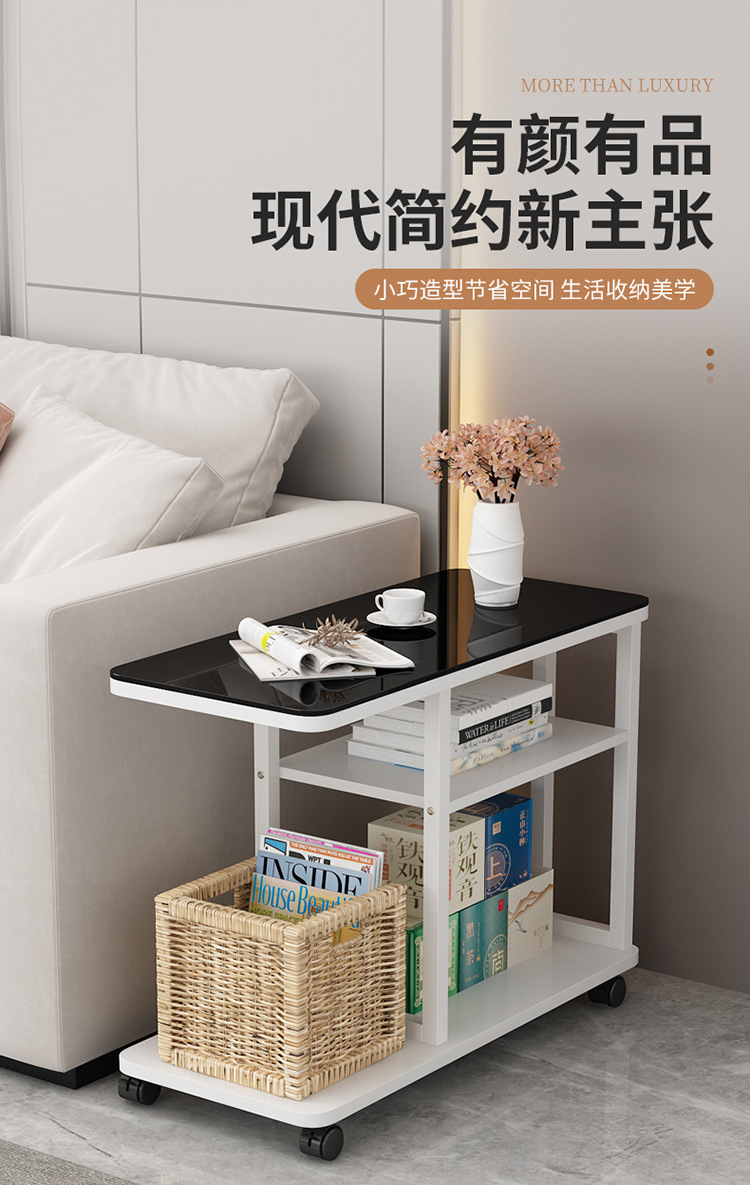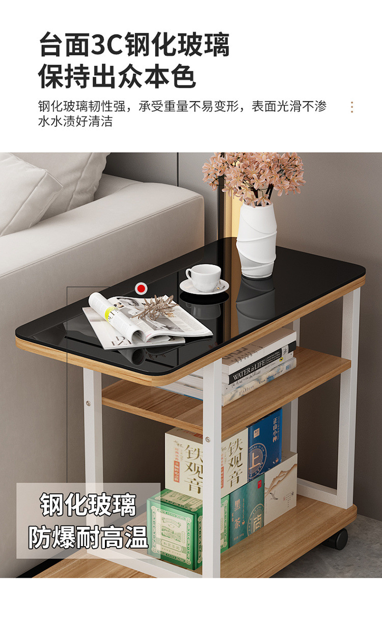 이동식 커피 테이블 다기능 바퀴 달린 거실 소파 사이드 캐비닛 팔걸이 캐비닛 유리 사이드 테이블 코너 침실 테이블