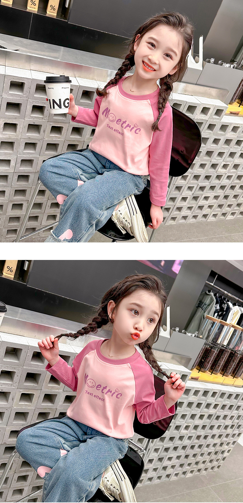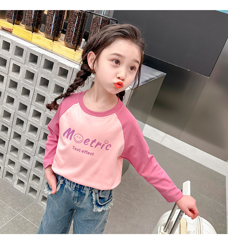 걸스 슬림핏 베이스 셔츠 2024 봄 새 어린이 서양식 봄 · 가을 스파이스 걸 탑 긴팔 티셔츠 올매치 타임스토어 가기