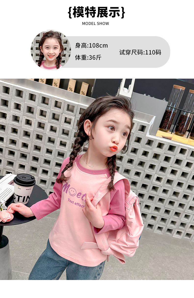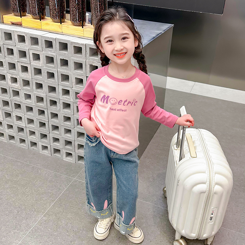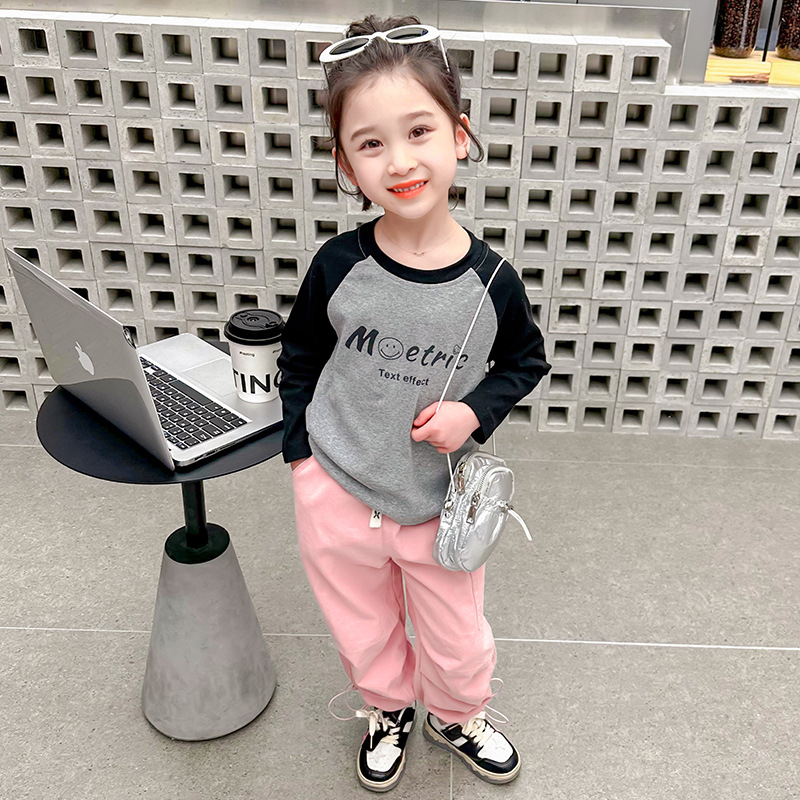 걸스 슬림핏 베이스 셔츠 2024 봄 새 어린이 서양식 봄 · 가을 스파이스 걸 탑 긴팔 티셔츠 올매치 타임