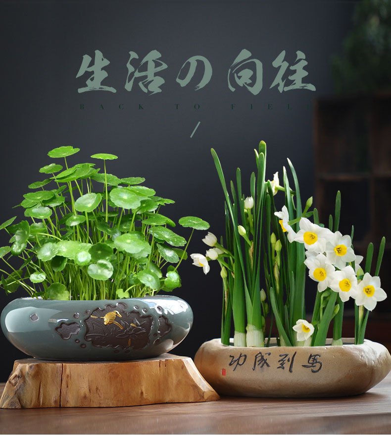 특별 판매 통관 구리 돈 잔디 꽃 냄비 수선화 물 백합 보울 연꽃 비 다공성 세라믹 가정용 대형 육체 수경 용기스토어 가기